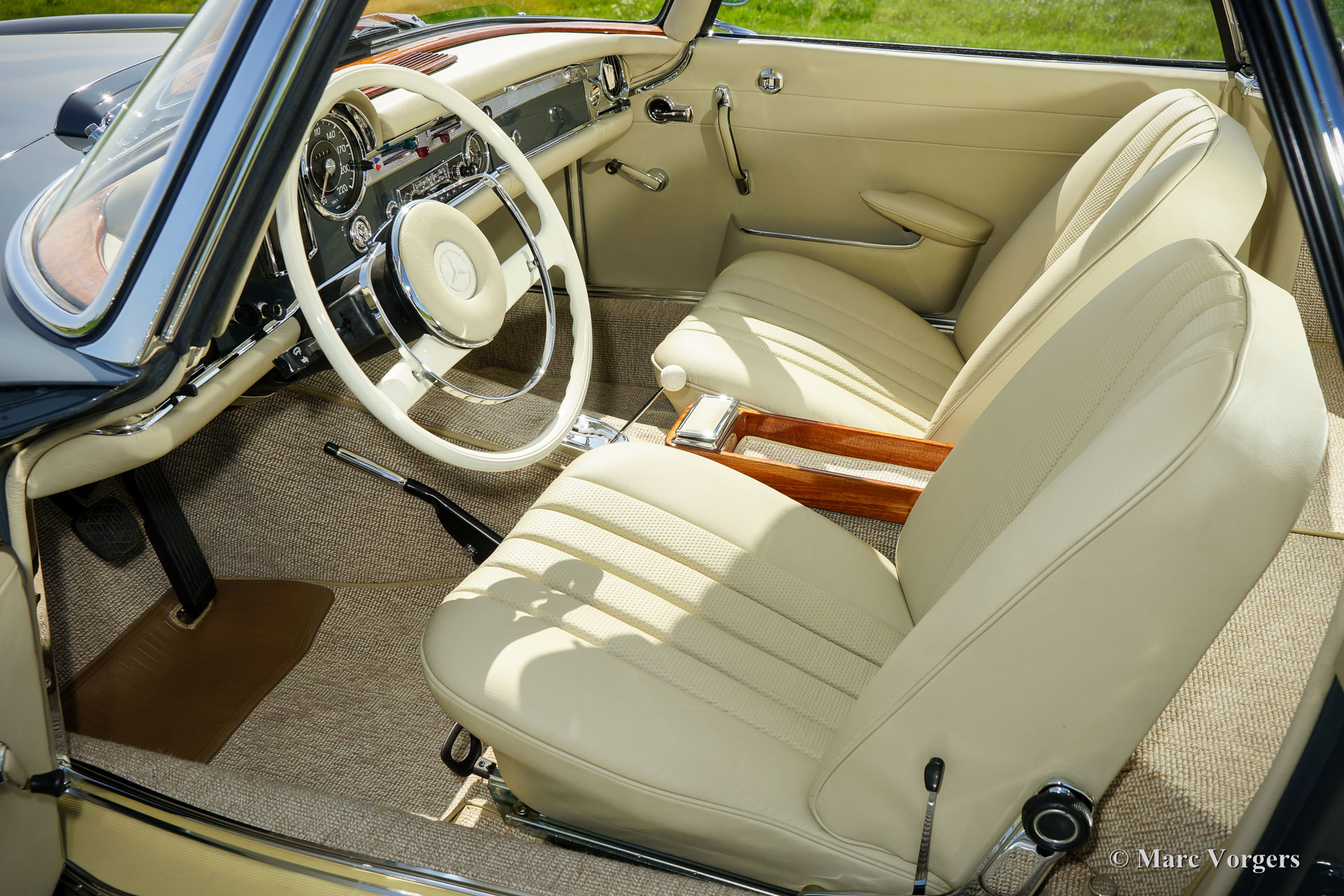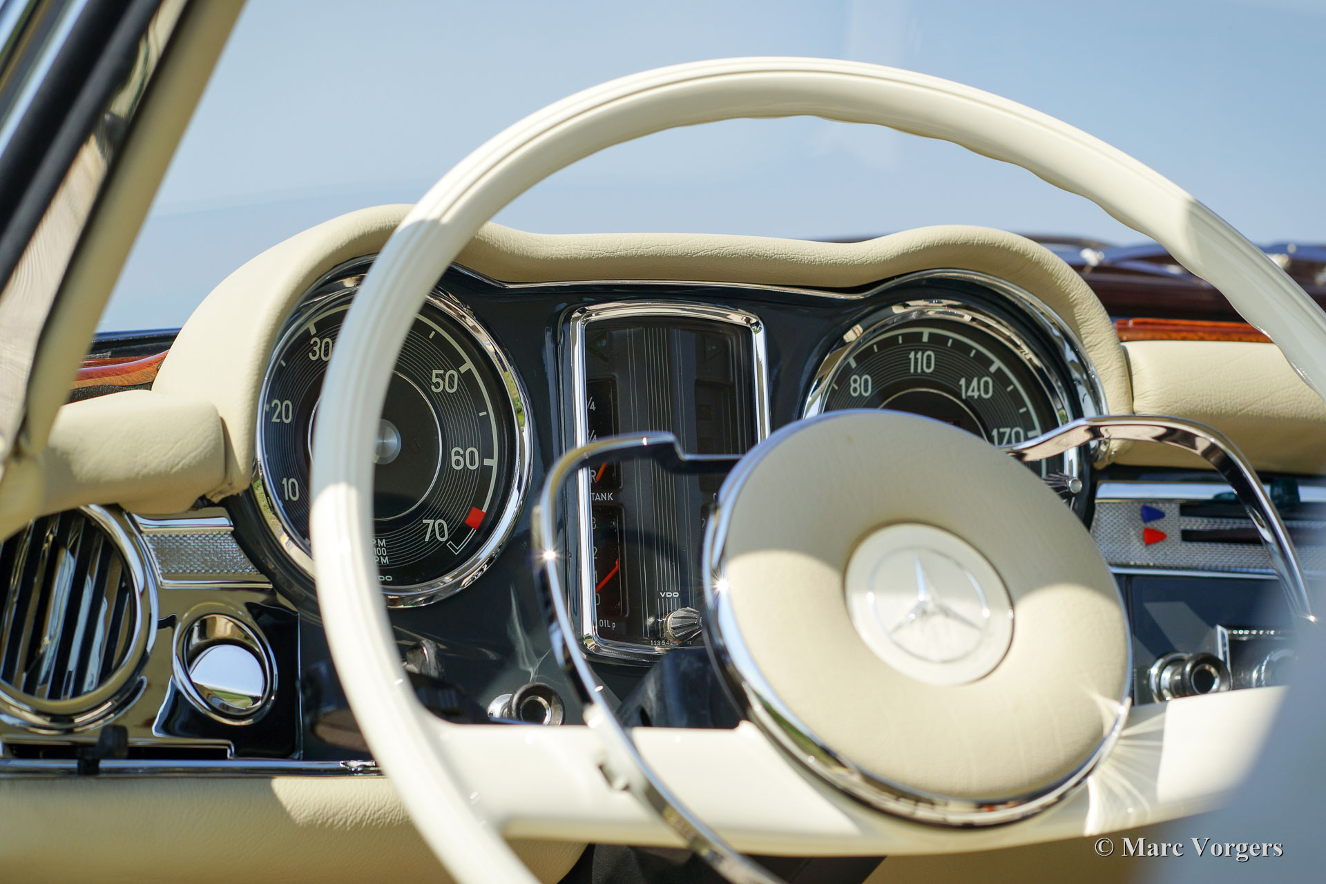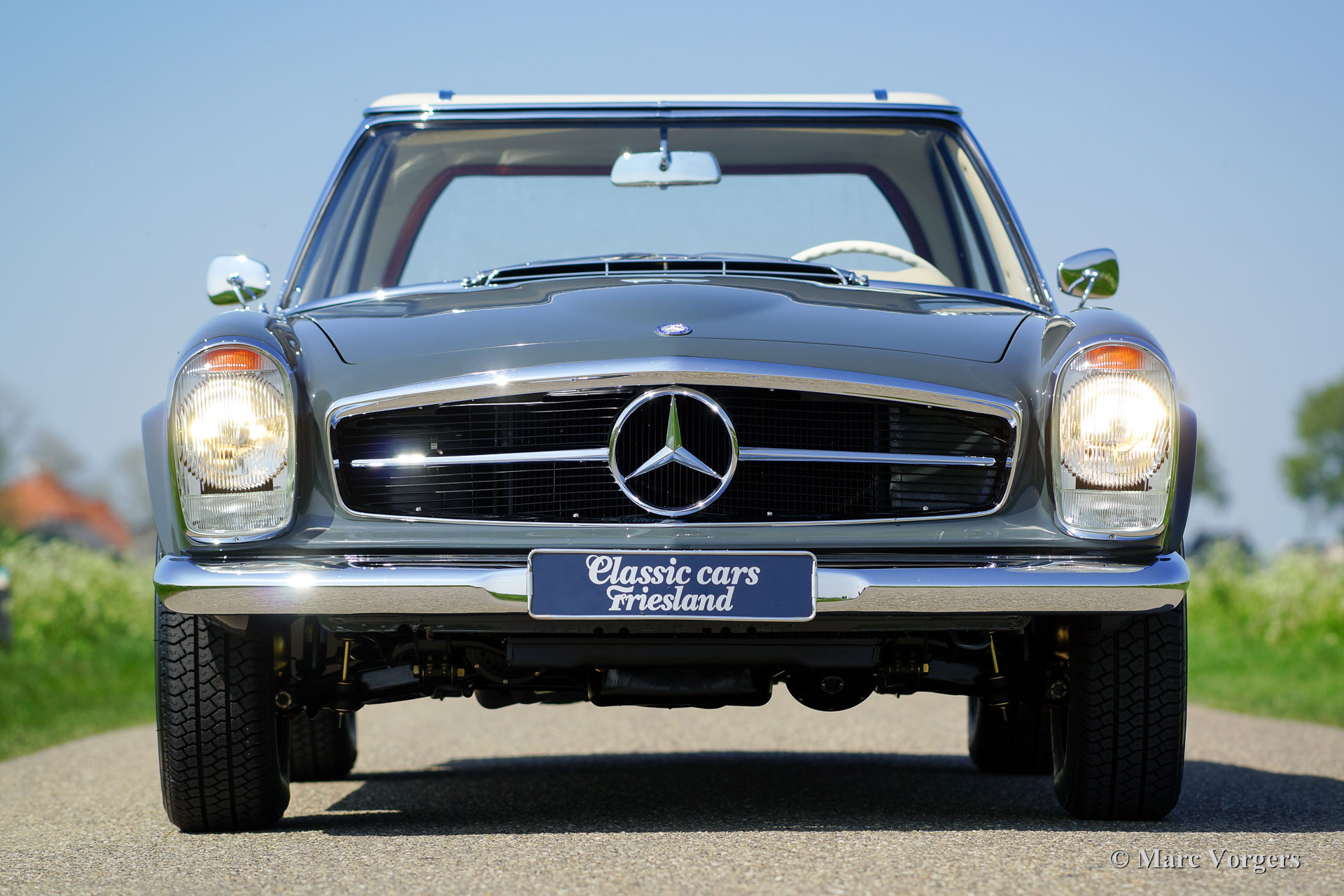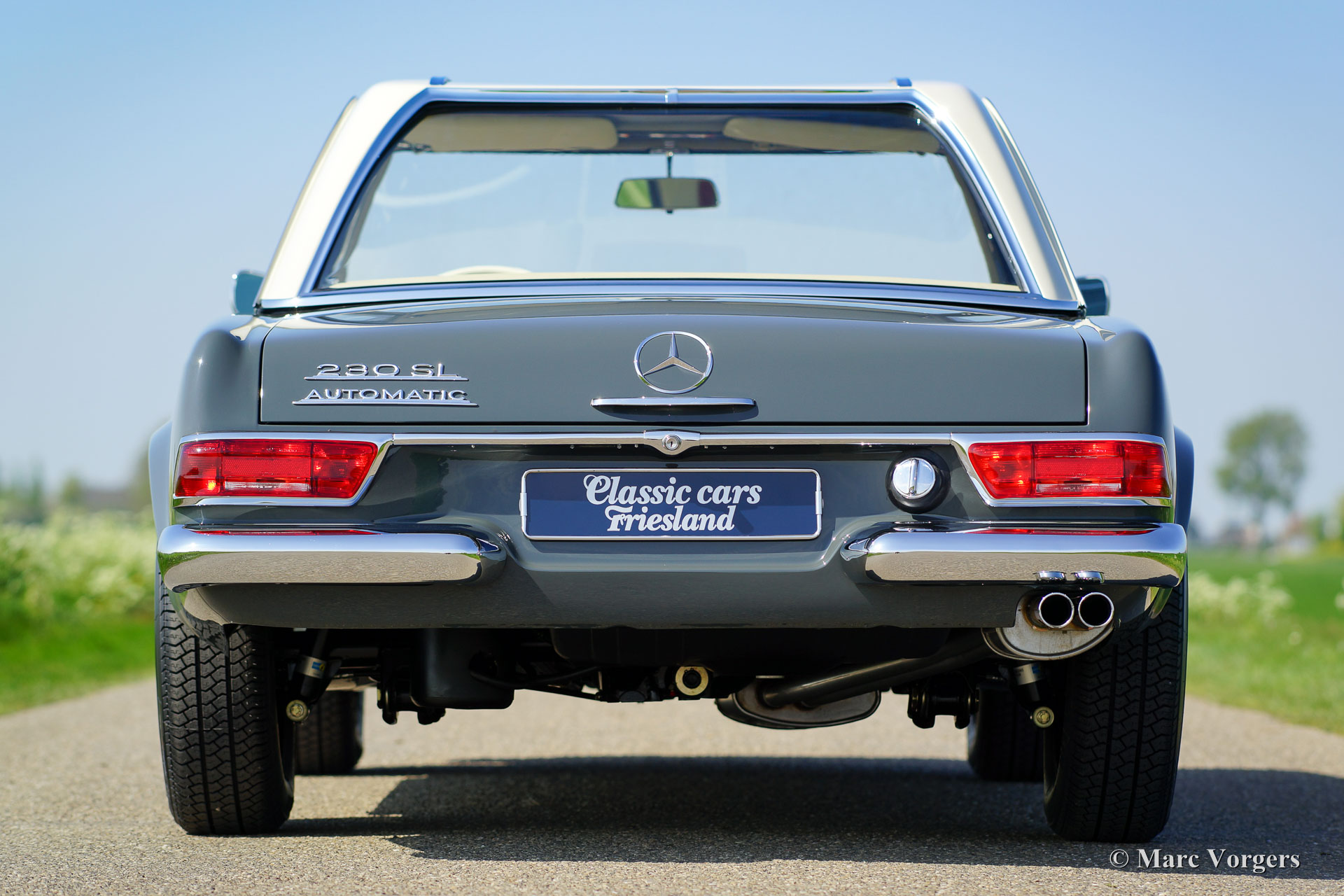 The Mercedes 230 SL followed the Mercedes 190 SL which was built up until 1963. The timeless, austere design that was first seen in the Mercedes 300 SE sedan in 1961, was continued in the 230 SL: many see this version as the most beautiful Mercedes since the 1960s. The 230 SL is characterized by its refined, lively handling, and by its very high constructive and technical quality. The car also offers much space, many comforts and practical conveniences. The open two-person roadster is also available with a hardtop, which changes the car into a closed coupe. The Mercedes-Benz 230 SL carried the nickname of 'Pagoda' because of the design of the hardtop.