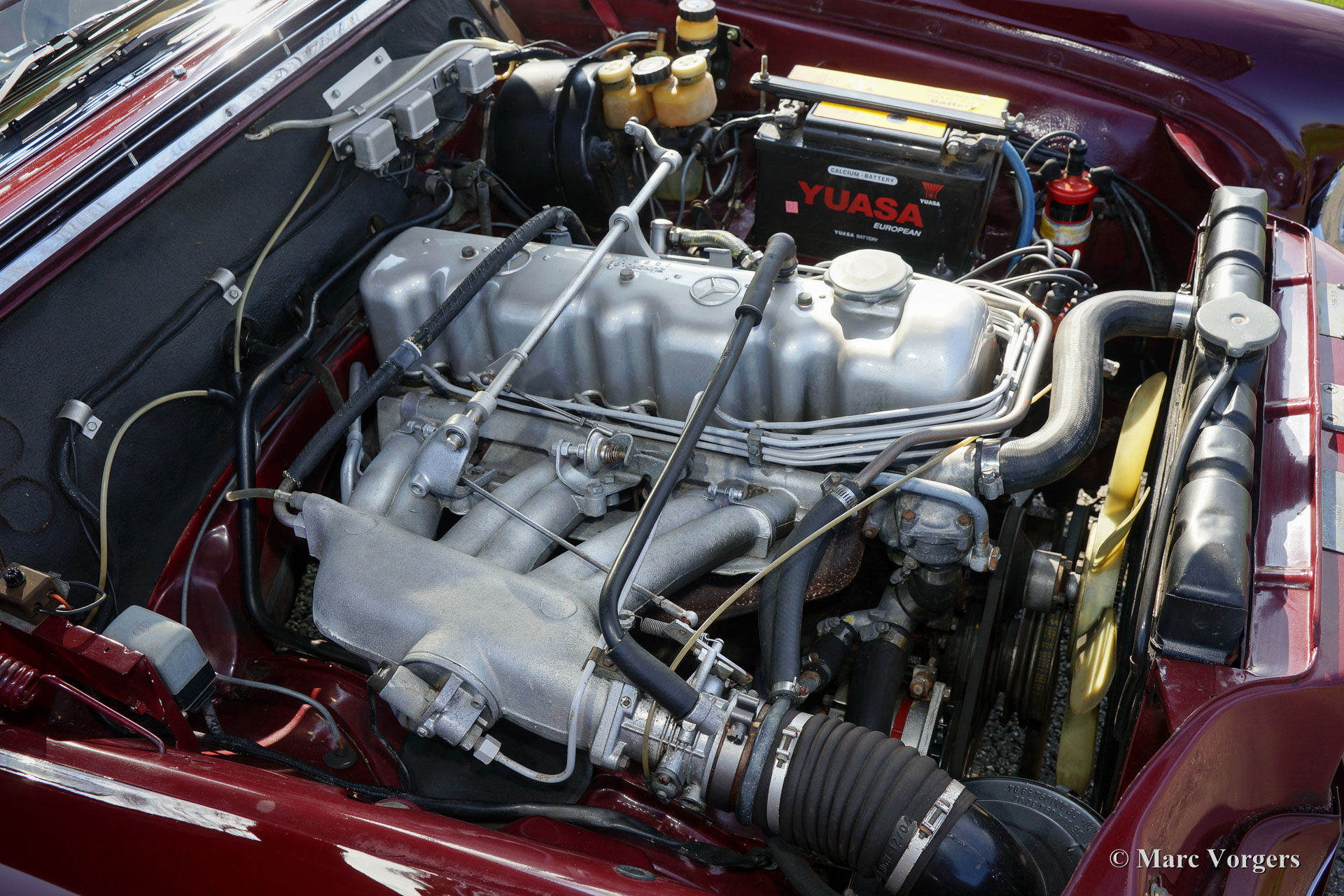 The Mercedes-Benz W108/W109 'Flachkuhler' series was introduced in the year 1965. The model series succeeded the in 1959 presented W111/W112 'Heckflossen' series. Only little details of the coupe and convertible models were changed. The later cars could only be identified by the badges on the rear, therefore these cars continued as W111/W112 series. The series was a re-design of the former series. The four door sedan models changed significantly and were updated to match the slick coupe design.. Just like the former series the new W108/W109 series presented the best Mercedes-Benz had to offer. The automobiles were leading concerning quality and luxury. The cars only had to accept the ultra luxurious and ultra exclusive Mercedes-Benz 600 above them. When first introduced only six cylinder models were available. the (W108) 250 S and 250 SE and the (W109) 300 SE. These models were succeeded by the (W108) 280 S, 280 SE en de 300 SEL (with air-suspension), the W109 model was discontinued. Primarily to please the American market a 3.5 Litre V8 engine was presented for the W108 in the year 1970 and a year later a 4.5 Litre version was launched. The six cylinder models were available with a manual or automatic four-speed gearbox, a five speed manual gearbox was optional. For the 3.5 V8 a four speed automatic gearbox was standard and a four speed manual gearbox was available on request. The later 4.5 Litre V8 was only sold with a three speed automatic gearbox. The W108/W109 series featured servo assisted disc brakes all round and almost all cars were sold with power steering. The 280 SE coupé and convertible models were very expensive cars those days but they sold very well amongst the rich. These Mercedes-Benz models are beautiful cars just like the W111/W112 coupe and convertible models. A fantastic stretched and slick design, very luxurious, comfortable, reliable and very well built.