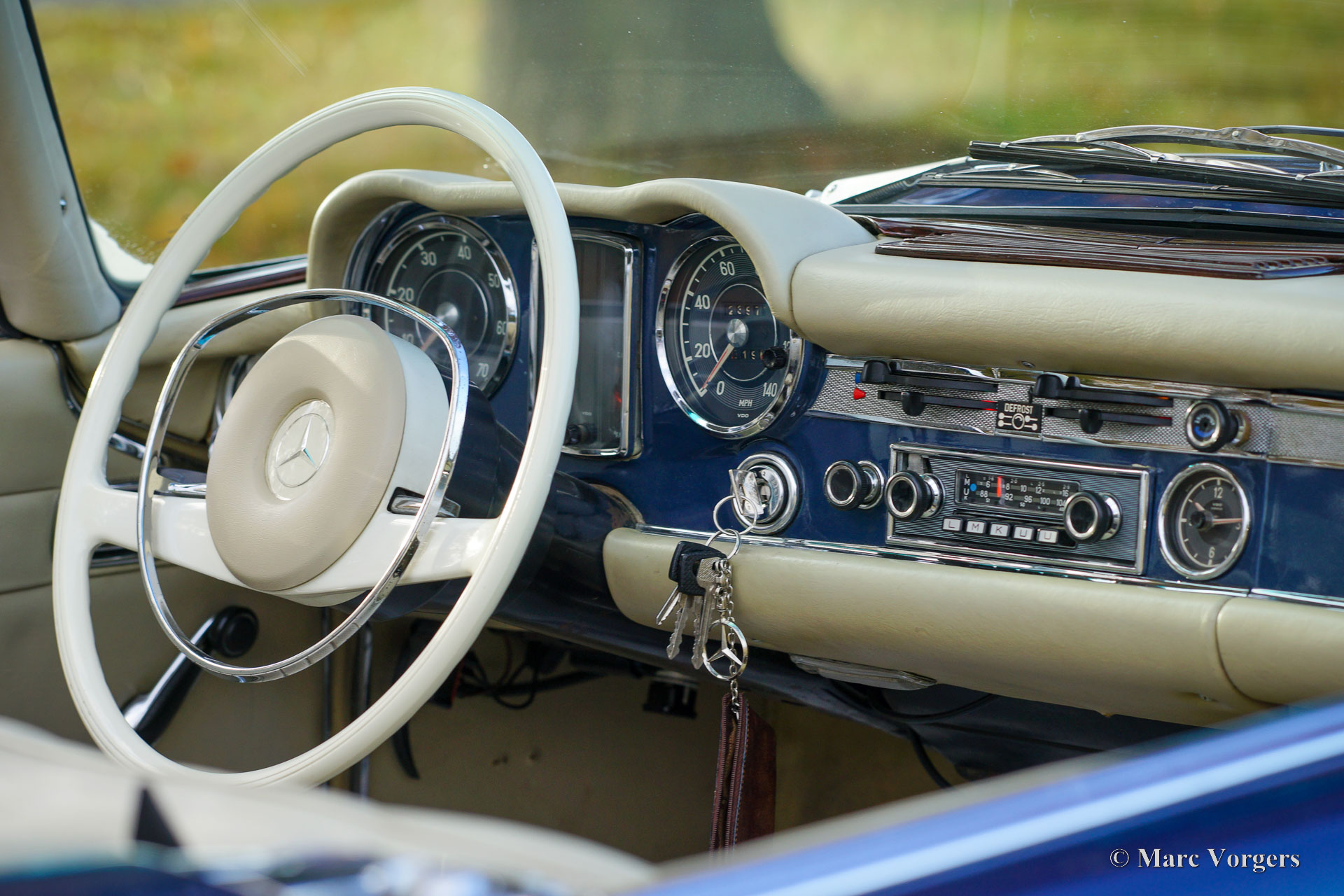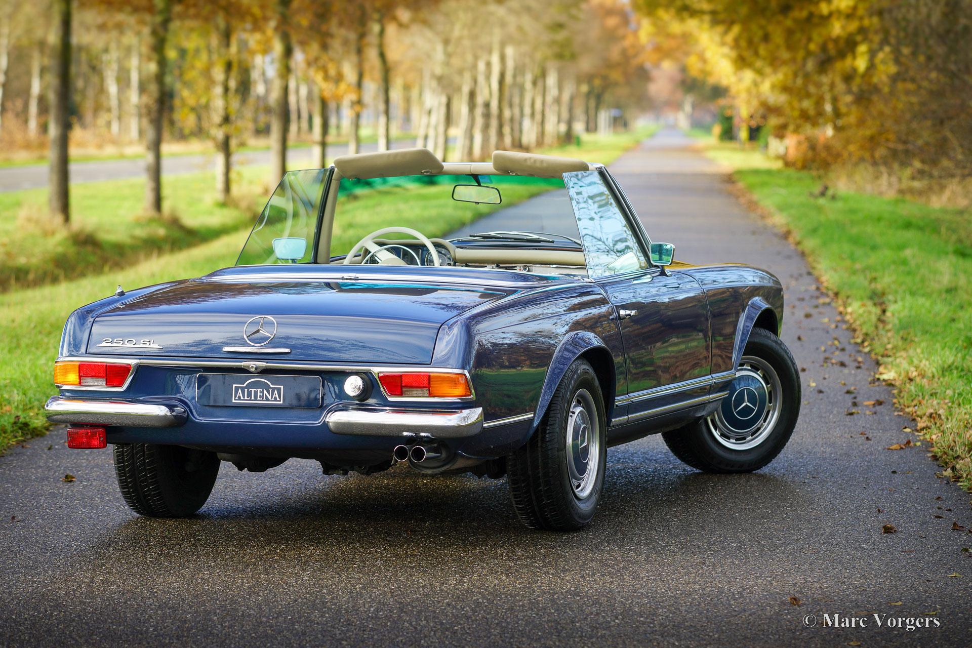The Mercedes 250 SL was produced alongside the 230 SL from 1966 until 1968. The timeless, austere design that was first seen in the Mercedes 300 SE sedan in 1961, was continued in the 230 SL, the 250 SL and thereafter the 280 SL: many see these versions as the most beautiful Mercedes-Benz creations since the 1960s. The 250 SL is characterized by its refined, lively handling and by its very high constructive and technical quality. The car also offers much space, many comforts and practical conveniences. The open two-person roadster is also available with a hardtop, which changes the car into a closed coupe. The Mercedes-Benz 230 SL/250 SL/280 SL carried the nickname of 'Pagoda' because of the design of the hardtop.