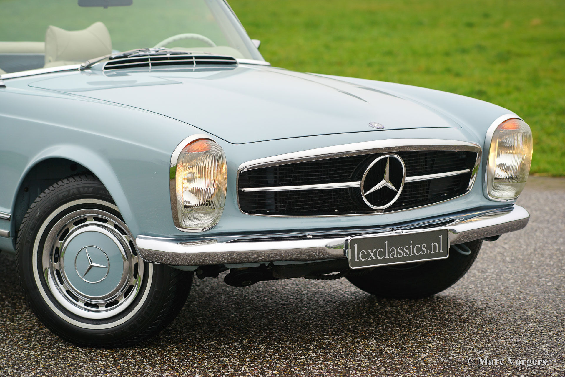 The Mercedes 250 SL was produced alongside the 230 SL from 1966 until 1968. The timeless, austere design that was first seen in the Mercedes 300 SE sedan in 1961, was continued in the 230 SL, the 250 SL and thereafter the 280 SL: many see these versions as the most beautiful Mercedes-Benz creations since the 1960s. The 250 SL is characterized by its refined, lively handling and by its very high constructive and technical quality. The car also offers much space, many comforts and practical conveniences. The open two-person roadster is also available with a hardtop, which changes the car into a closed coupe. The Mercedes-Benz 230 SL/250 SL/280 SL carried the nickname of 'Pagoda' because of the design of the hardtop.