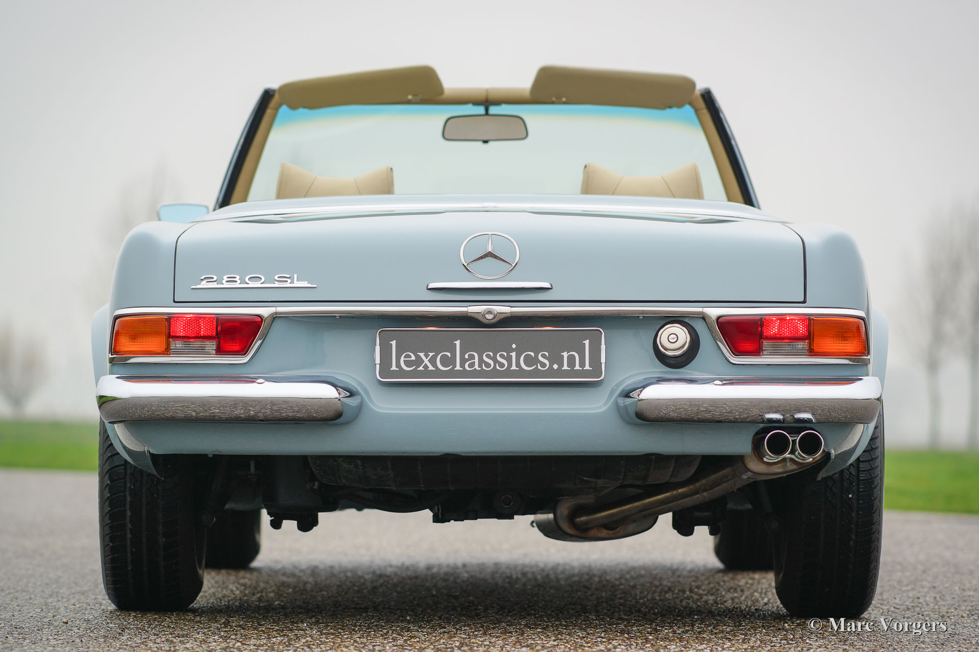 Mercedes-Benz 280 SL ‘Pagode‘, Jahr 1970. Farbe 'Horizont Blau' mit einer beige Lederausstattung und ein blaues Verdeck. Diese wundervolle Mercedes-Benz 280 SL wurde in den USA Neu verkauft. Im Jahr 2014 wurde das auto aus Arizona in die Niederlande importiert. Dann begann eine umfangreiche professionelle Restauration. Dieser 280 SL ist in einem hervorragenden Zustand, concours, und das Auto fährt perfekt. Eine umfangreiche Fotoreportage und Rechnungen der Wiederherstellung sind vorhanden. Die Restaurierung wurde im Jahr 2015 abgeschlossen, das Auto hat seitdem nur Test Kilometer gefahren. Dieser 280 SL fährt einwandfrei, ein sehr schönes exemplar!