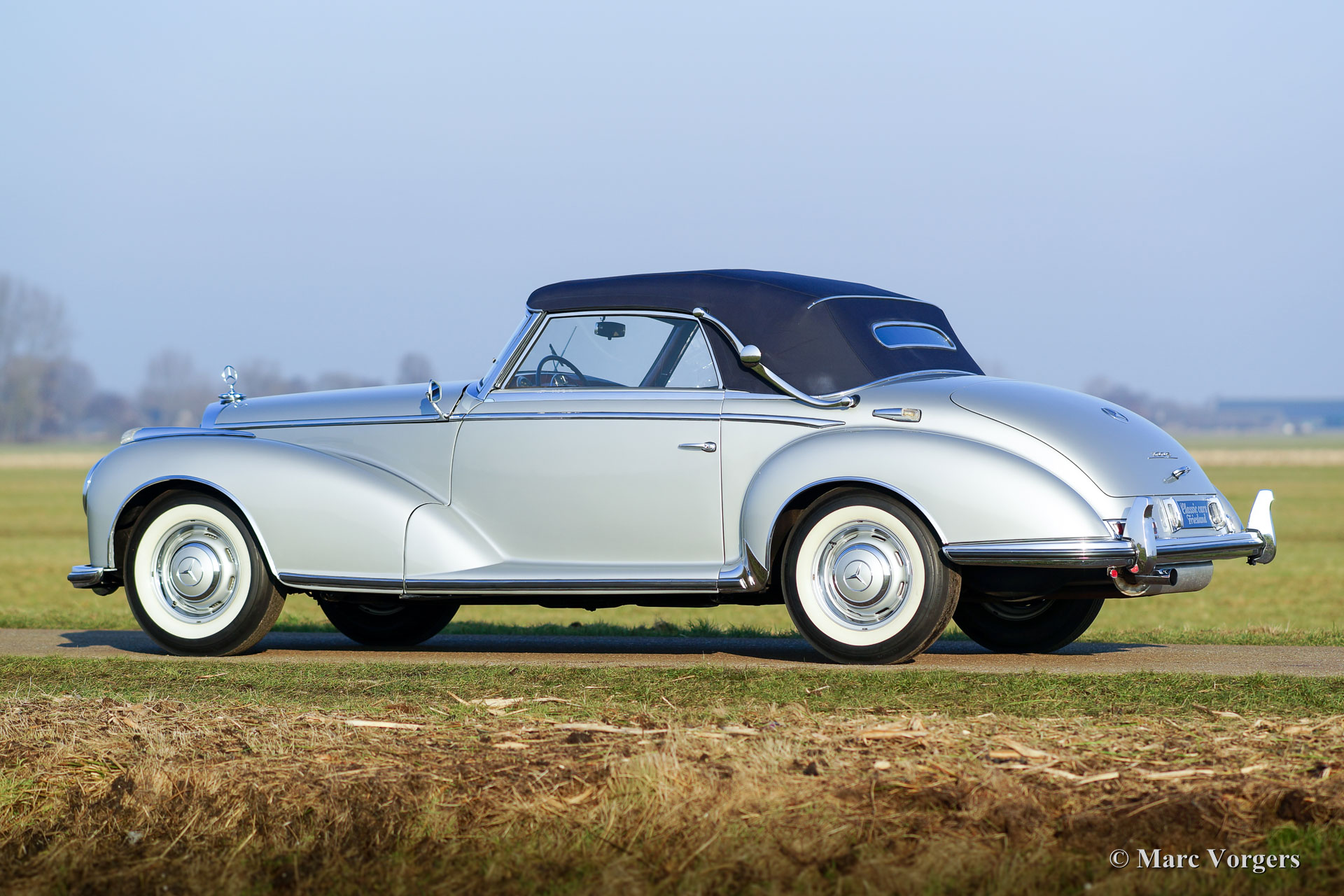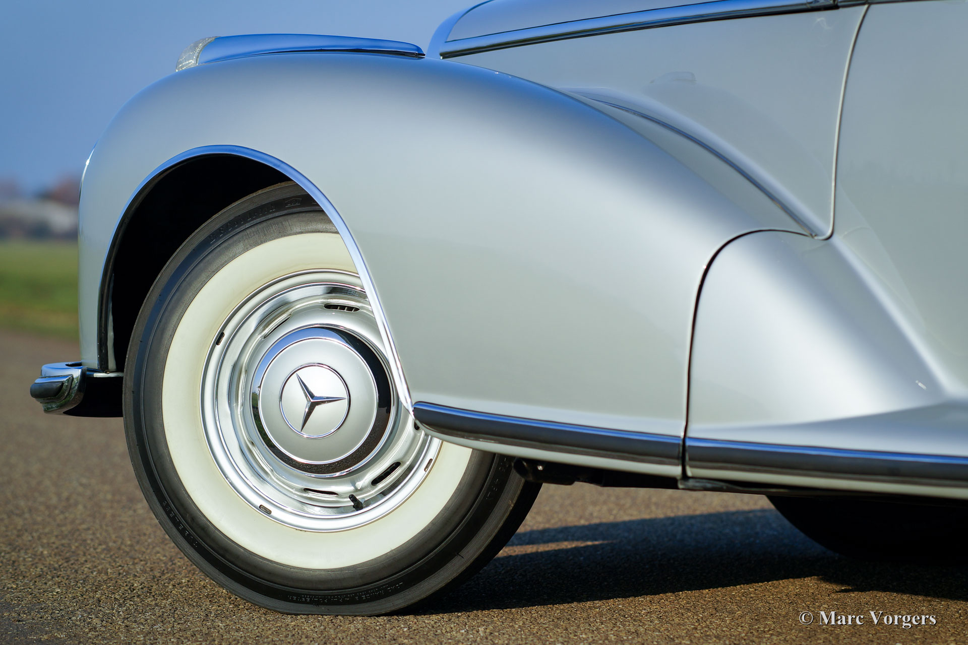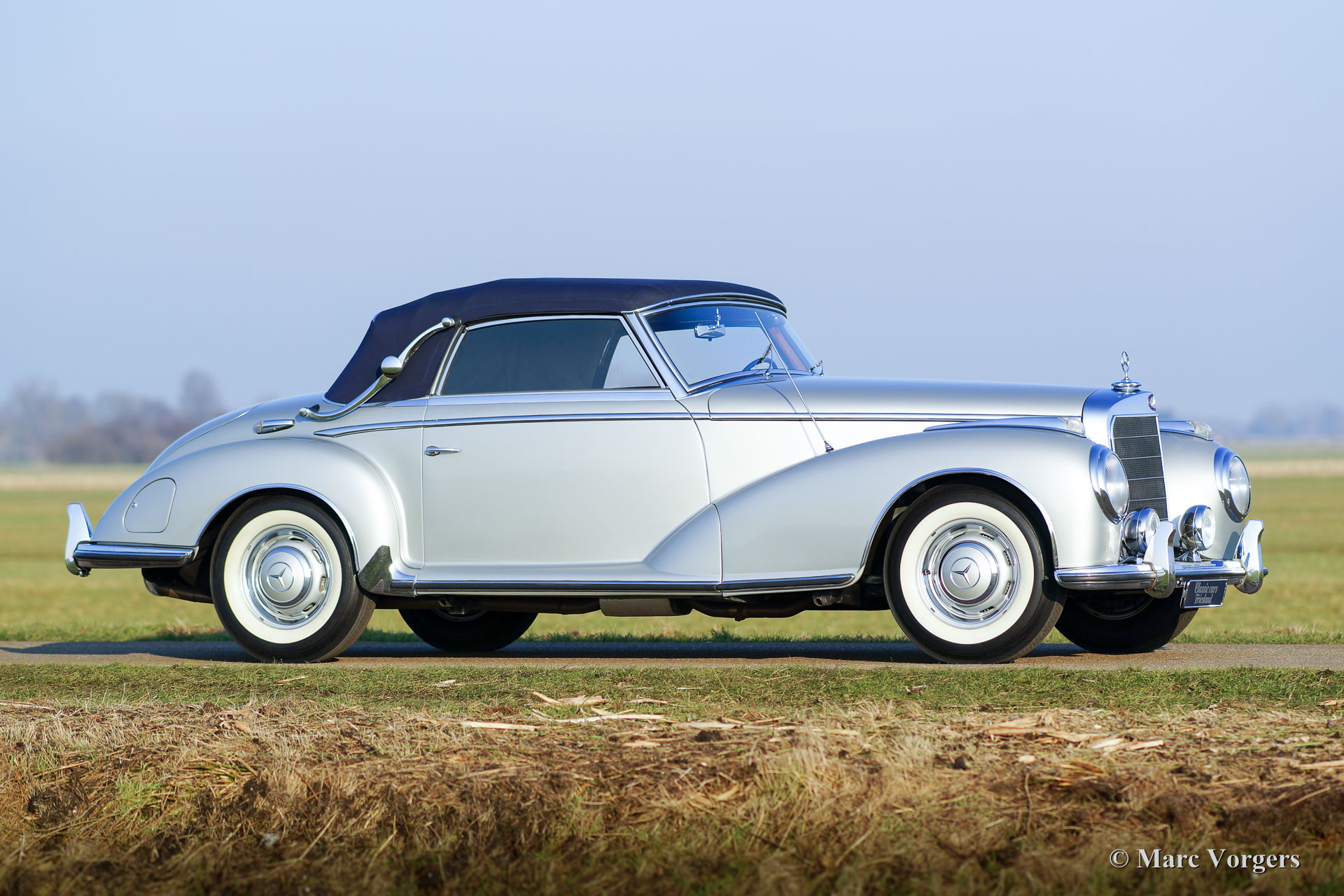 Mercedes-Benz 300 S Cabriolet, Jahr 1953. Farbe silbermetallic mit dunkelblauem Leder-Interieur und blauem Teppichboden mit dunkelblauen Paspeln. Dunkelblaue Mohair Haube. Dieser seltene und sehr exklusive Mercedes-Benz hat ‚‘matching numbers‘. Die ursprüngliche ‘Datenkarte‘ ist vorhanden wie die ursprüngliche Bedienungsanleitung. Dieser wunderbare Mercedes-Benz ist in einem ausgezeichneten und sehr originellen Zustand! Das Auto zeigt alle Originaldetails und das Auto ist mit originalen Nebelscheinwerfern ausgestattet. Diese 300 S ist in den Niederlanden eingetragen. Dies ist ein sehr exklusives und erstklassiges historisches Automobil, ein TOP-Show-Stück in jeder Mercedes-Benz Kollektion.