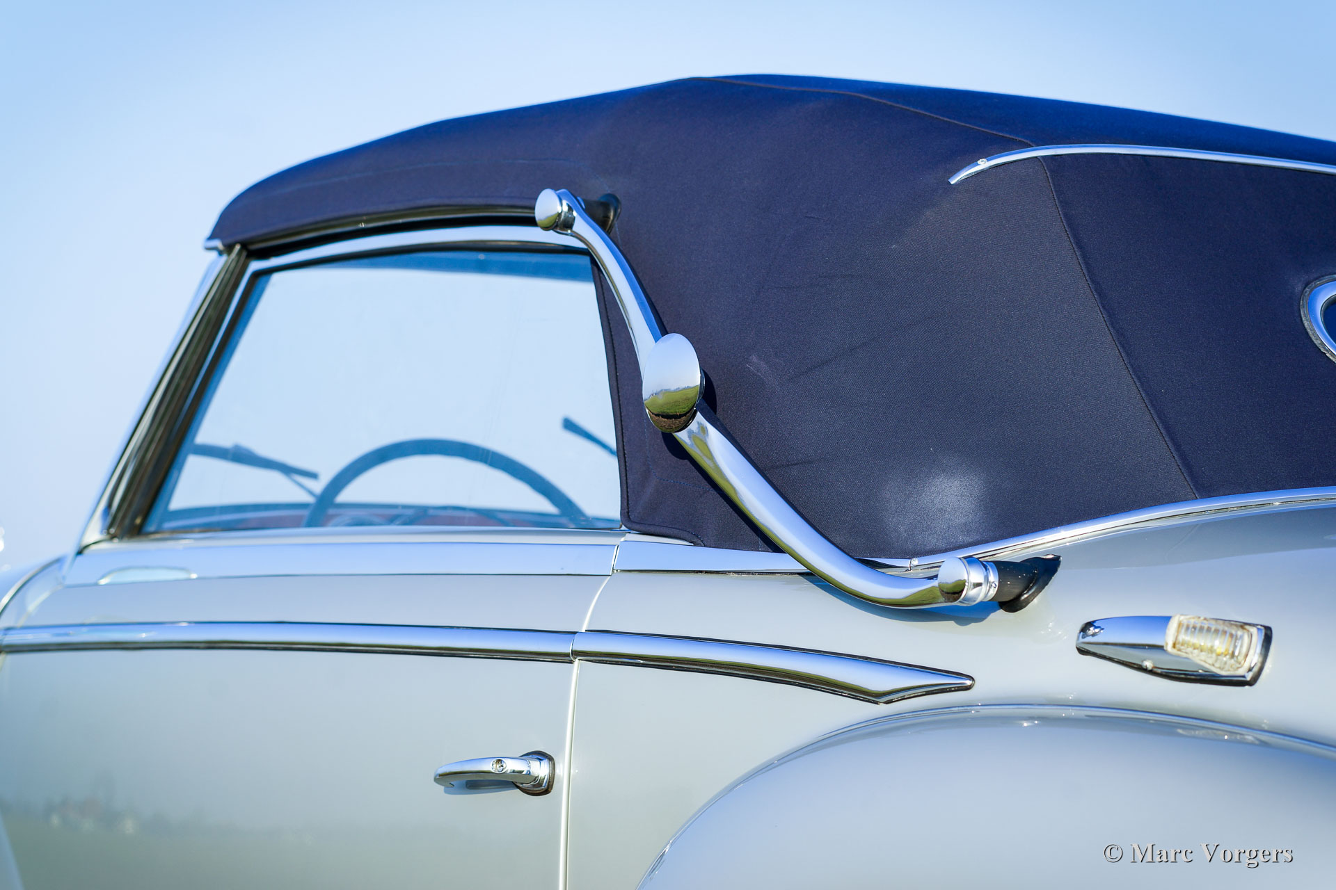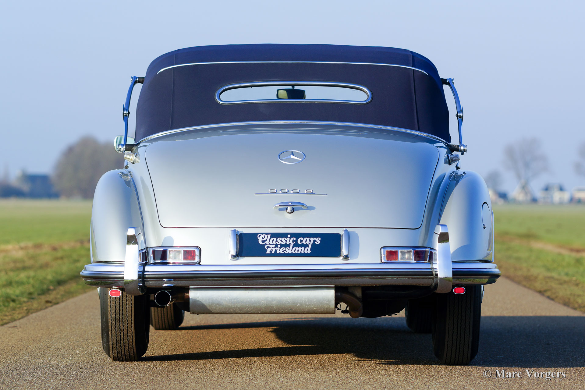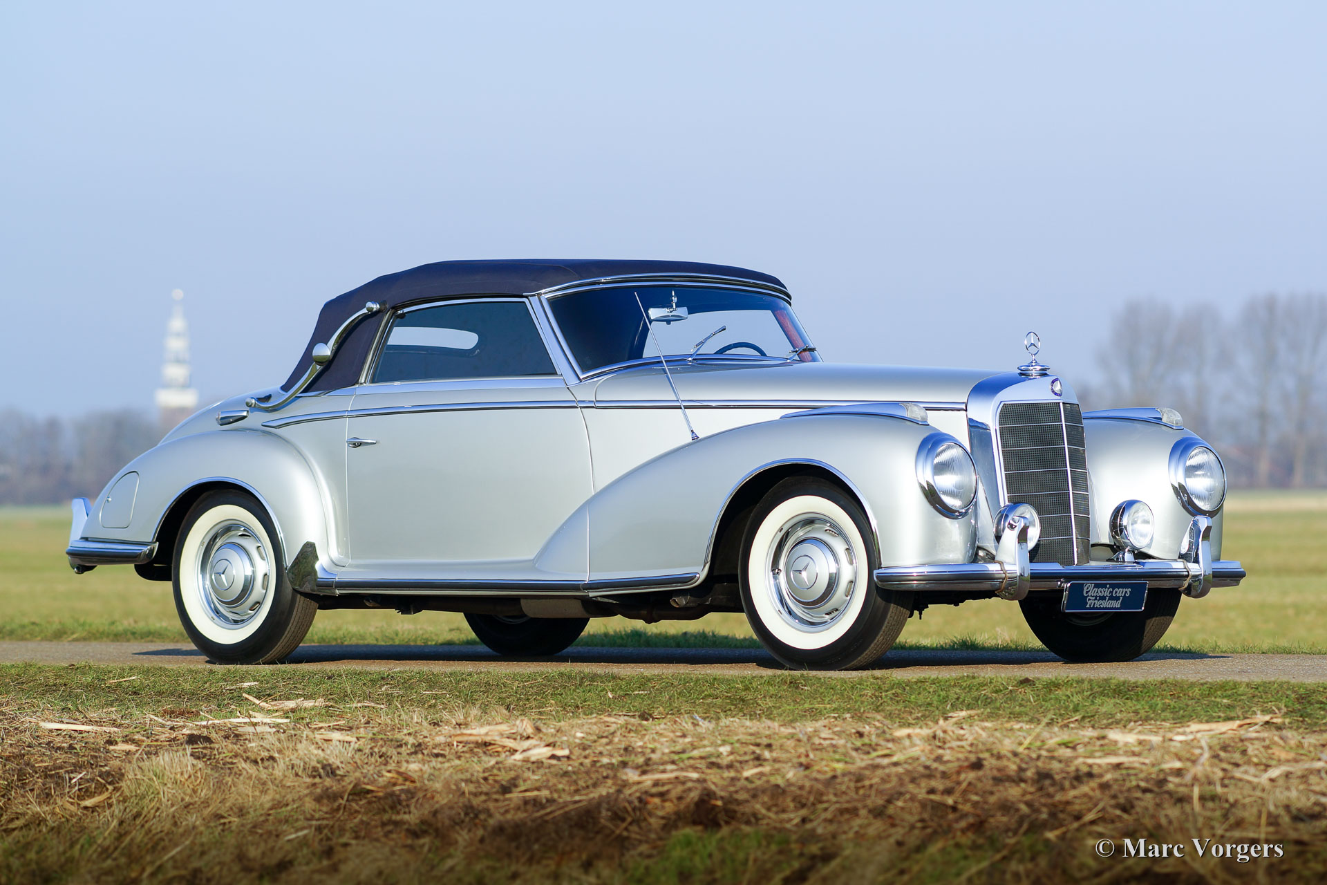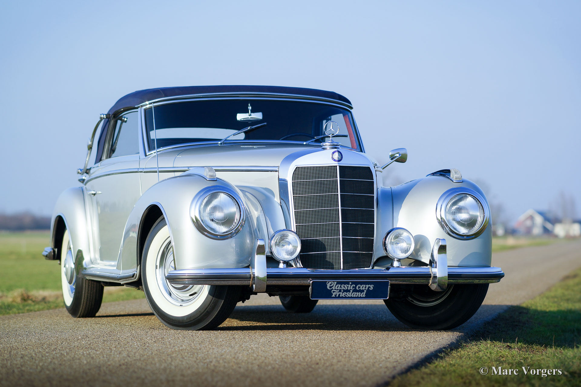 Mercedes-Benz 300 S Cabriolet, Jahr 1953. Farbe silbermetallic mit dunkelblauem Leder-Interieur und blauem Teppichboden mit dunkelblauen Paspeln. Dunkelblaue Mohair Haube. Dieser seltene und sehr exklusive Mercedes-Benz hat ‚‘matching numbers‘. Die ursprüngliche ‘Datenkarte‘ ist vorhanden wie die ursprüngliche Bedienungsanleitung. Dieser wunderbare Mercedes-Benz ist in einem ausgezeichneten und sehr originellen Zustand! Das Auto zeigt alle Originaldetails und das Auto ist mit originalen Nebelscheinwerfern ausgestattet. Diese 300 S ist in den Niederlanden eingetragen. Dies ist ein sehr exklusives und erstklassiges historisches Automobil, ein TOP-Show-Stück in jeder Mercedes-Benz Kollektion.