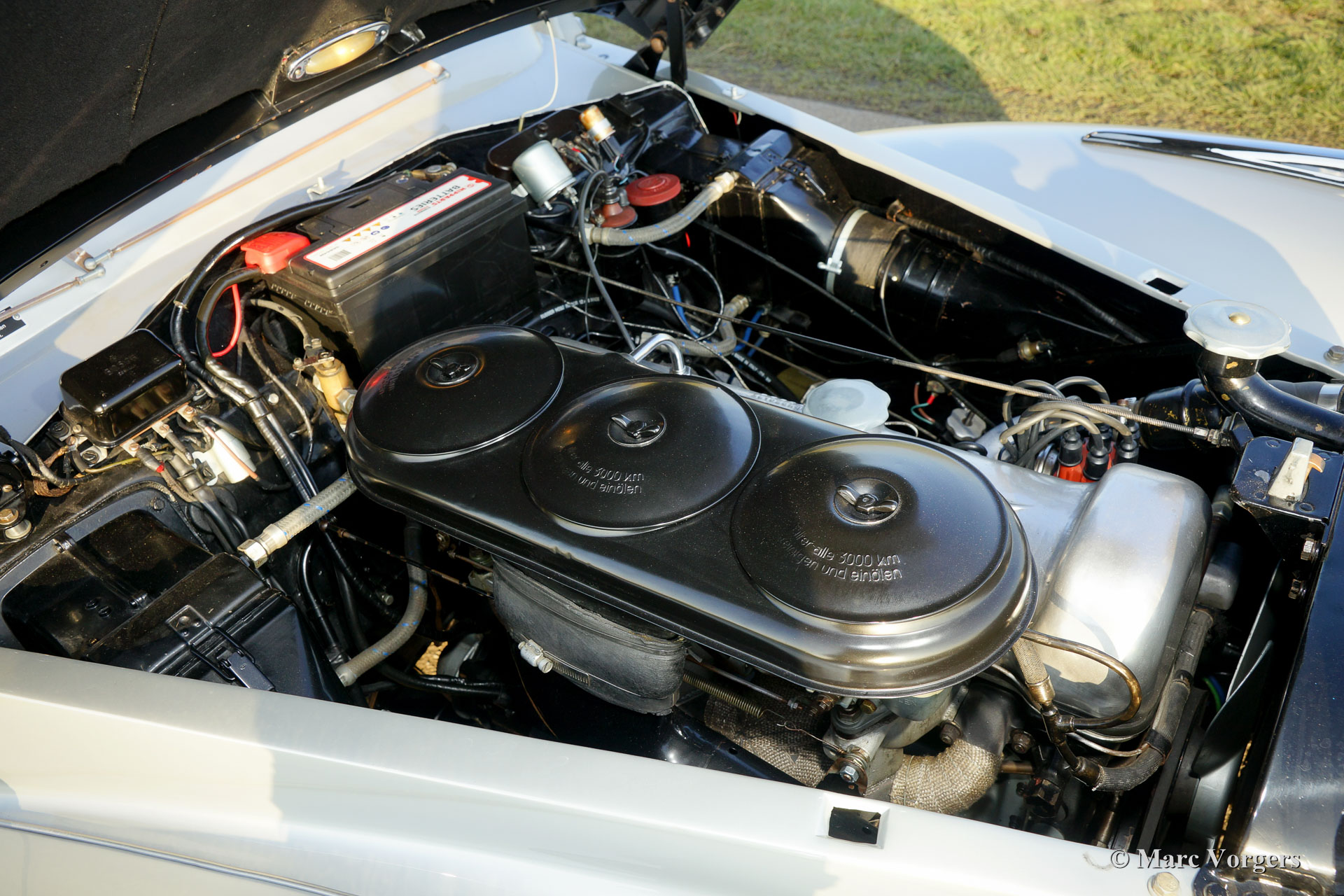 The Mercedes-Benz 300 was the ultimate top model of Mercedes-Benz in the fifties of the twentieth century. The model was named 'Adenauer' after 'Bunderkanzler' Konrad Adenauer who was driven in six 300 S models during his government period. The Mercedes 300 sedan and four door cabriolet (W186 - A series) were introduced together with the 300 S (W188 series) on the Paris Salon of 1951. The 300 S featured three downdraught Solex carburettors. In the year 1954 the B series was presented (with servo assisted brakes), in the year 1955 C series was introduced (with independent suspension and optional automatic transmission). In 1957 the D series (W189) saw the light of day (petrol injection standard). The Mercedes-Benz 300 S is scarce, between the years 1951 and 1958 only 760 have been built on a total of 12.290 300 models. The C-series 300 S was also available with petrol injection, this model was named 300 Sc. These models are very scarce, from the 300 Sc C-series cabriolet only 49 have been built. The Mercedes-Benz 300 'Adenauer' was an extremely luxurious automobile, only the best materials were used and the appearance was of royal class. In the 1950'ies they were the most expensive cars on the market and much more expensive than the Mercedes-Benz 300 SL 'Gullwing'. A 300 S cabriolet was available from 36.000 D-mark... Customers could order options like several Becker radio's, a dictating machine or a VHF telephone.