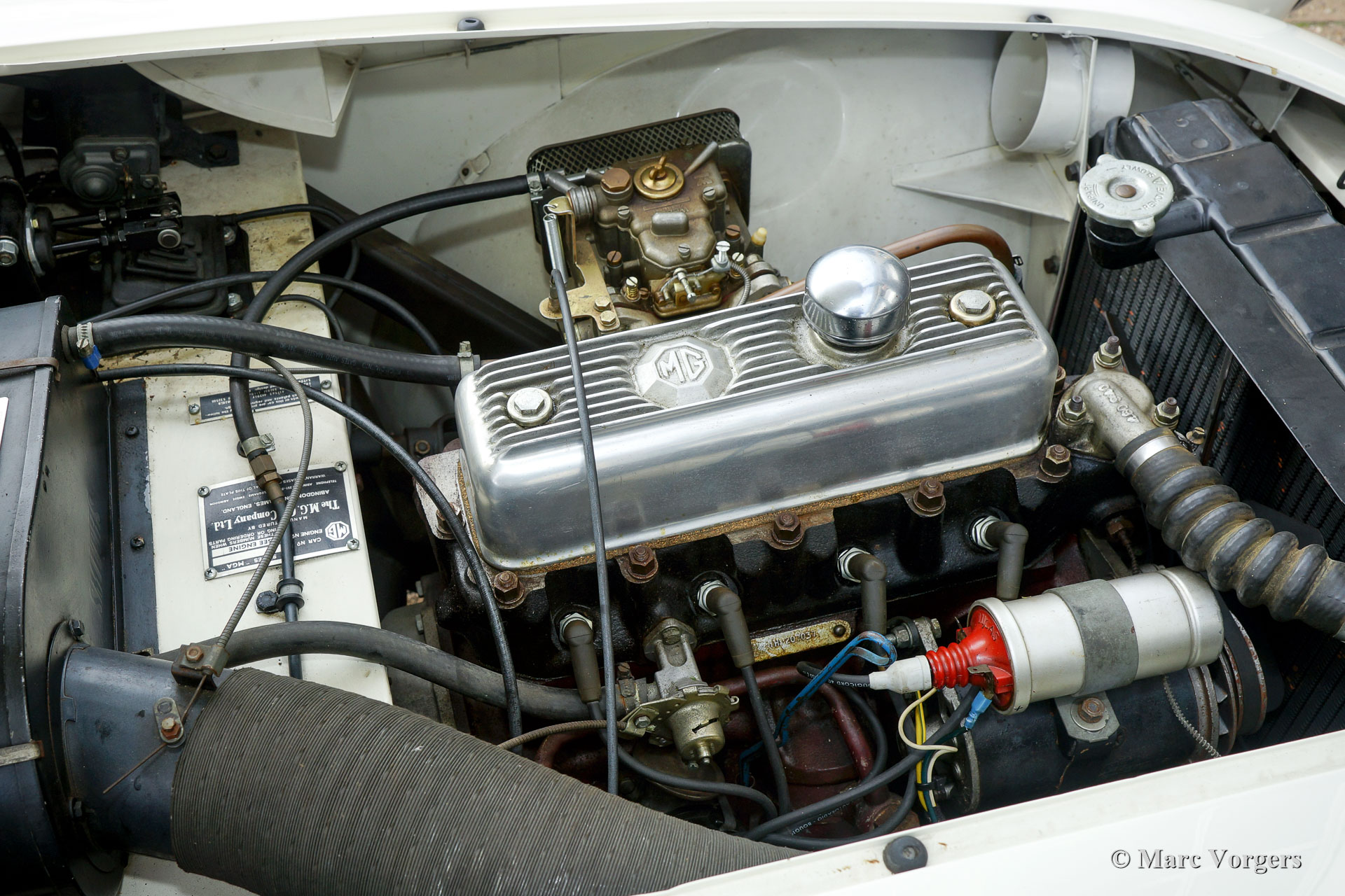 The year 1955 saw the introduction of the MGA. With this design the MG broke new grounds. After its predecessors MG TD and MG TF, which were largely based on the pre-war MG TB, it was a roadster with a very modern sporty design. Like its predecessors, the MGA was a great success and, like before, the greater part was sold in America. Until 1959, the MGA was equipped with a 1459 cc four-cylinder engine. From that year, the car was fitted with a 1588 cc four-cylinder. A 1622 cc four-cylinder engine replaced the 1588 cc. engine in 1961. The early MGA versions had very good drum brakes until 1959, but after that year, the MG A was equipped with disc brakes on the front wheels. The year 1962 saw the production of the MGA, the A 1600 Mk II. The MGB replaced this very popular British sports car, and was to develop the success of the MG A even further.
