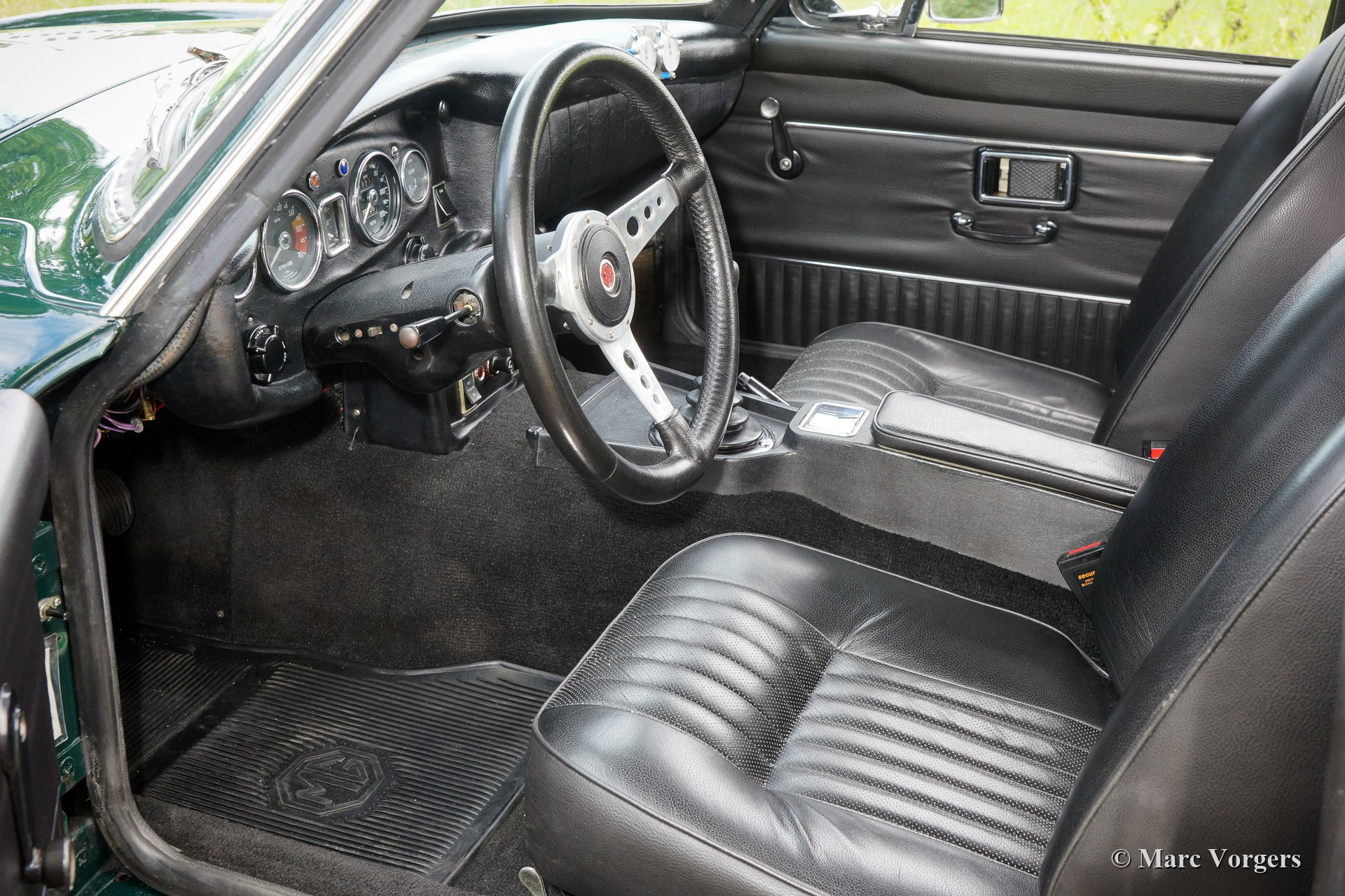 MG MGB GT, Jahr 1970. Farbe British Racing Green mit einer schwarzen Lederausstattung. Dieser prächtige MGB GT wurde in der Vergangenheit von der renommierten Firma Piet Mozes Restaurationen in die Niederlande hochkarätig restauriert. Alles wurde wiederhergestellt und / oder erneuert. Die Karosserie wurde vom blanken Metall aus restauriert, die Passung der Blechpaneele ist perfekt. Der Körper wurde mit einer Epoxidgrundierung versehen und mit einem hochwertigen Lacksystem innen und außen lackiert. Die Hohlräume wurden mit Dinitrol behandelt. Natürlich wurden Motor, Getriebe und Hinterachse überholt. Der Motor wurde auf "Fast-Road" -Spezifikationen eingestellt. Das Auto verfügt über: Overdrive, spezielle klassische Sportsitze mit Kopfstütze, lackierte Speichenfelgen mit verchromten Radmuttern, Stoppuhren für historische (Touring / Rallye) Events und ein MotoLita-Lenkrad mit lederummanteltem Felge. Dieser MGB GT ist in einem hervorragenden Zustand und das Auto fährt perfekt. Das Auto wird mit einer Geschichte-Datei und (Service-) Rechnungen geliefert. Einen MGB GT nach diesen Standards zu restaurieren ist ein sehr teures Geschäft... Das ist Ihre Chance, einen hervorragend restaurierten MGB GT von Top Qualität zu kaufen!