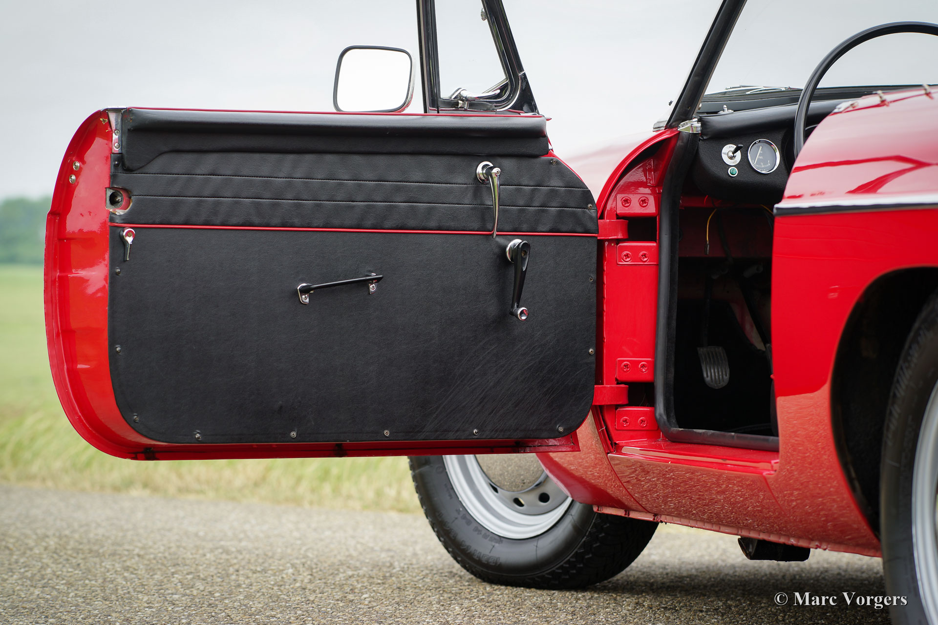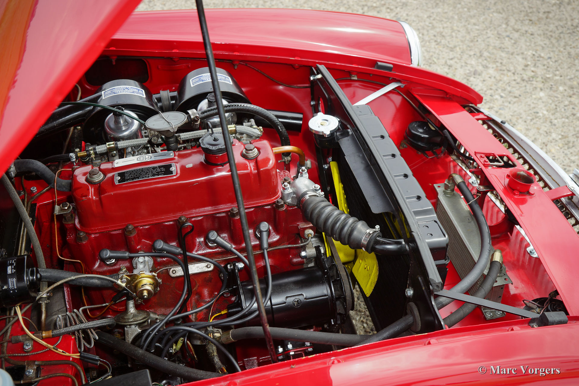 In 1962, the successful MG A was followed by the even more successful and austerely but elegantly lined MG B. This series, too, mainly found its way to America. The MG B was available as roadster and as a 2+2 coupe, called the ‘GT’.