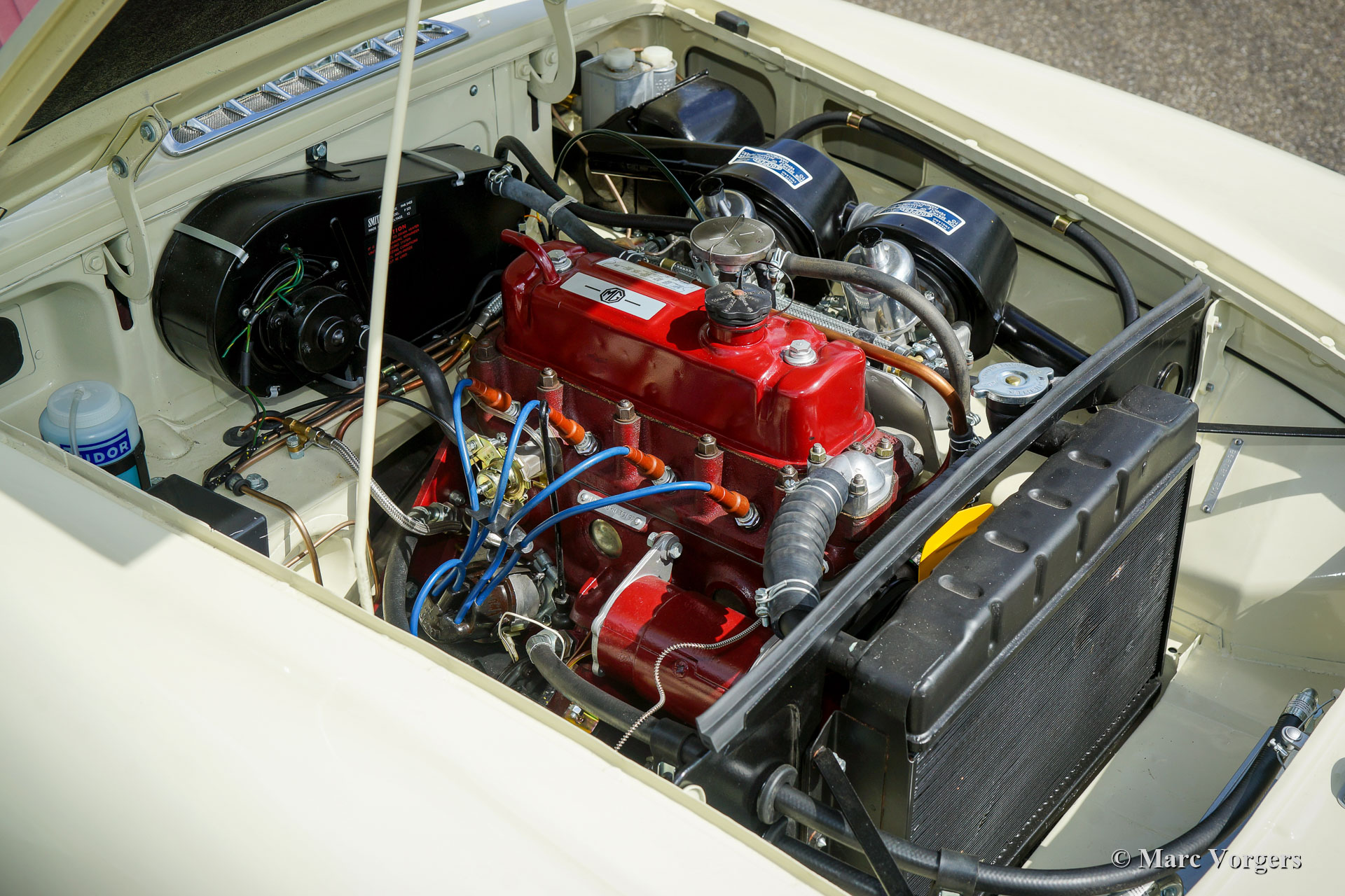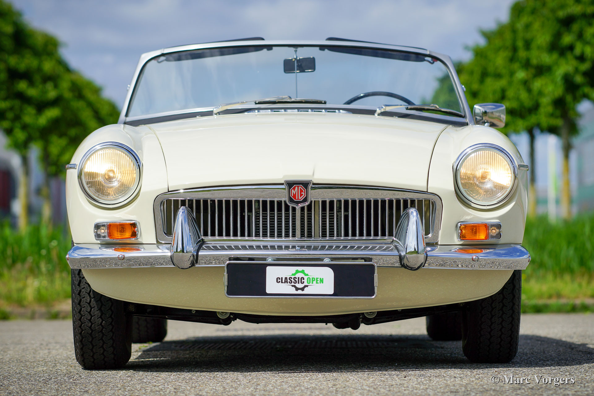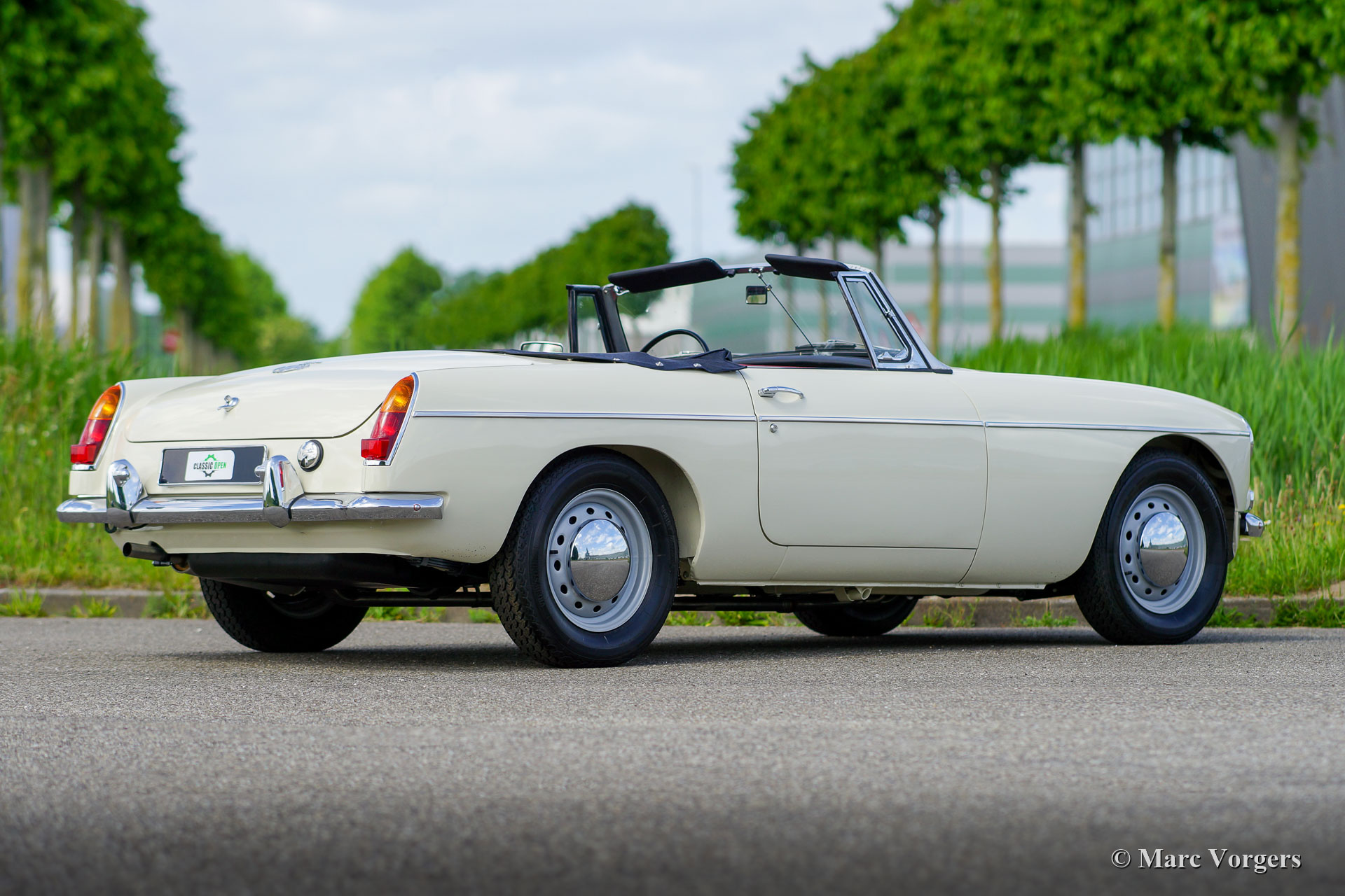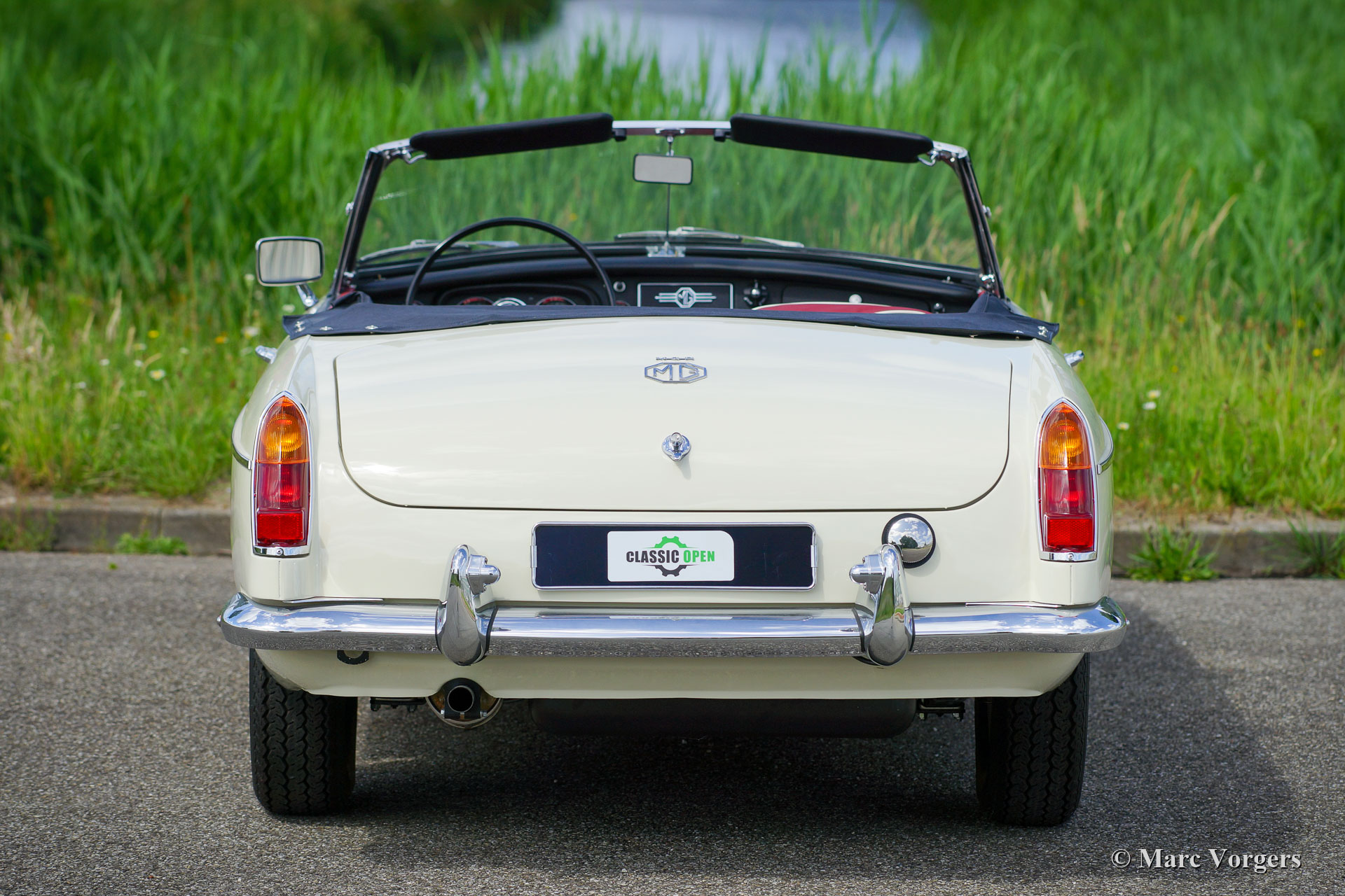 MG MGB roadster, Jahr 1966. Farbe ‘Old English White‘ kombiniert mit einer roten Lederausstattung getrimmt mit weißen Paspeln und schwarzem Teppich. Schwarzes Verdeck und Verdeckbezug. Dieser prächtige MG MGB wurde umfassend bis zur Perfektion restauriert! Das Auto ist in einem Concours-Zustand und es fährt herrlich. Seit Abschluss der Restaurierung hat das Auto nur 500 Kilometer gefahren. Dieser feine MGB zeigt alle originalen Details wie das wunderschöne Metallarmaturenbrett mit schwarzer Kräusellackierung, das originale Lenkrad und die Stahlscheibenräder mit verchromten Nabenkappen. Das Auto ist mit Overdrive und Scheibenbremsen an den Vorderrädern ausgestattet. Ein Top-Beispiel für den anspruchsvollen Enthusiasten.