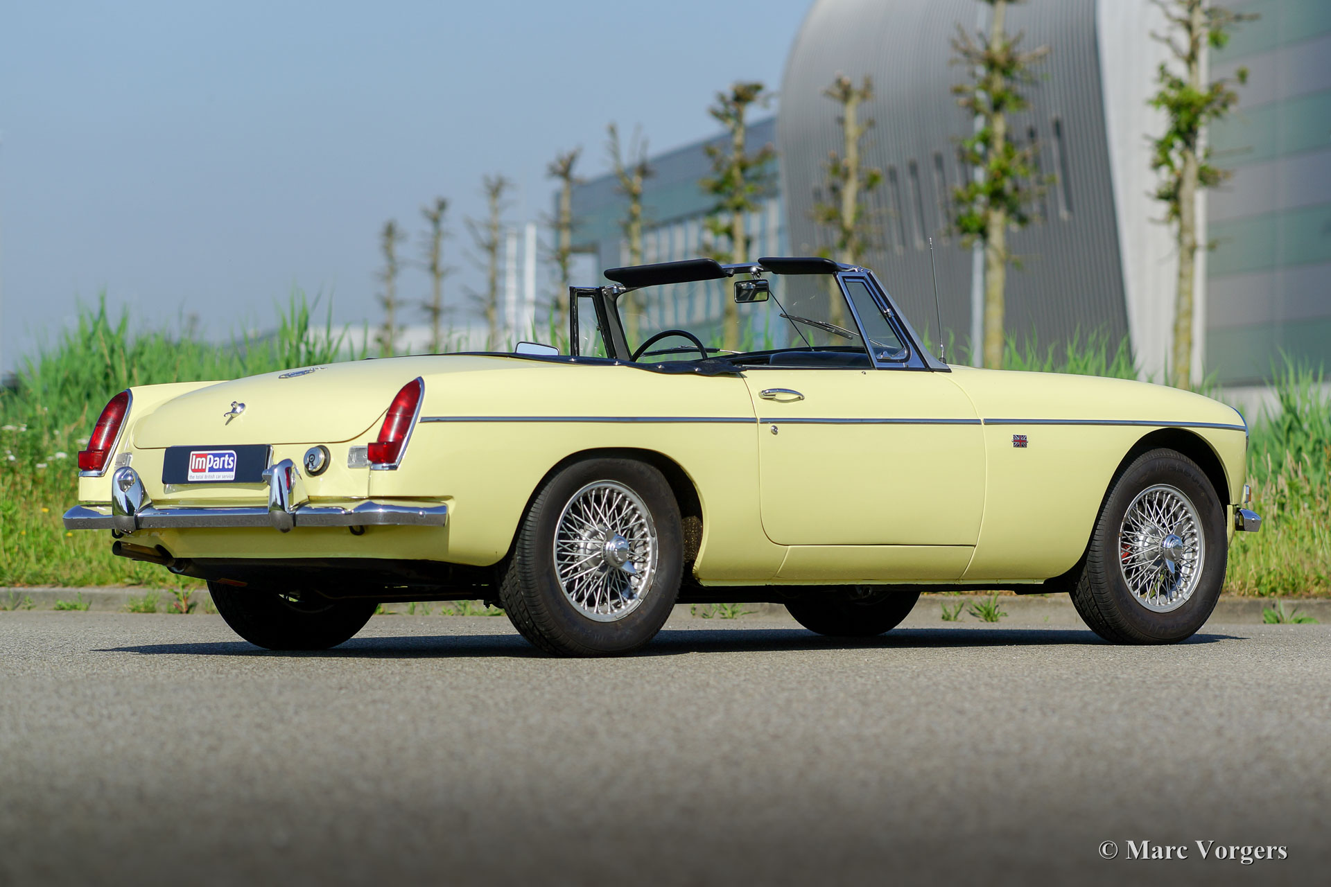 The MG B was the first MG (Morris Garage) to be built of unitary construction bodywork. The MG B roadster was manufactured between 1962 and 1980. Early models can be recognized by the chrome bumpers, but because of American rules on safety, the later models were equipped with synthetic bumpers. The greater part was exported to the United States.