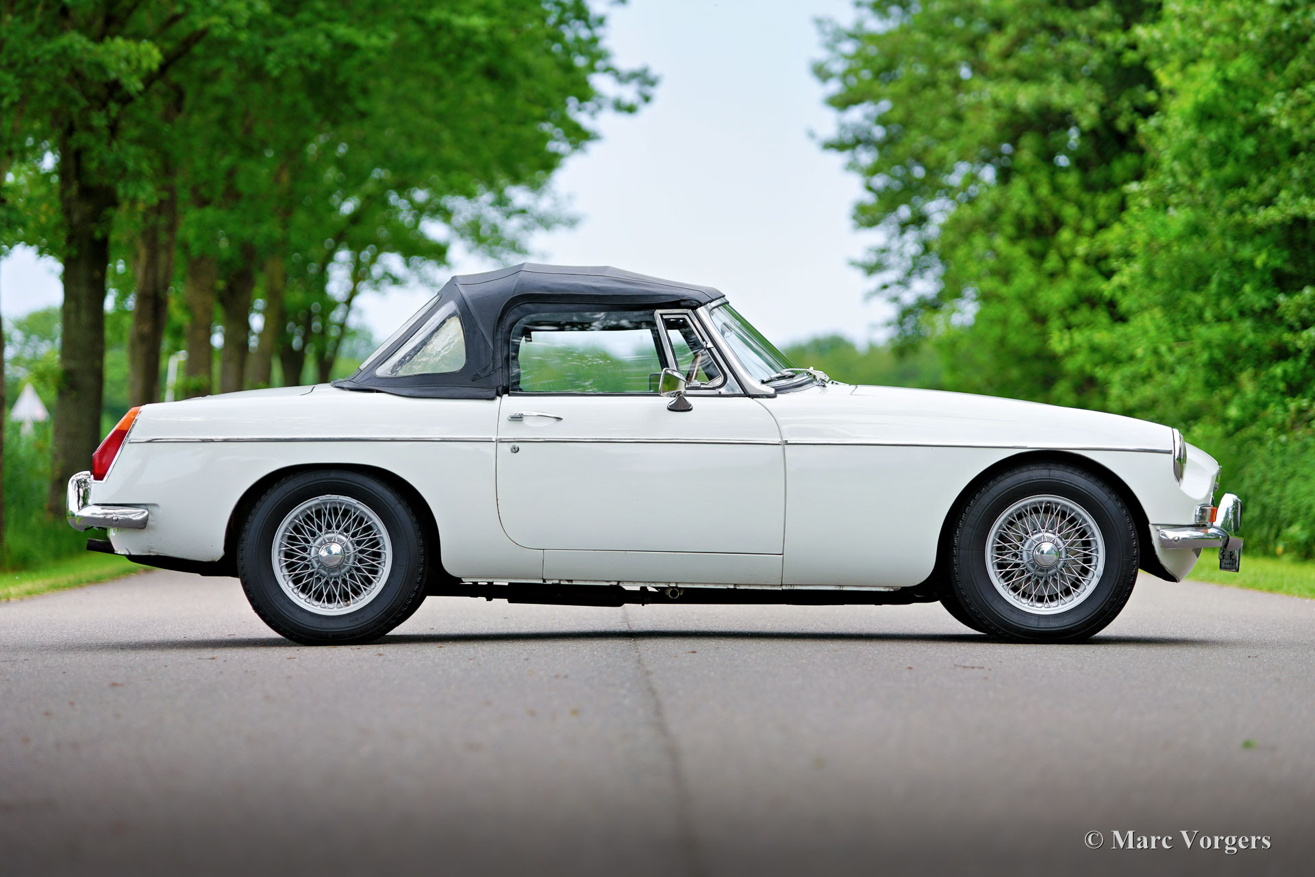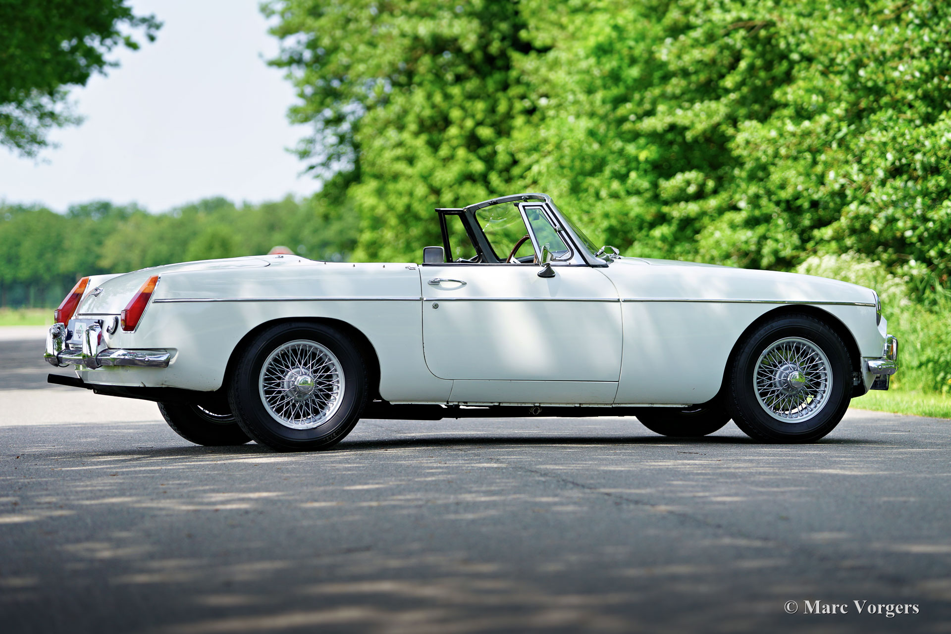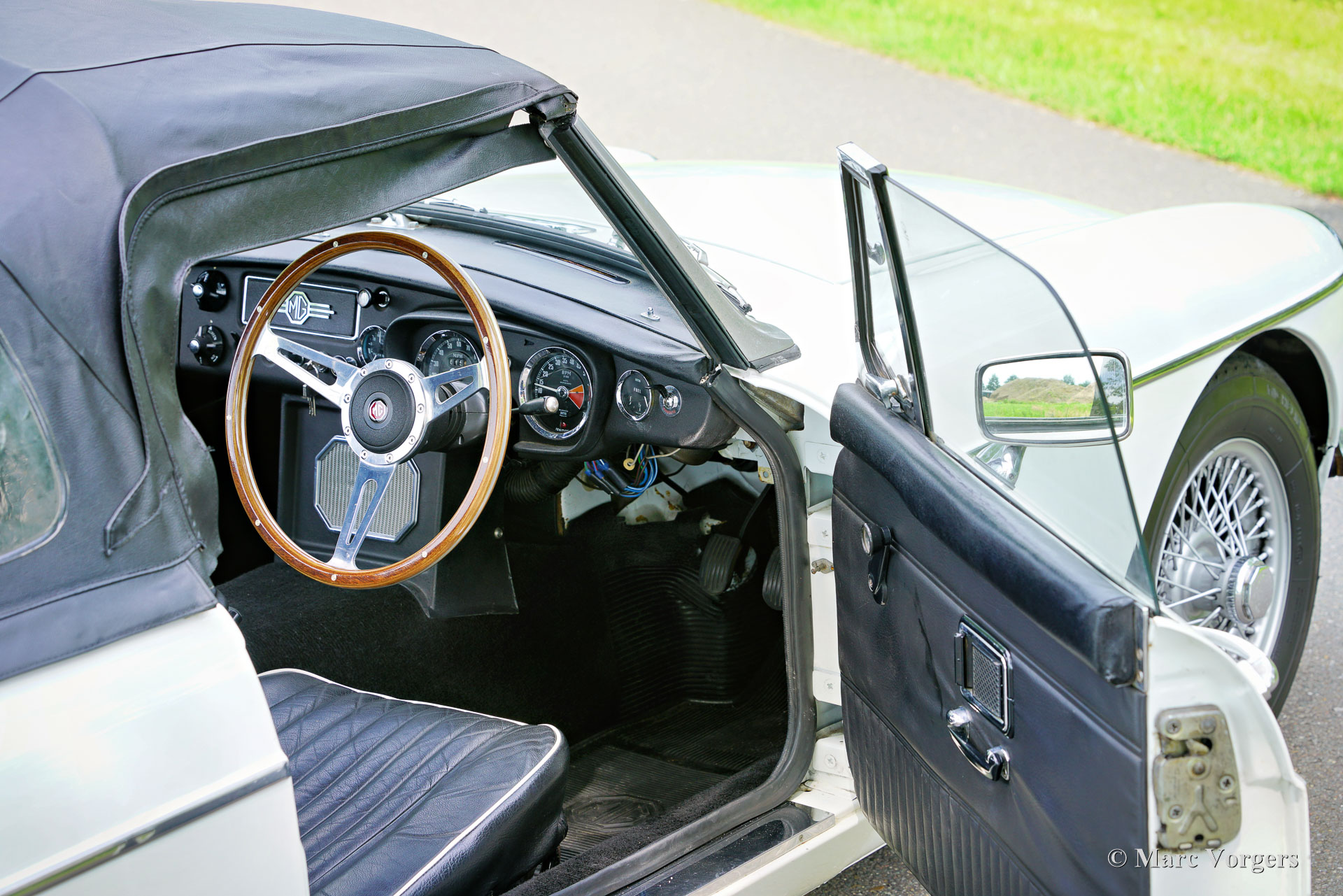 MG MGB Roadster, Jahr 1970. Farbe Weiß kombiniert mit einer schwarzen Lederausstattung, getrimmt mit weißen Paspeln und schwarzem Teppich. Schwarzes Verdeck. Dieser wunderschöne MGB-Roadster mit Rechtslenkung wurde im Vereinigten Königreich als Neuwagen verkauft. Das Auto befindet sich jetzt in den Niederlanden und wurde vor einigen Jahren umfassend restauriert. Dieser entzückende MGB-Roadster ist in einem sehr guten Zustand! Dieser MGB verfügt über das begehrte originale Armaturenbrett aus schwarzem Metall, Overdrive, verchromte Speichenräder und ein Sportlenkrad mit Holzkranz. Auf Wunsch können wir diesen MGB in unserer Werkstatt gegen Aufpreis auf Linkslenker umrüsten. Der MGB-Roadster ist ein begehrenswerter und vielseitiger offener britischer Sportwagen, eine Zeitmaschine für schöne Sommerabende, Wochenendausflüge und Feiertage. Fahren Sie über kurvenreiche Landschaftsstraßen, erkunden Sie historische Dörfer und besuchen Sie B&Bs in Europa oder im Vereinigten Königreich. Der 90 PS starke Vierzylindermotor klingt warm und sportlich und der Innenraum bietet viel Platz. Die Motorleistung und die Beschleunigung reichen aus, um sich bequem im modernen Verkehr zurechtzufinden!