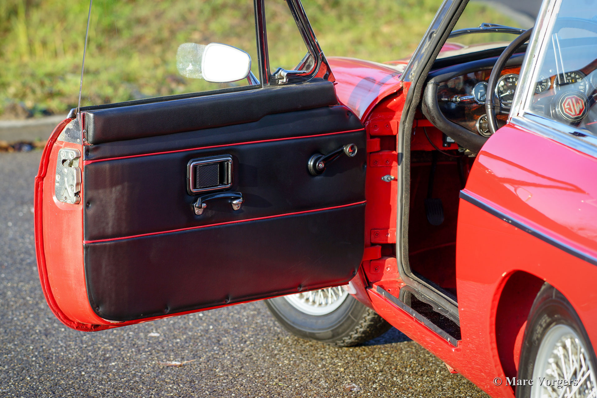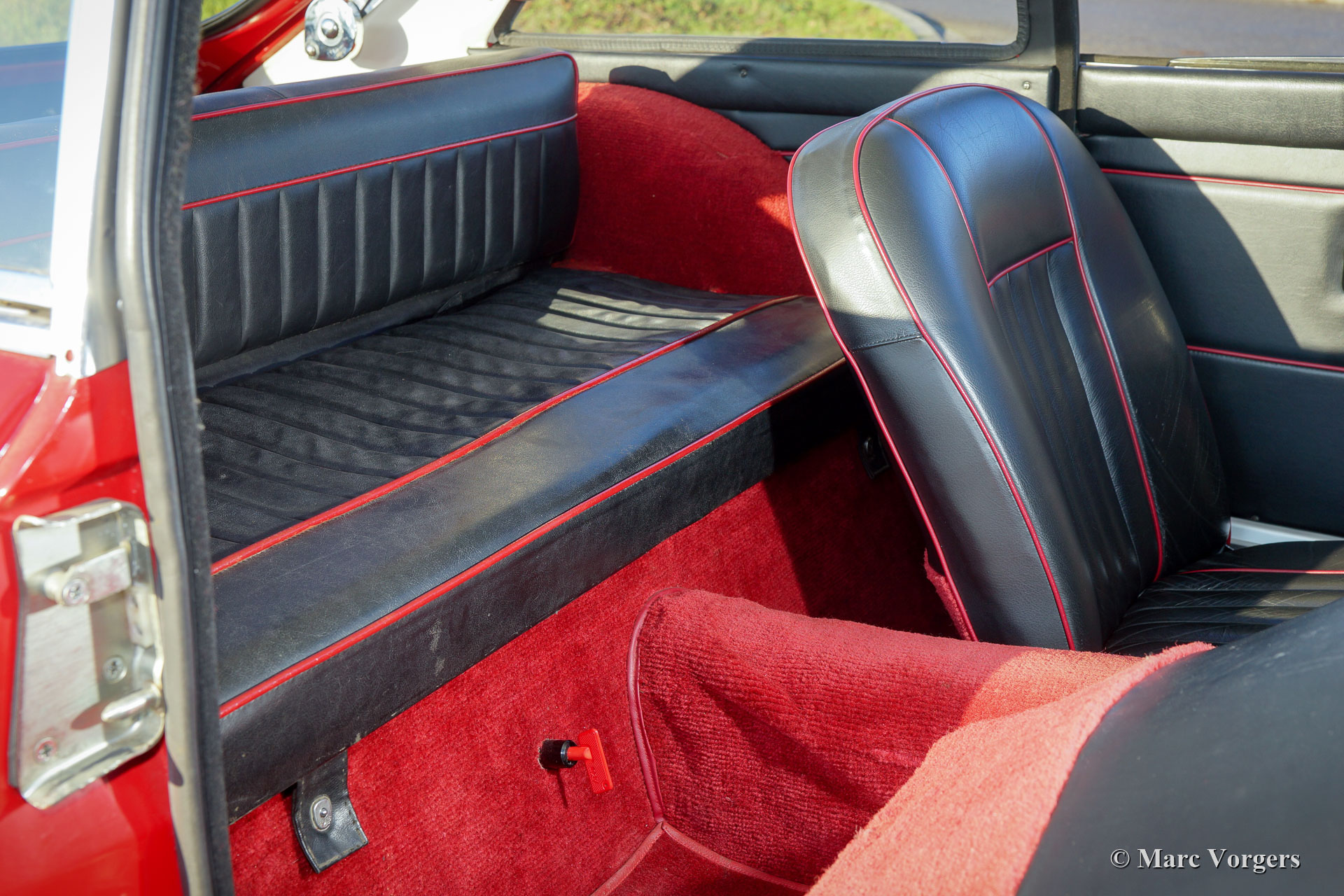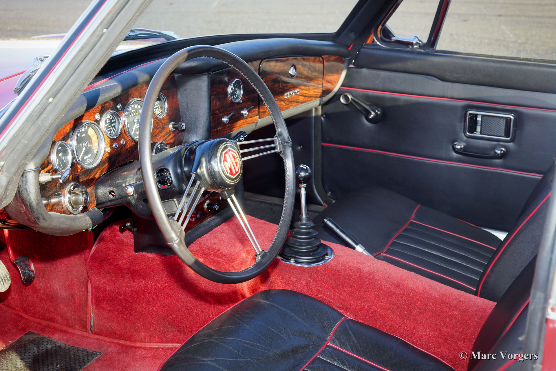 MG MGC GT, Jahr 1968. Farbe Tartanrot kombiniert mit einem schwarzen Lederinterieur mit roten Paspeln und rotem Teppich. Dieser wunderbare MGC GT ist in einem sehr guten Zustand und das Auto fährt perfekt! Der große 3000-cm3-Reihensechszylinder-Motor klingt großartig und liefert viel Kraft und Drehmoment. Das Auto hat eine sehr gute Service-Geschichte. Das Auto verfügt über ein prächtiges Armaturenbrett mit Nussbaumfurnier und zusätzlichen Instrumenten. Darüber hinaus ist dieser feine MGC ausgestattet mit einem Edelstahl-Auspuff, einem Ölkühler und bekräftigte Bremsen. Ein sehr schönes Beispiel!