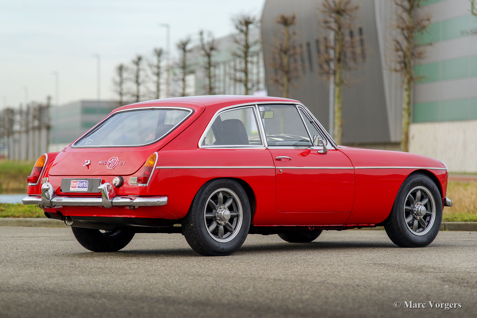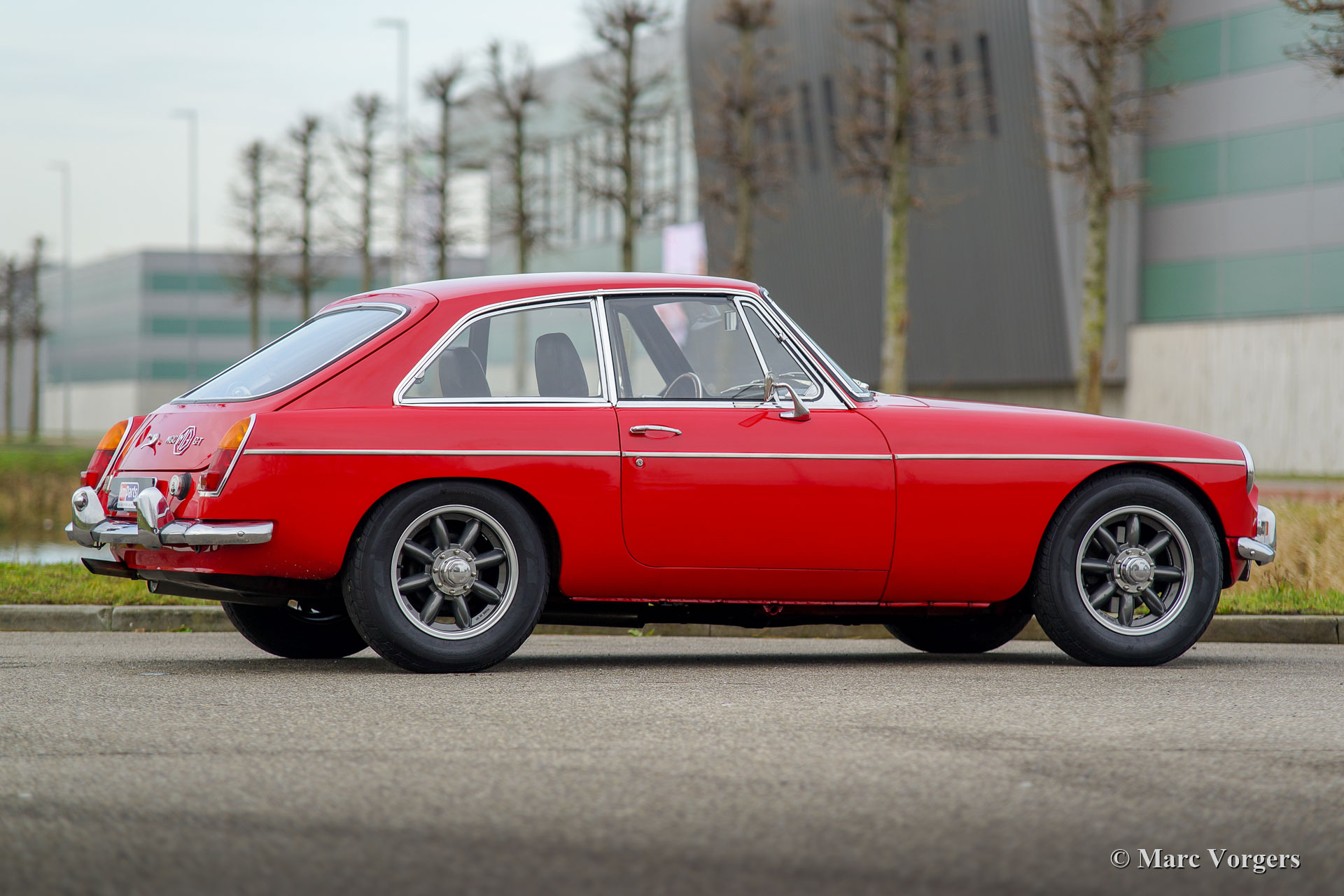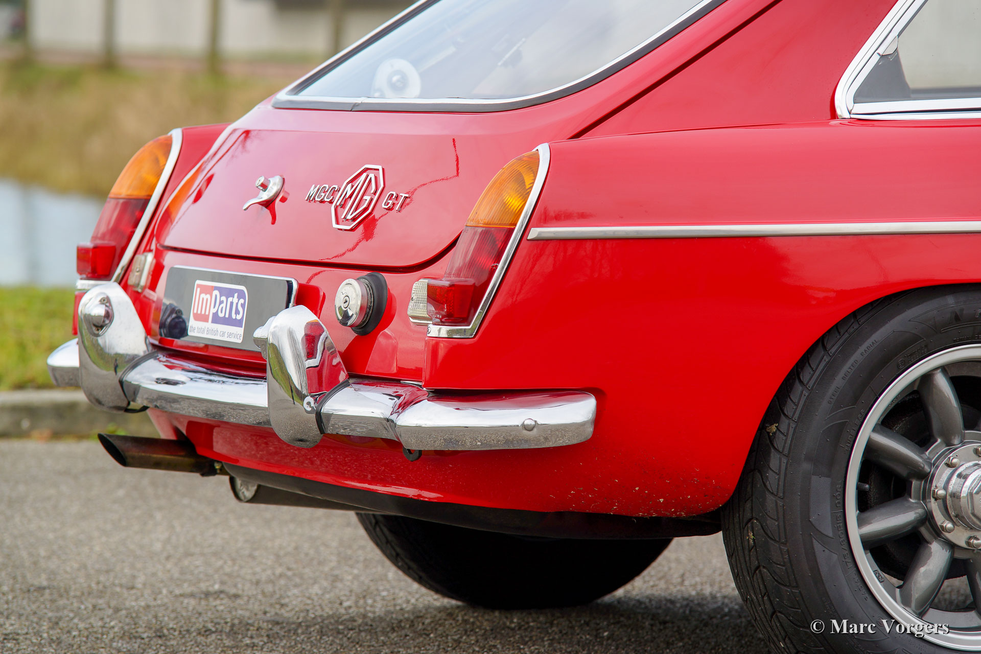 De MGC was built between 1967 and 1969 and was meant to be the successor of the Austin Healey. The MGC bodywork is identical to the MGB. De MGC was powered by a 2912 cc. six-cylinder in-line engine with an output of 145 bhp. The powerful engine made a top speed of 190 km/h (118 mph) possible. To cope with the weight of thee six-cylinder in stead of the four cylinder the MGC was equipped with a stronger torsion bar- suspension in front. 4542 MGC cars were built of which about 50% featured GT bodywork.