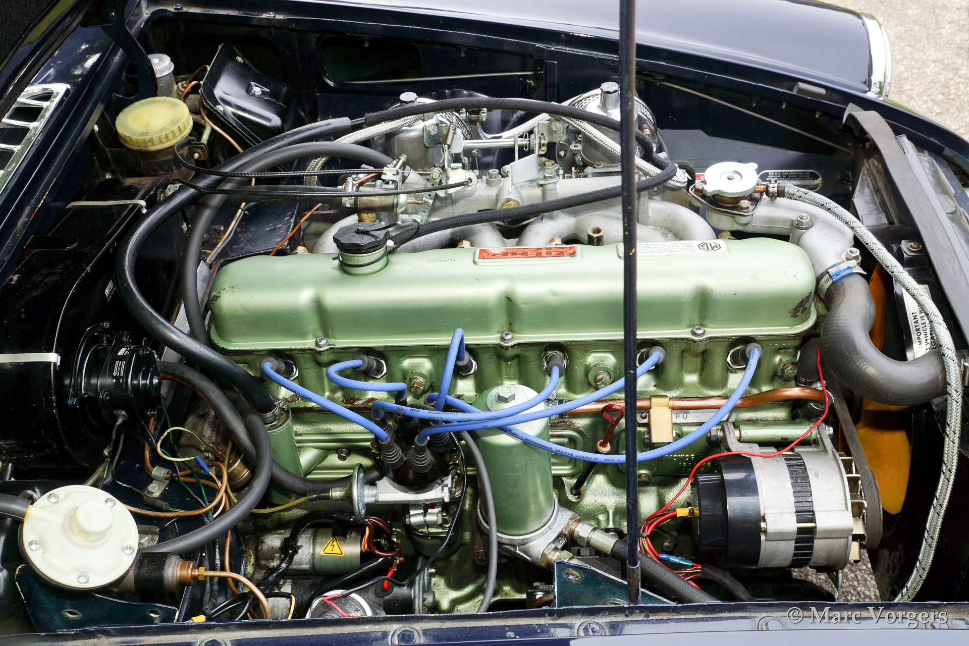 MG MGC roadster, year 1969. Colour dark blue with a black leather interior interior. Black mohair soft top and hood cover. This beautiful MGC was extensively restored in the past. This fine MG MGC features a close-ratio gearbox (original gearbox is present), overdrive and chrome wire wheels.
