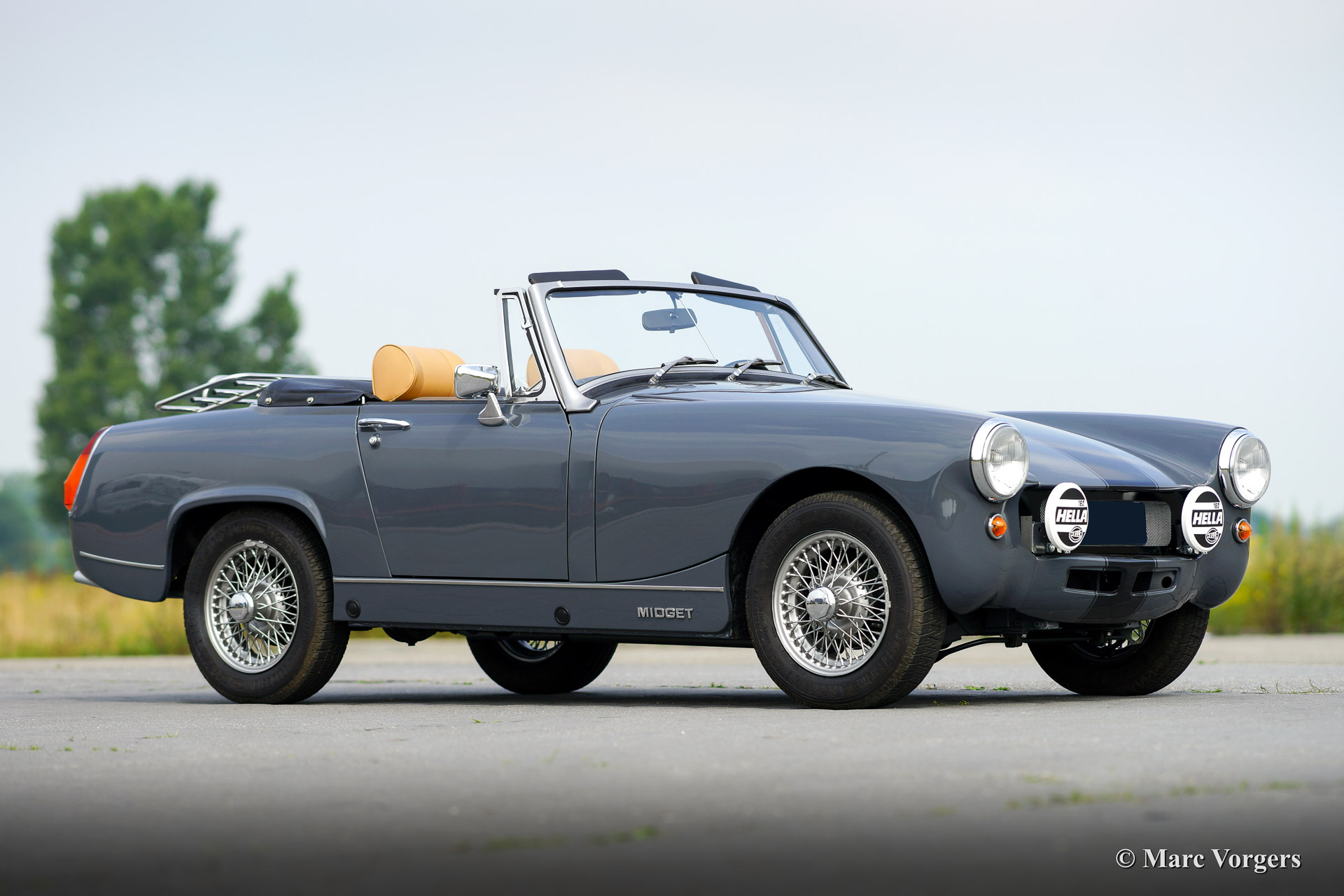 In 1964 the MG Midget MK II was introduced. The MK II was a more "luxurious" little sports car fitted with roll-up windows, door handles and locks (!) and improved semi-elliptic springs at the rear. In 1966 the MK III succeeded the MK II. The Midget became a larger, stronger engine; 1275 cc. and 65 bhp. were available now. Also the soft-top construction improved. The top remained on the car when folded and could be folded down easily now. In 1969 the Midget MK III evaluated again (MK III phase 2); the grille changed and the car was up-rated with slicker bumpers. In the year 1971 the sister model Austin Healey Sprite was taken out of production. In 1972 the MG Midget became round rear wheel arches and a larger petrol tank (MK III phase 3). The final MG Midget version, the MK IV, was built between 1974 and 1979. The MK IV was equipped with a 1493 cc., 66 bhp. engine. Also the car was fitted with thick rubber safety bumpers according to US safety regulations.