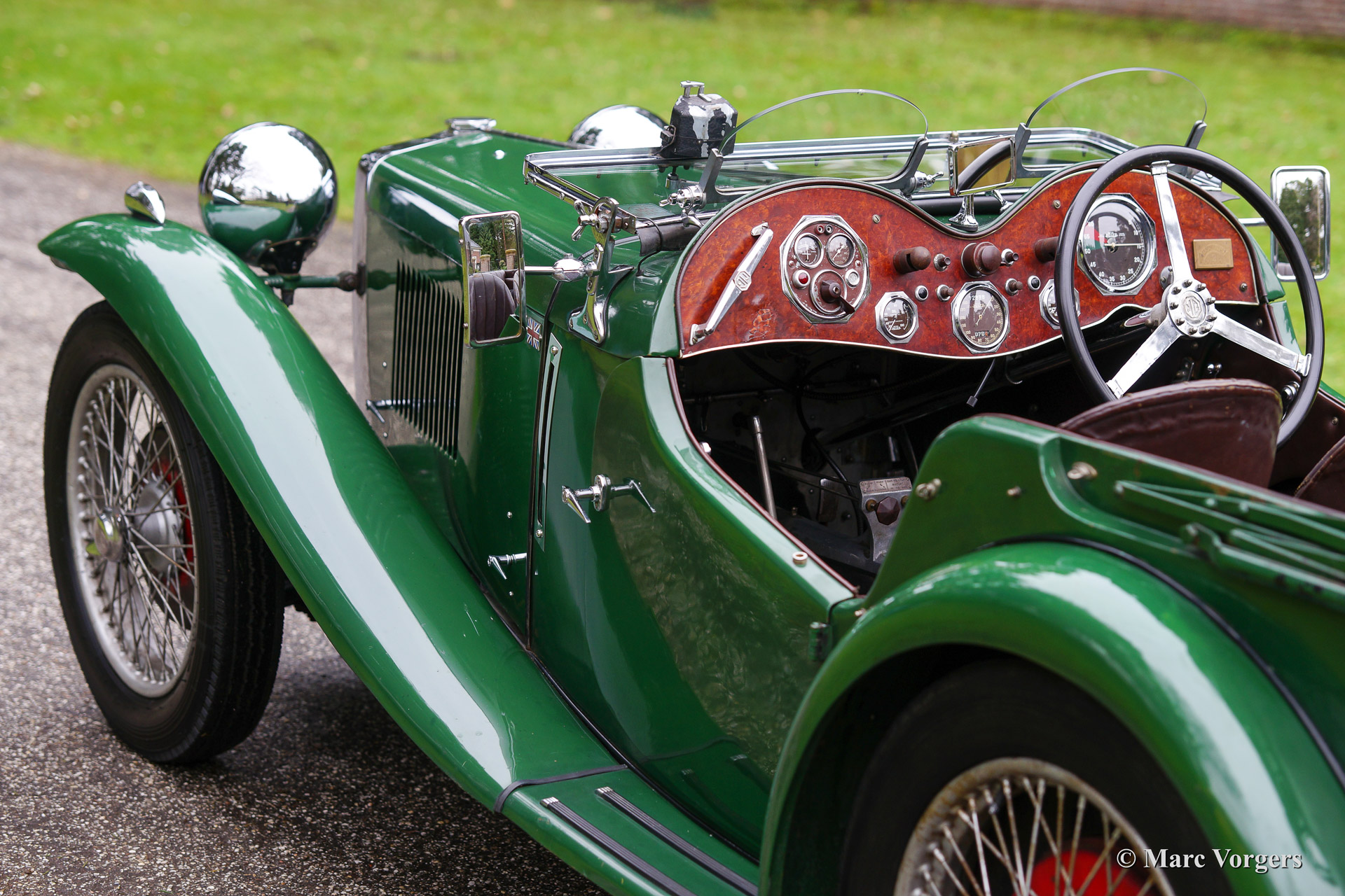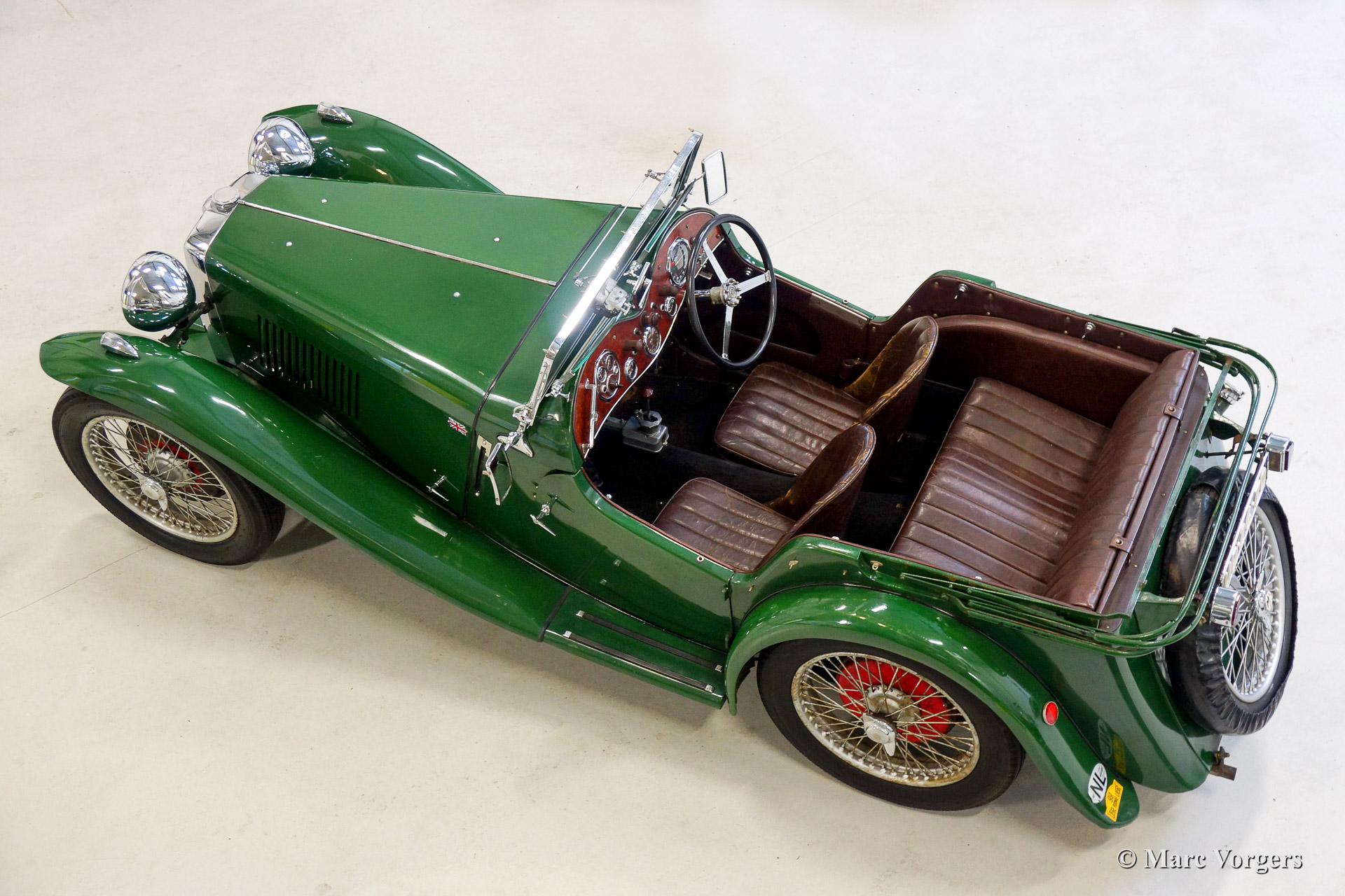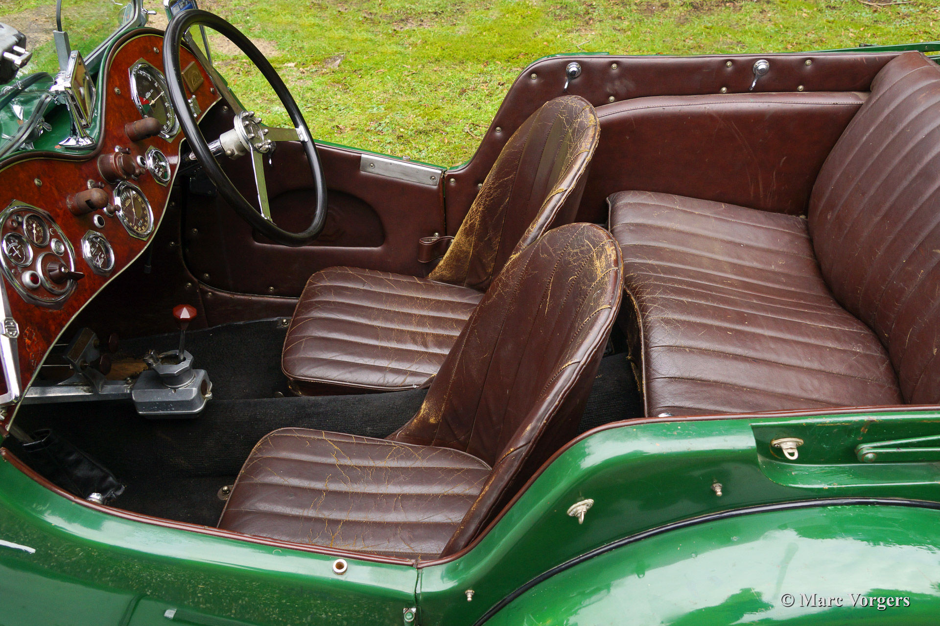 MG PB 'Viersitzer', Jahr 1935. Fahrgestellnummer: PB 06XX, Motornummer 2422 A XXX Farbe Grün mit einer braunen Lederausstattung. Schwarzer Teppich. Silber lackierte Speichen Räder und rot lackierte Trommelbremsen. Dies sehr seltenes MG PB offene Viersitzer wurde neu geliefert in die Niederlanden. Das Automobil wurde teilweise restauriert in die frühe 1970ern. Das in ein Zeitraum von zwei Jahren. Die Restaurierung umfasste die Sanierung und Wiederherstellung von Originalteilen. Die Karosserie wurde auseinandergenommen und neu lackiert mit Zelluloselack, ganz wie original. Nun rund 44 Jahre später ist das Auto noch immer im guten Originalzustand. Eine fantastische Zeit-Maschine mit allen Patina das ein wahrer Enthusiast sich wünschen kann! Nur 526 MG PB wurden gebaut. Etwa ein Drittel der PB Produktion waren offenen Viersitzer (tourer) Modelle. Die PB ist einer der meist gesuchten MG Midgets.