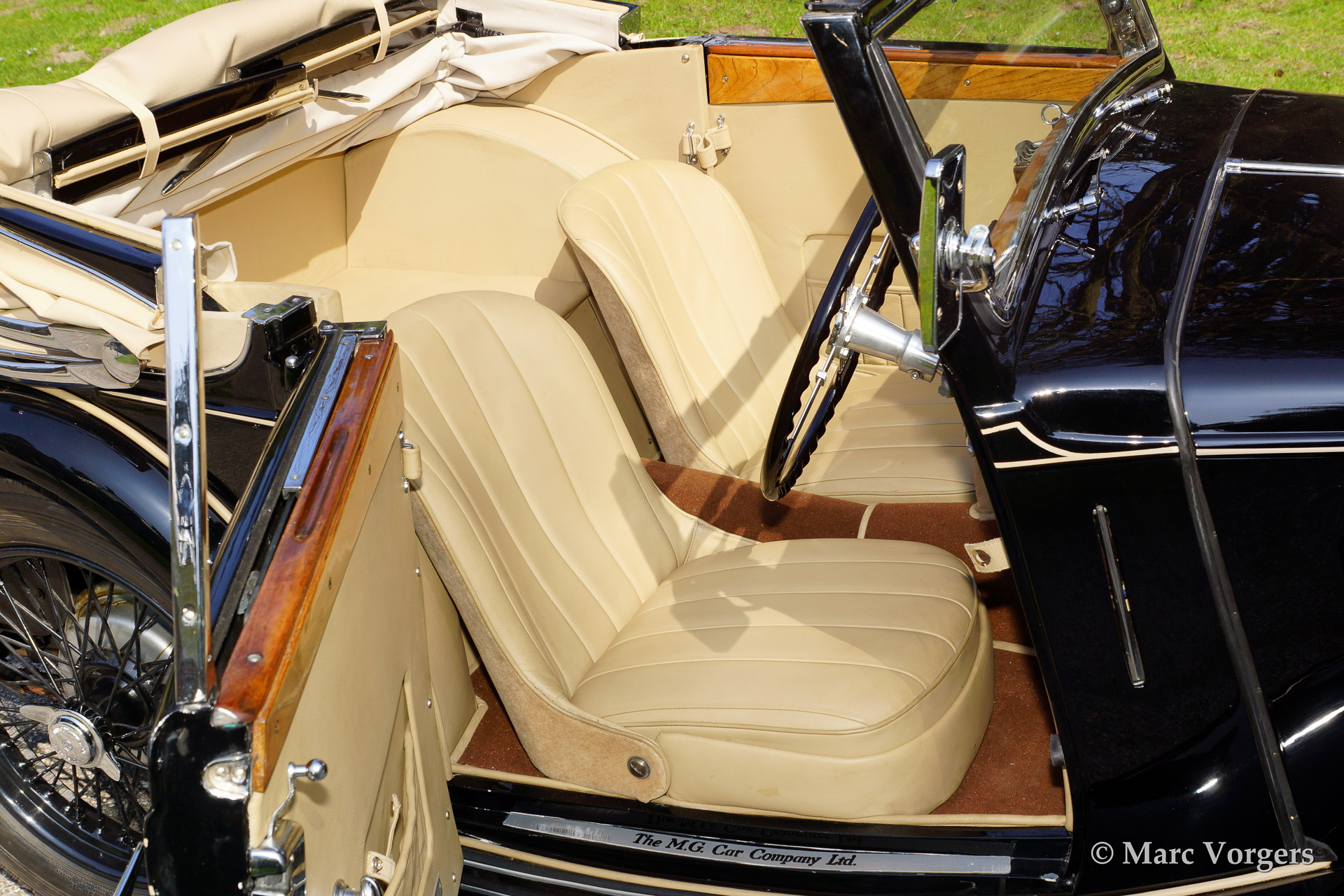 MG TA 'Tickford' Drophead Coupe, year 1938. Colour Black with black enameled wire wheels, beige leather interior and a beige mohair hood. This beautiful MG TA 'Tickford' was sold new in the UK but shortly there after sold to the Netherlands. The engine has been upgraded to an XPAG with number 20003. The originality of the car and all it's numbers have been checked in the register of the 'Tickford' body shop (Salmons in Newport Pagnell). The car is also listed in the TA TB Tickford register. This delightful automobile has been restored to very high standards over the last years, the car is in concours (show) condition. In the Netherland this delightful MG is known as the 'Mollema Tickford' the surname of it's first Dutch owner.