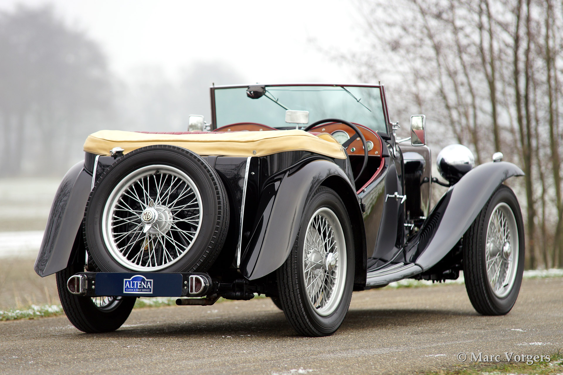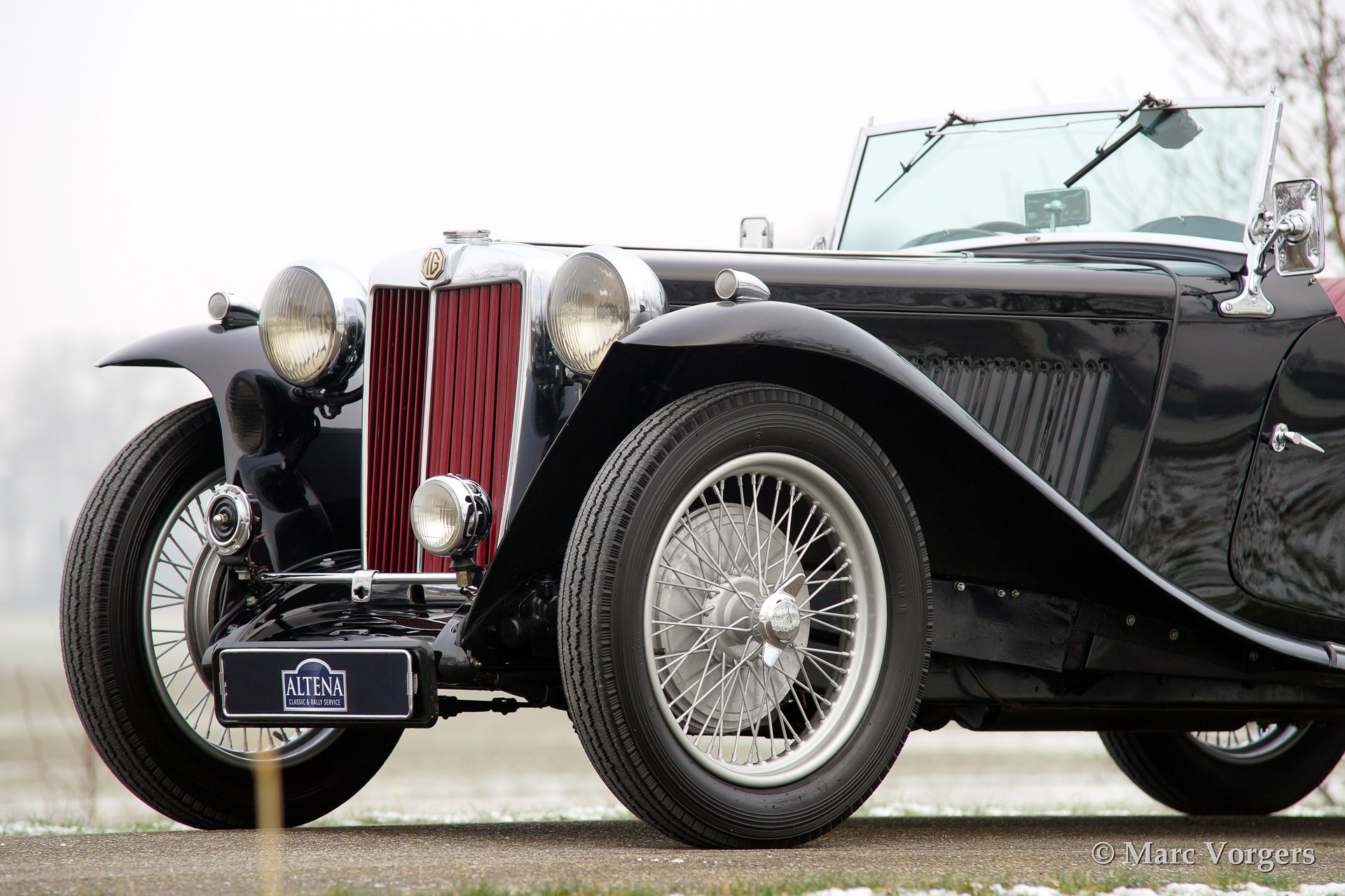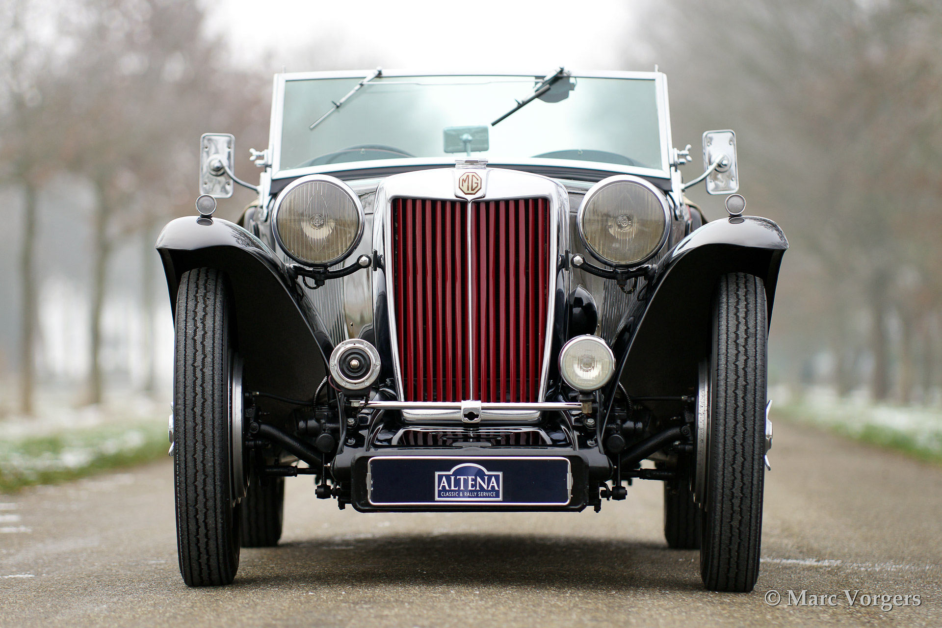 The MG TC was the first new post-war MG. The TC was introduced in 1945, and based on the pre-war TB, it was very similar. A major improvement to the TC was the larger interior, which was increased by 10 cm. The design was similar to the pre-war TB, with swept separate wings, large 19-inch wire wheels and a folding windshield. The MG TB/TC series were much admired by the American soldiers who were on the point of returning to America; this type of small sports car with its smooth handling, was not yet known in America. As a result, many TBs and TCs were shipped to America, and also the MG TC was in great demand at the other side of the pond. All TCs had right-hand steering, leaf springs all around and a 54 bhp four-cylinder engine. In 1950, the MG TC was succeeded by the MG TD.