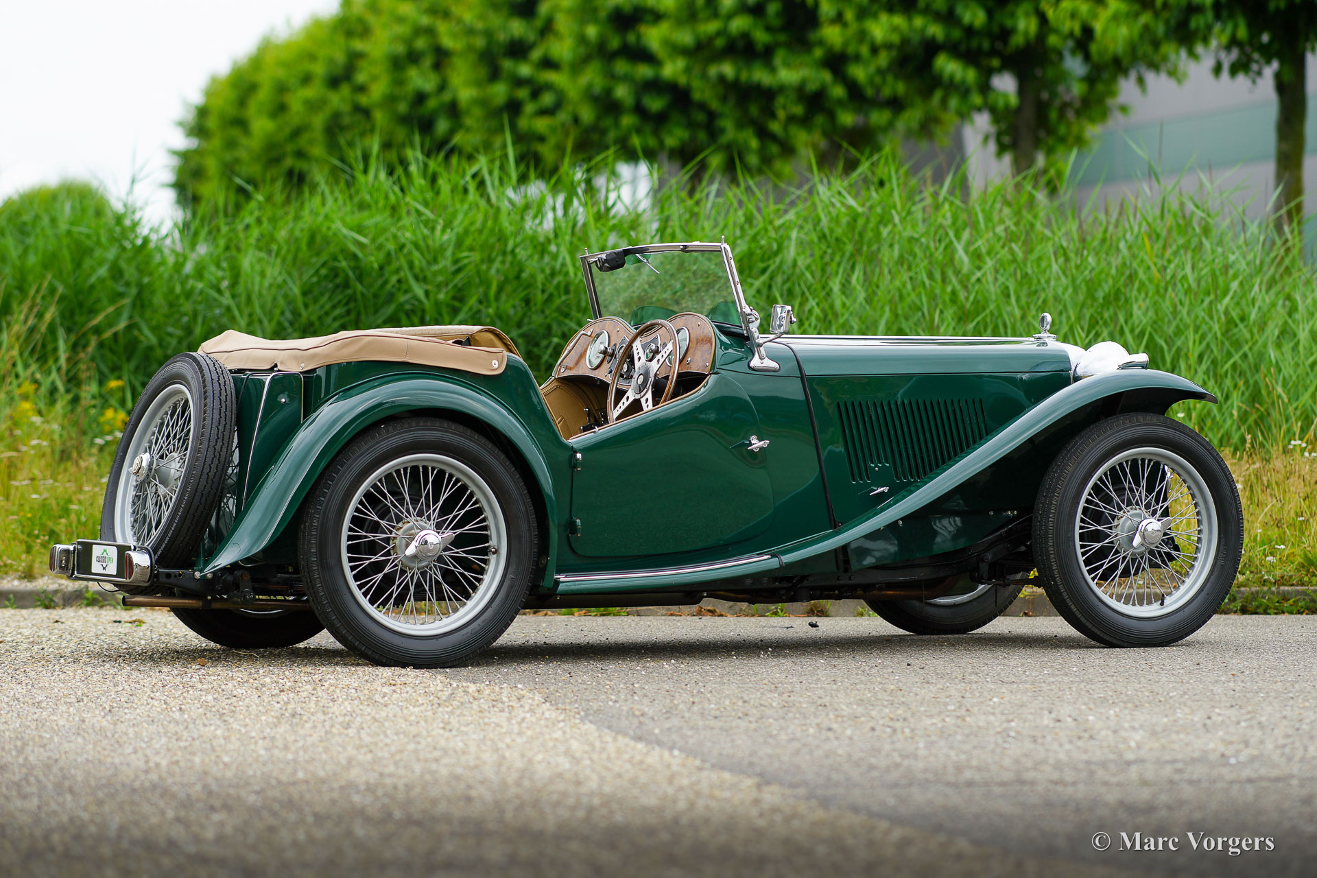 The MG TC was the first new post-war MG. The TC was introduced in 1945, and based on the pre-war TB, it was very similar. A major improvement to the TC was the larger interior, which was increased by 10 cm. The design was similar to the pre-war TB, with swept separate wings, large 19-inch wire wheels and a folding windshield. The MG TB/TC series were much admired by the American soldiers who were on the point of returning to America; this type of small sports car with its smooth handling, was not yet known in America. As a result, many TBs and TCs were shipped to America, and also the MG TC was in great demand at the other side of the pond. All TCs had right-hand steering, leaf springs all around and a 54 bhp four-cylinder engine. In 1950, the MG TC was succeeded by the MG TD.