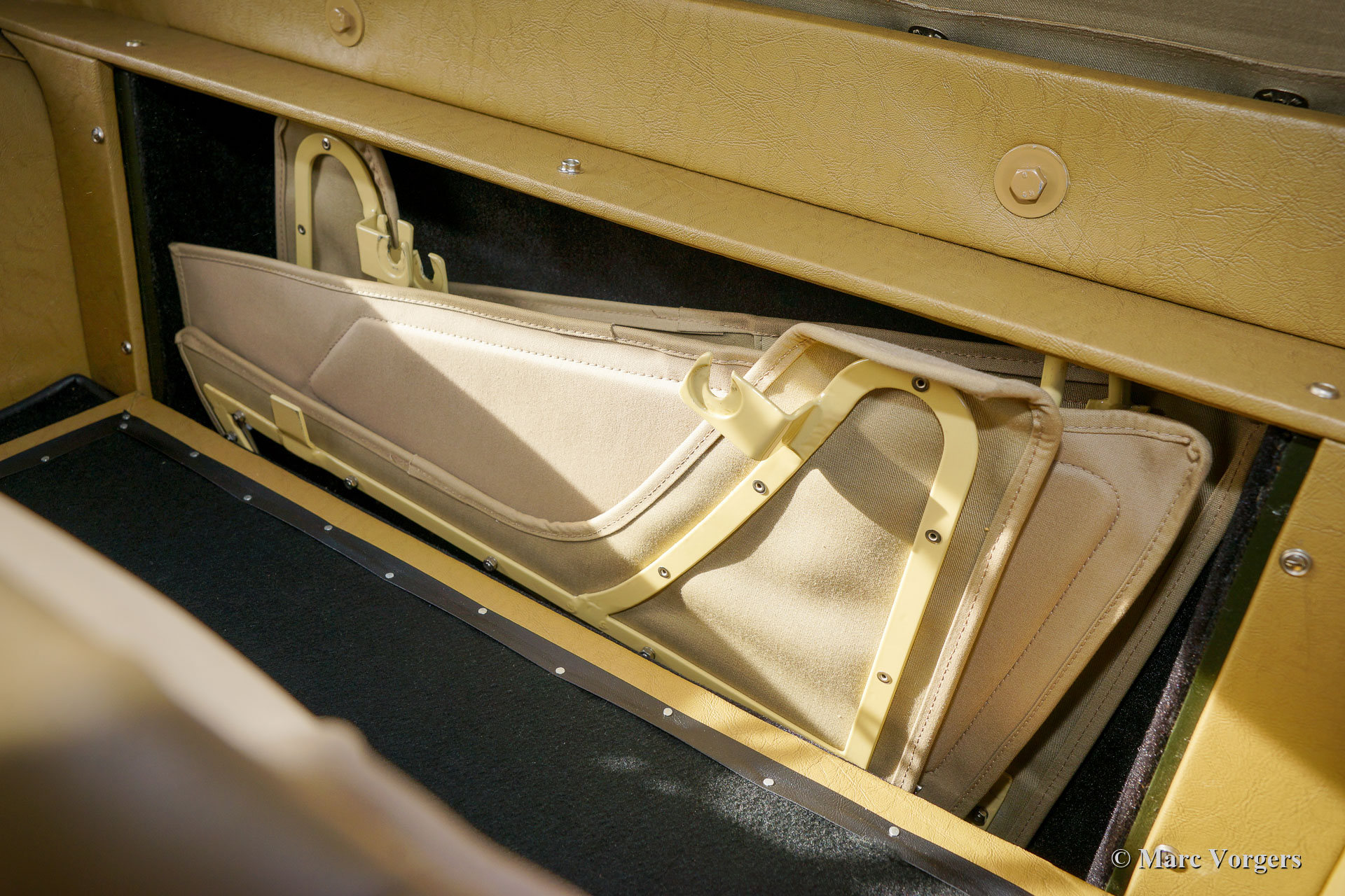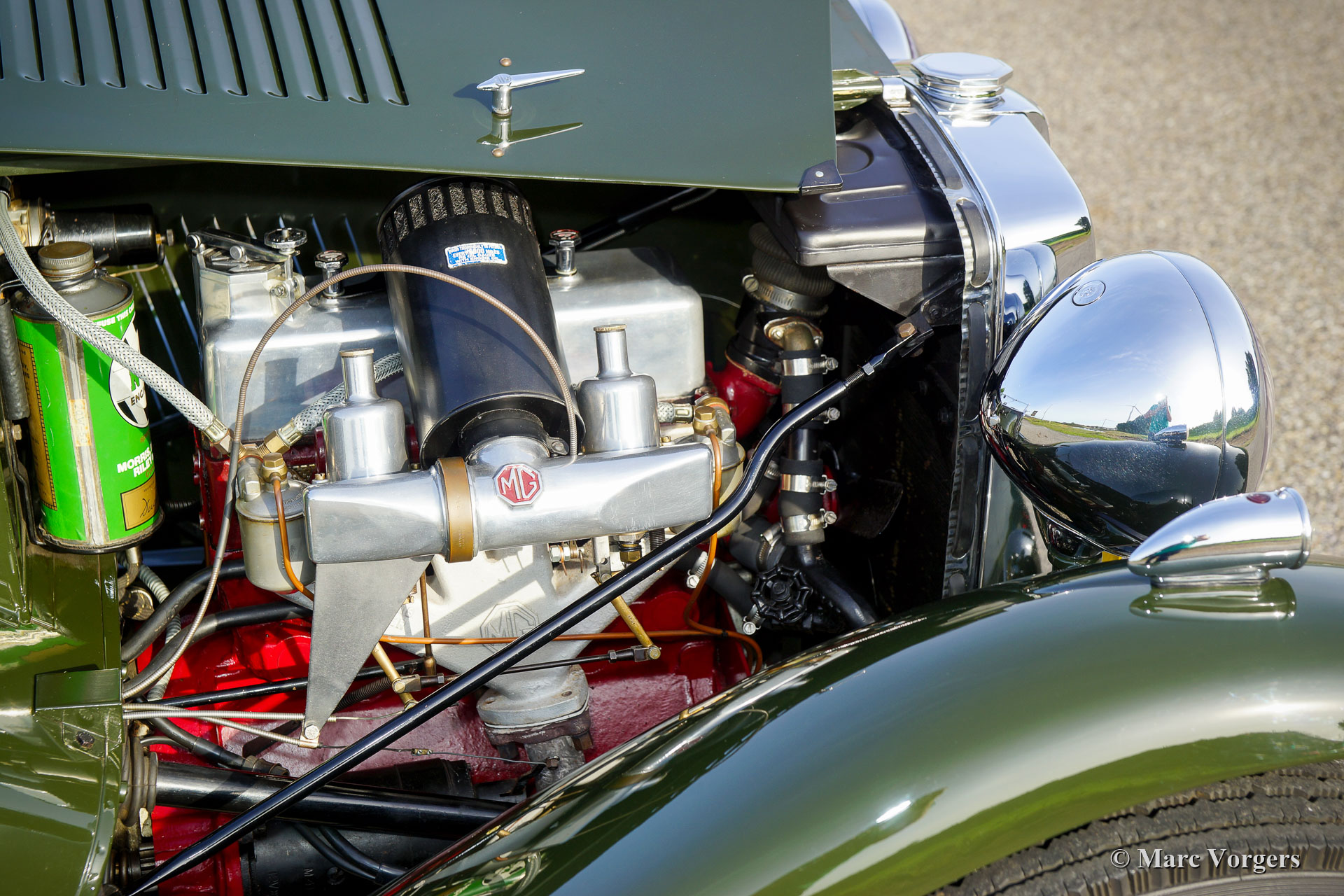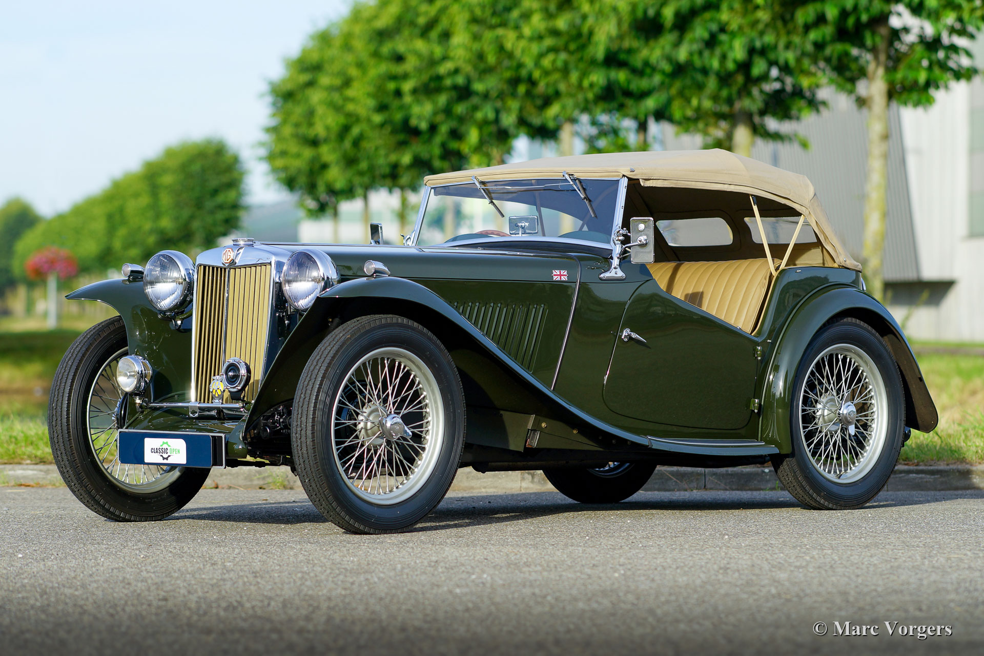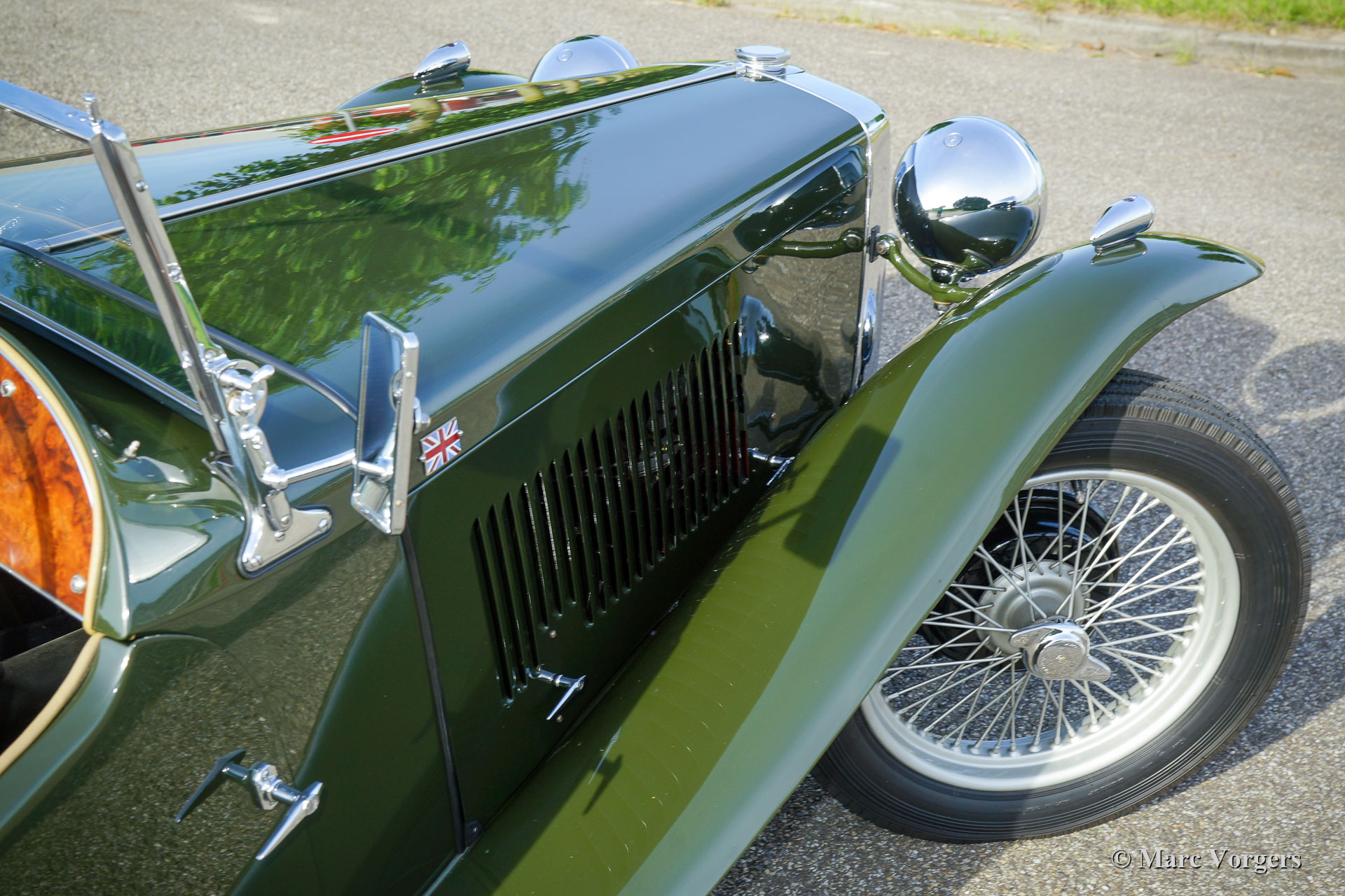 MG TC, Jahr 1948. Matching Numbers Auto. Farbe Grün kombiniert mit beiger Lederausstattung und schwarzem Teppich. Beige Mohairverdeck und beige Seitenfenster-Rahmen. Dieser wunderschöne MG TC wurde am 23. September 1948 gebaut und neu nach Long Beach, Los Angeles, Kalifornien, USA, verkauft. 1979 wurde das Auto von Don Frahm Inc. restauriert, im selben Jahr gewann der MG TC den Long Beach QE2 Concours. 1988 wurde die MG TC vom jetzigen Besitzer gekauft und in die Niederlande verschifft. In den 1990er Jahren begann eine vollständige Restaurierung und Überholung, die mehrere Jahre in Anspruch nahm. Diese Restaurierung wurde bis zur Perfektion ausgeführt. Dabei wurde der Motor mit einer neuen Phoenix-Kurbelwelle, einer Crane „Fast Road“-Nockenwelle, größeren Ventilen, gehärteten Ventilsitzen, einem modernen „Spin-On“-Ölfilter und einer elektronischen Zündung ausgestattet. Ein Fotobericht der Restaurierung ist vorhanden. Dieser MG TC ist in einem hervorragenden TOP zustand! Die Zündspule und der Spannungsregler sind nach 73 Jahren noch original und die original Lucas SFT 462 Nebellampe ist noch vorhanden. Dieser MG TC ist mit folgenden Optionen ausgestattet: Ein unsichtbar montierter Massenschalter, verstärkte Steckachsen, eine Heizung mit wunderbar versteckten Schläuchen, ein gläserner Bremsflüssigkeitsbehälter im Werkzeugkasten unter der Motorhaube, zusätzliche Wassertemperaturanzeige am Armaturenbrett, verbesserte Lenkung (leichtere und präzisere Lenkung!), spezielle und seltene US-Modell-Heckblinkleuchten und ein originales Bluemels Brooklands-Lenkrad. Dies ist ein atemberaubender MG TC in Ausstellungszustand!