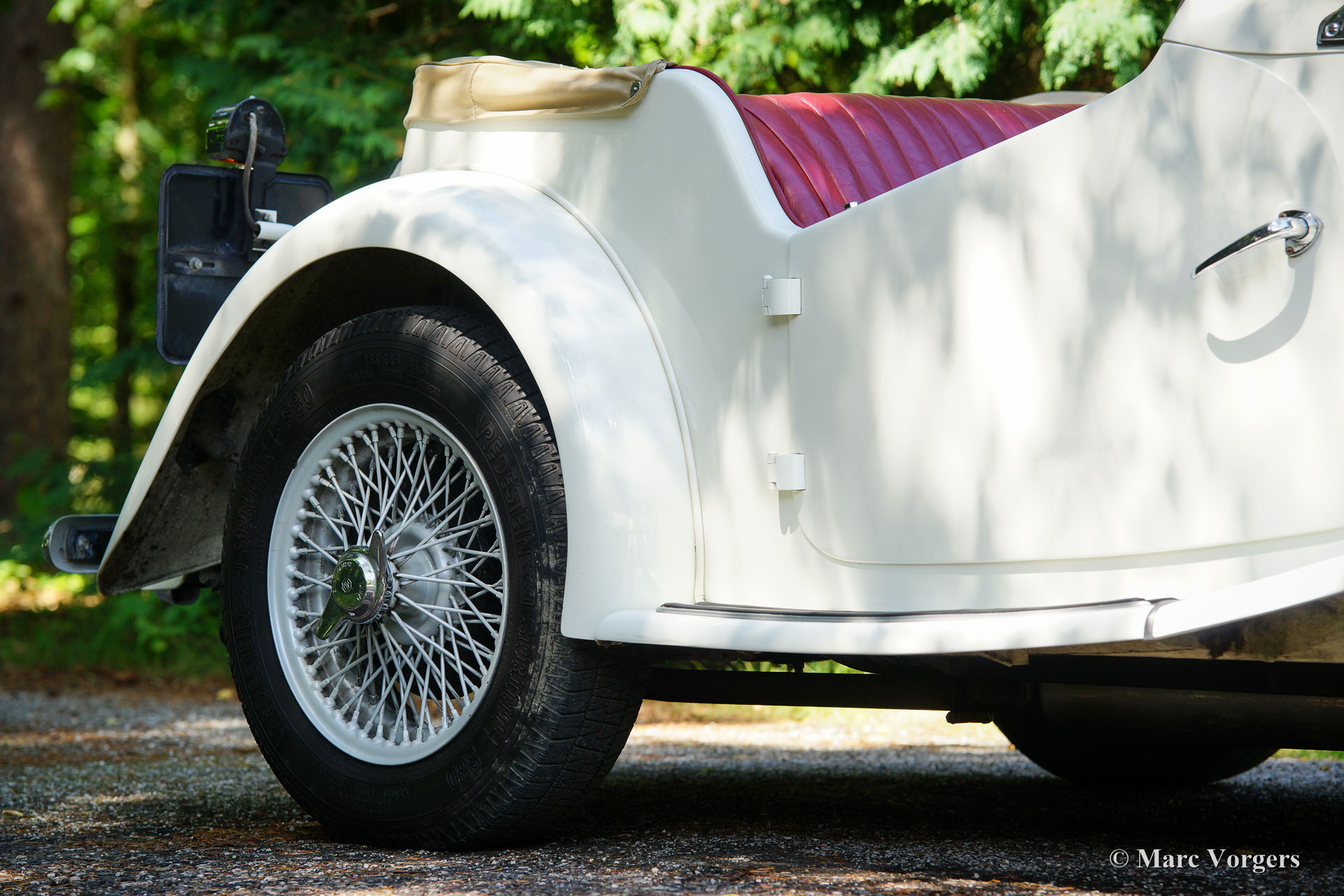 The MG TD was the successor of the MG TC, the British sports car that stole the hearts of the American soldiers returning to their country. Like the MG TC, America was the most important market for the TD. Chassis and body of the TD were largely similar to the TC. But the TD had a rack and pinion steering-gear, coil springs (instead of the leaf springs) and an independent wheel suspension in the front. The wings were different in form, as the large 19-inch wire wheels in the TD gave way to 15-inch wheels. A Mk II version was introduced in 1950, and was built simultaneously with the Mk I. The Mk II had a more powerful engine and a "power bulge" on the engine valve on the right. The MG TD was in production until 1953 and was replaced by the MG TF.