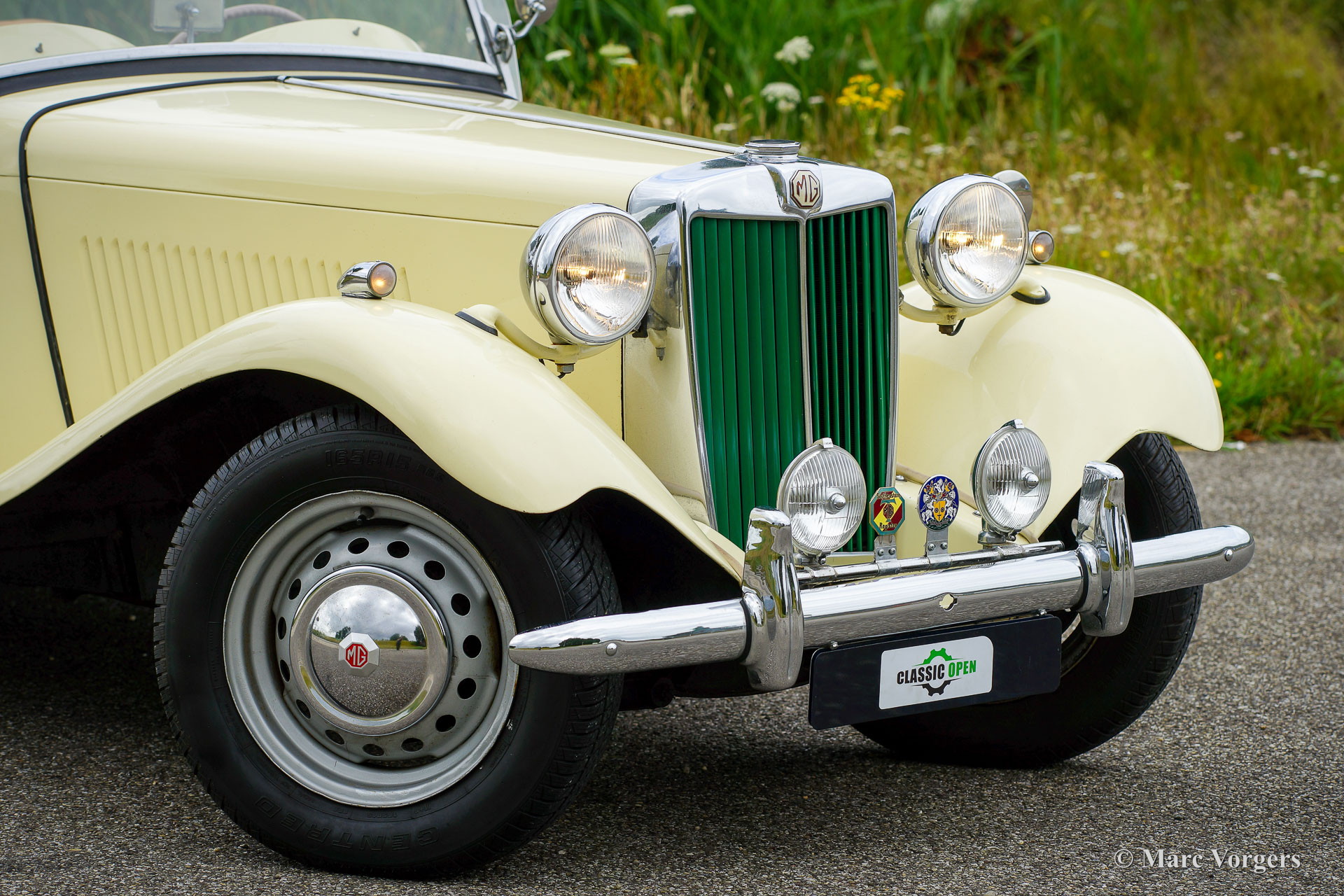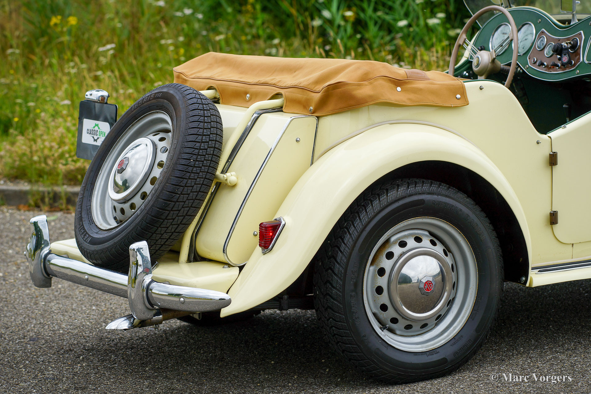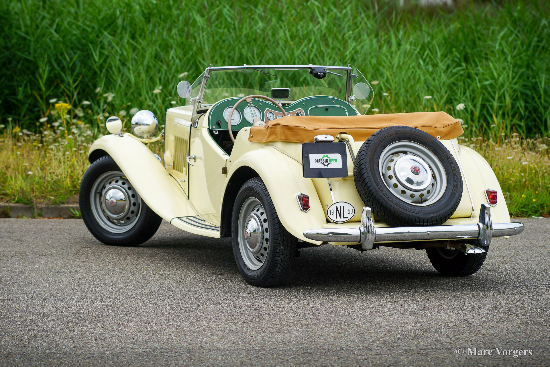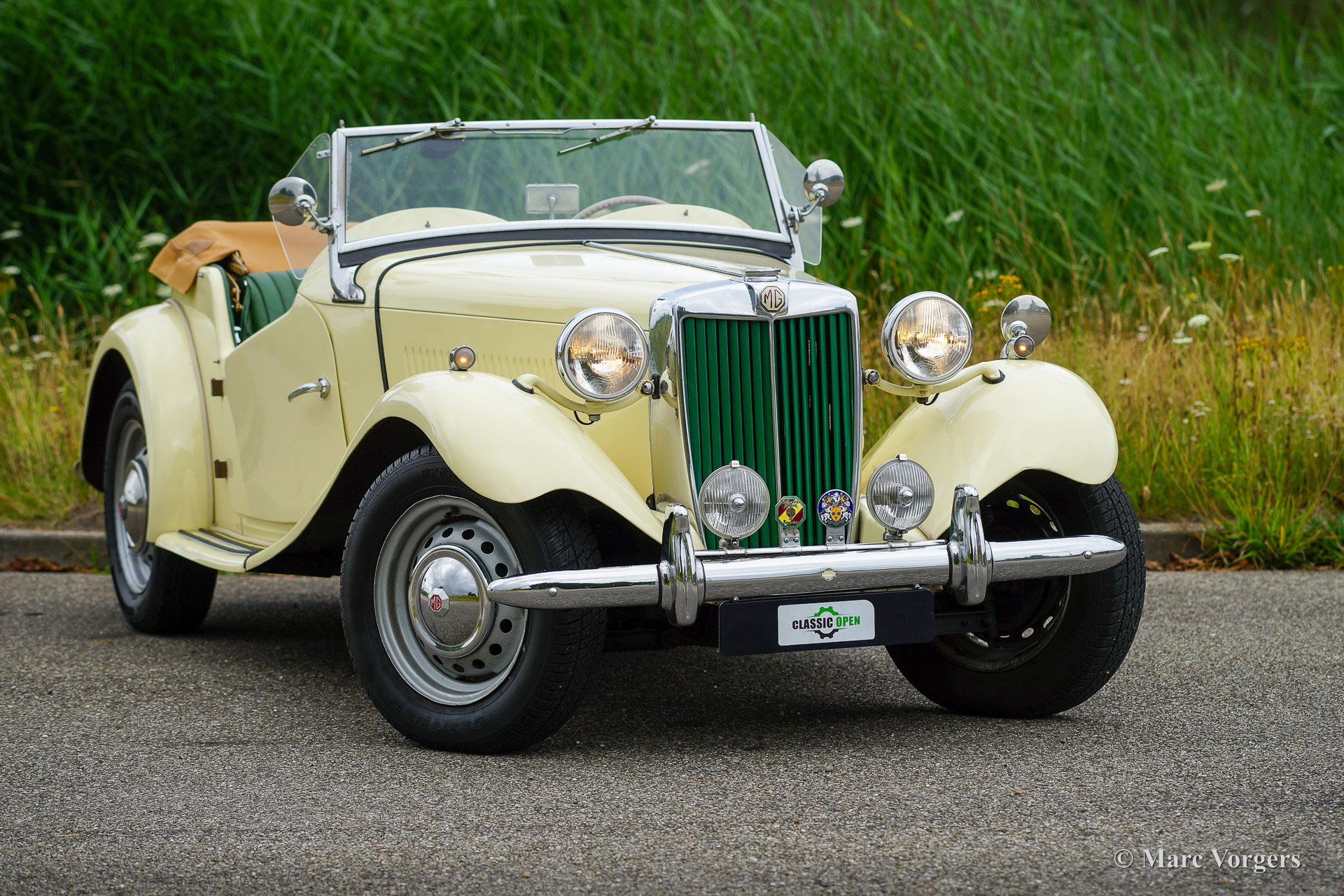 MG TD, Jahr 1950. Farbe ‚Primrose‘ gelb kombiniert mit einer apfelgrünen Lederausstattung und schwarzem Teppich. Verdeck und Seitenfenster Rahmen in hellbeige, Verdeck Abdeckung in beige. Dieser schöne MG TD ist in einem guten Fahrerzustand und das Auto zeigt alle Originaldetails. Dieser MG TD ist ein fantastisches Auto, das man an schönen Sommertagen genießen kann, das Fahrgefühl ist wunderbar.
