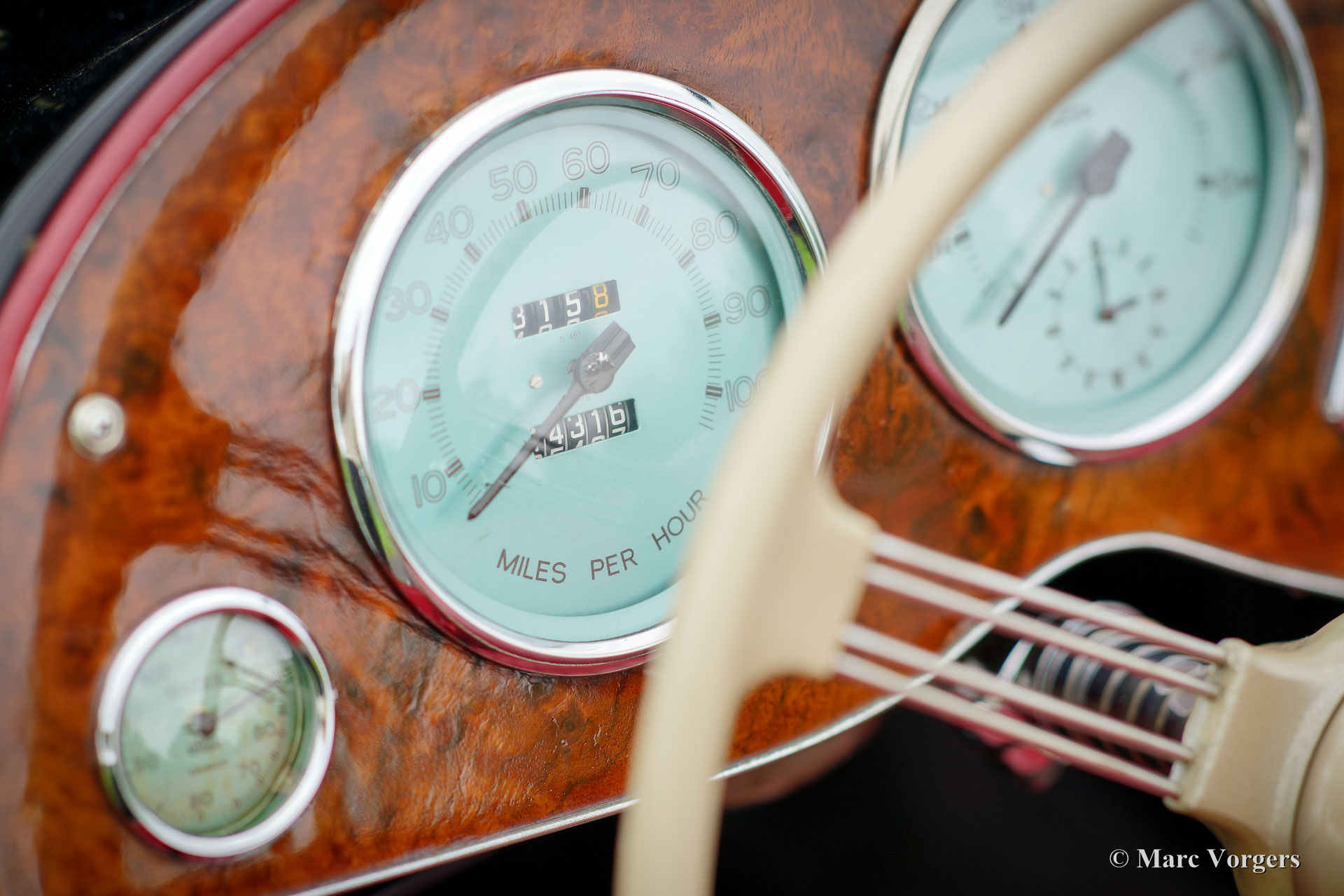 The MG TD was the successor of the MG TC, the British sports car that stole the hearts of the American soldiers returning to their country. Like the MG TC, America was the most important market for the TD. Chassis and body of the TD were largely similar to the TC. But the TD had a rack and pinion steering-gear, coil springs (instead of the leaf springs) and an independent wheel suspension in the front. The wings were different in form, as the large 19-inch wire wheels in the TD gave way to 15-inch wheels. A Mk II version was introduced in 1950, and was built simultaneously with the Mk I. The Mk II had a more powerful engine and a "power bulge" on the engine valve on the right. The MG TD was in production until 1953 and was replaced by the MG TF.