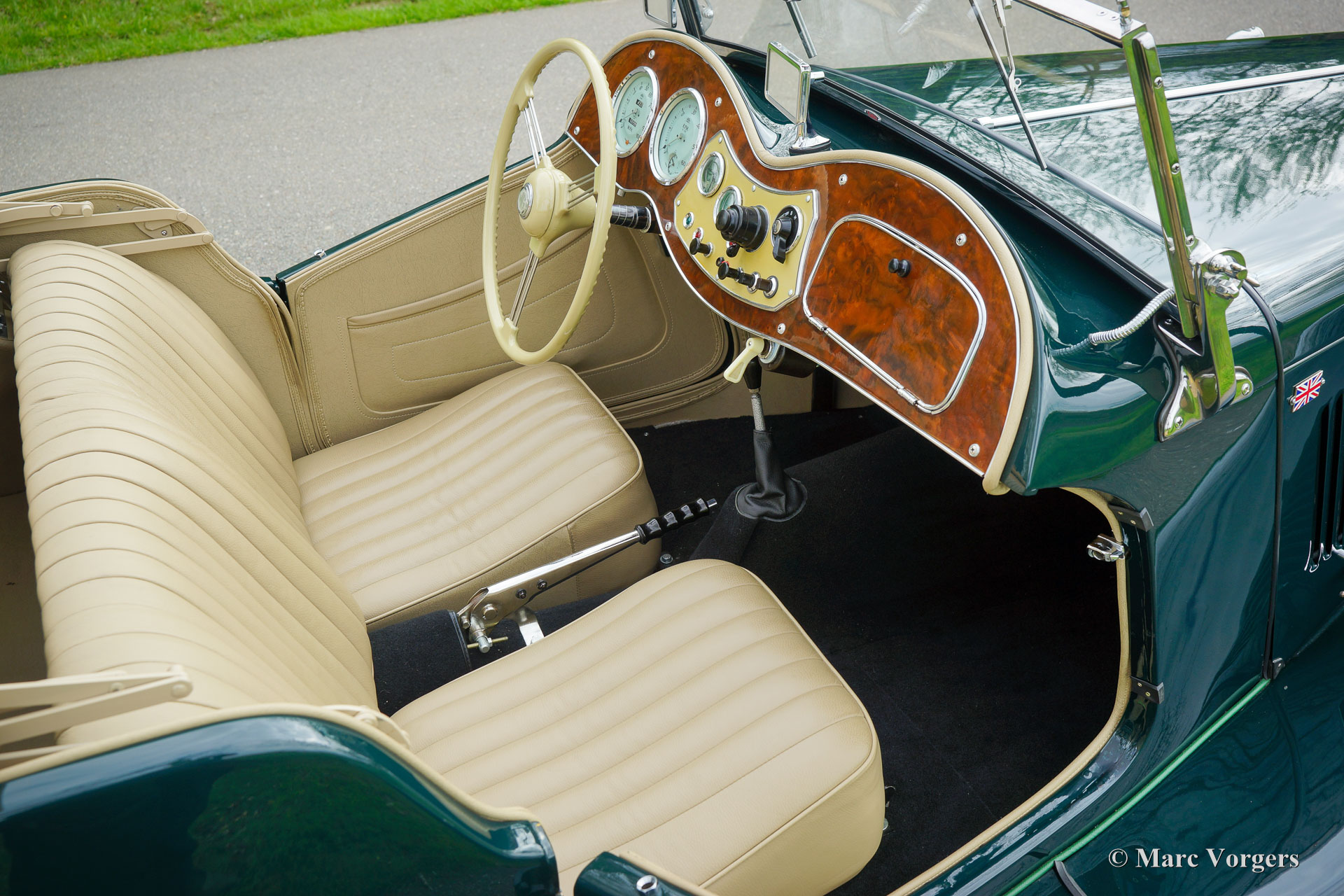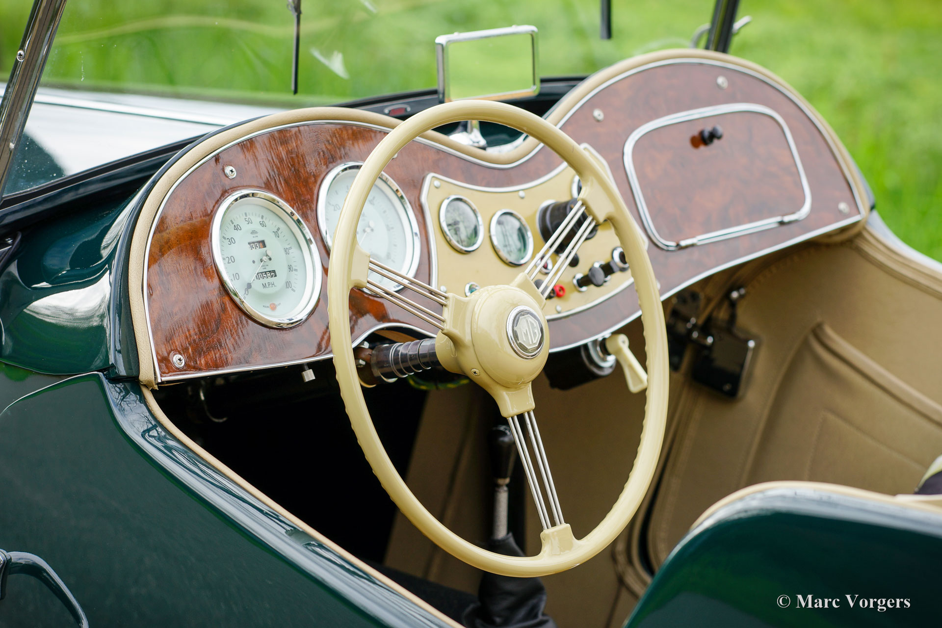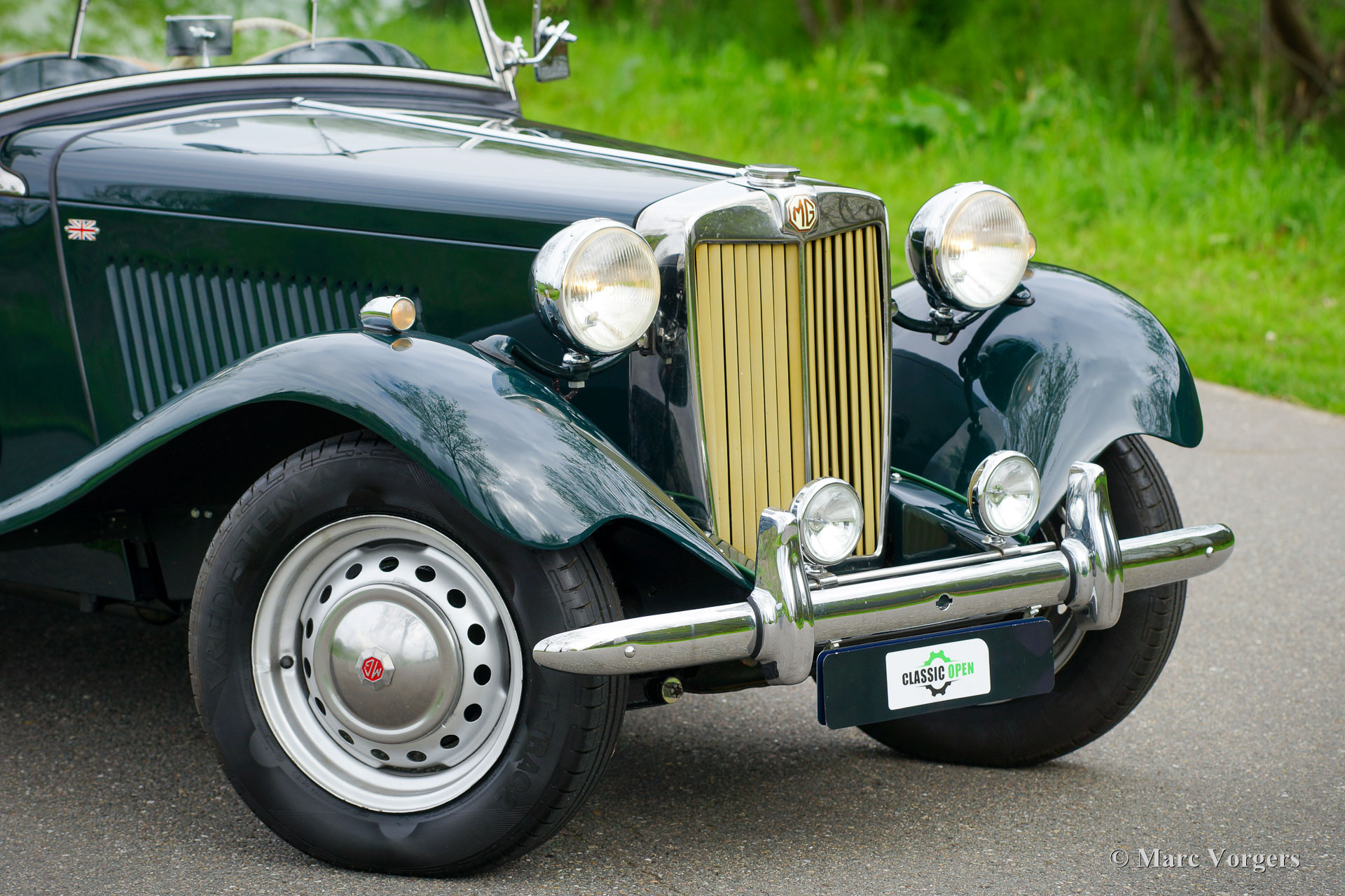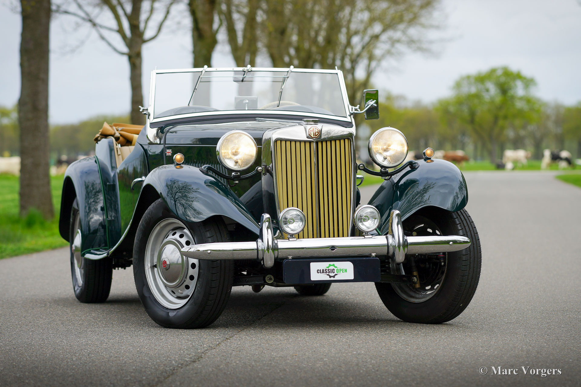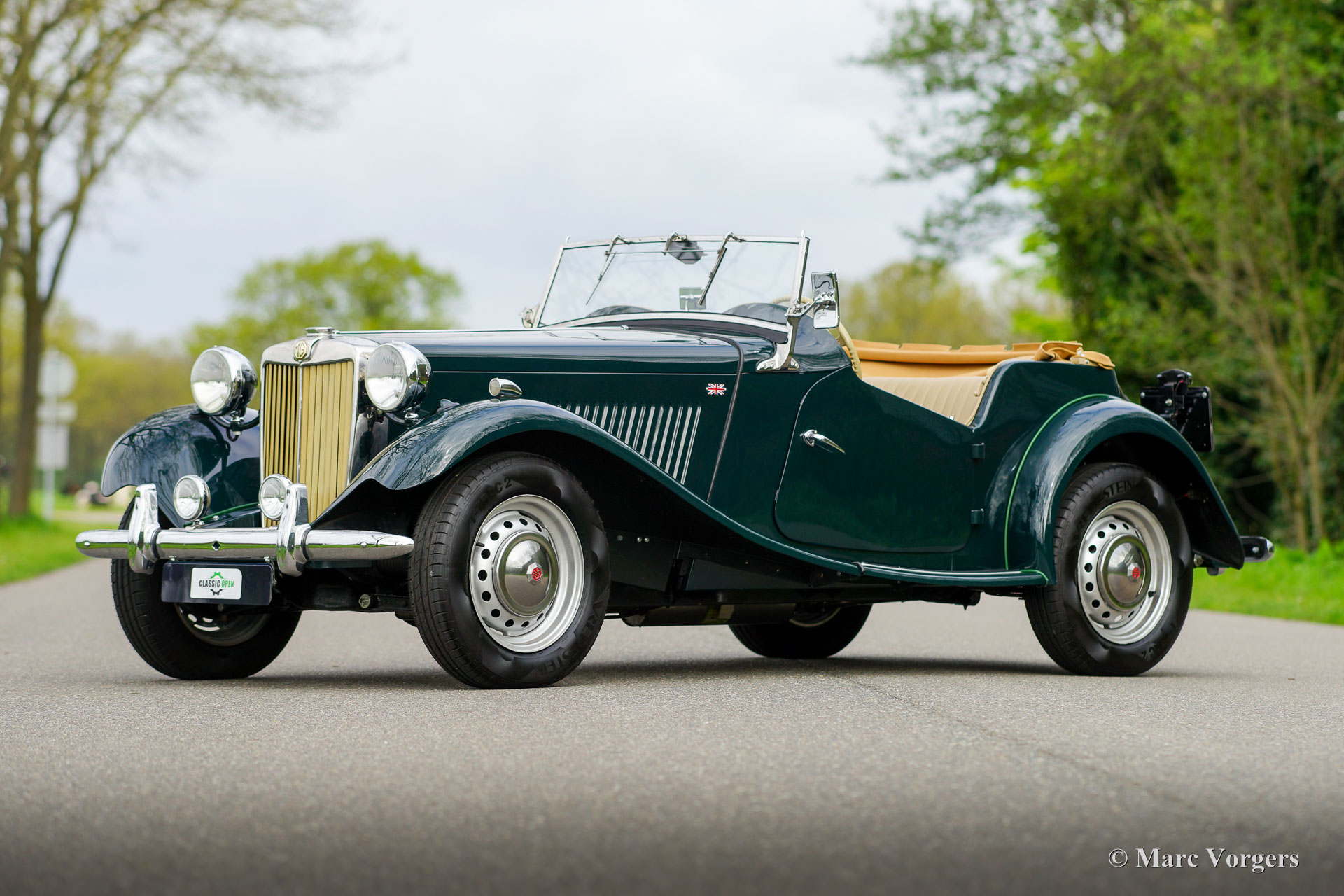 MG TD, Jahr 1953. Farbe Dunkelgrün kombiniert mit einer beigen Lederausstattung, schwarzem Teppich und einem hellbraunen Verdeck. Dieser wunderschöne MG TD wurde in den USA neu verkauft. Das Auto wurde um fünf Jahre her in die Niederlande importiert und dann umfassend in Top-Zustand restauriert! Dabei wurden viele Teile originalgetreu erneuert. Das Auto wurde 2020 in den Niederlanden erstmals für den Straßenverkehr zugelassen. Seit Abschluss der Restaurierung ist das Auto nur etwa 100 Kilometer gefahren. Dieser fantastische MG TD muss noch ordentlich eingefahren werden! Die Lackierung ist hervorragend, die Chromteile sind wunderbar und die Innenausstattung ist perfekt detailliert. Dieser MG TD ist in einem Top-Zustand, besser als neu, und das Auto fährt perfekt. Der MG TD ist ein durch und durch klassischer britischen Sportwagen, der ein echtes offenes Vintage-Fahrerlebnis und wunderbare Designdetails bietet. Das Auto zeigt alle Originaldetails wie das Nussbaum-Armaturenbrett, das beigefarbene Lenkrad und die Stahlräder mit Chrom-Nabenkappen. Dieser MG TD ist ausgestattet mit Vredestein-Reifen, zusätzlichen Scheinwerfern an der vorderen Stoßstange, einem Edelstahlauspuff und einer Aluminium-Ventildeckel. Dieser wunderbare MG TD ist ein toller Fund in Top-Zustand für den MG-Enthusiasten.