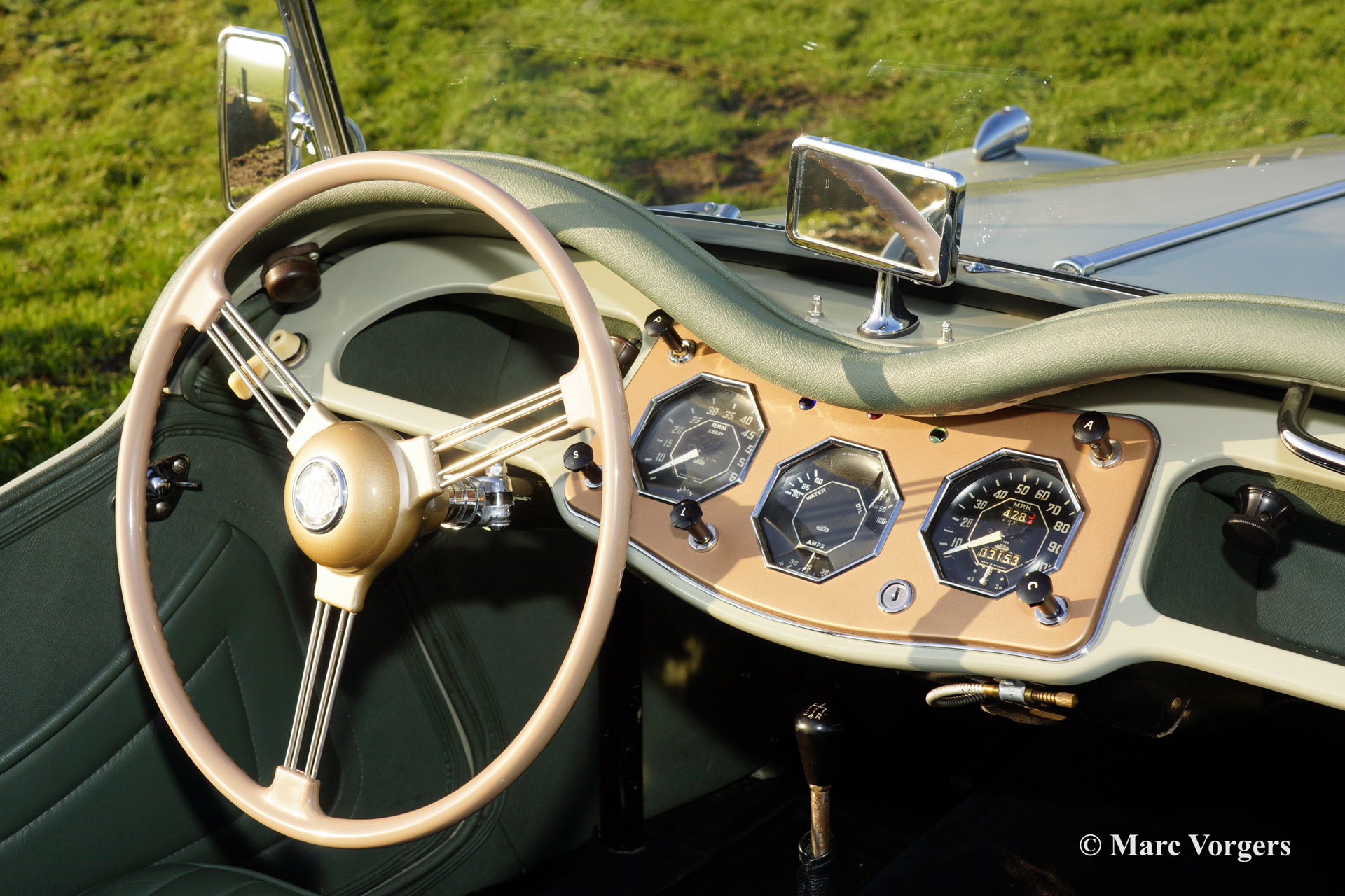 MG TF 1250, year 1954. Colour Birch Grey with a green leather interior. Black canvas soft top and side screens. Black canvas tonneau cover. Original factory colours and specifications!