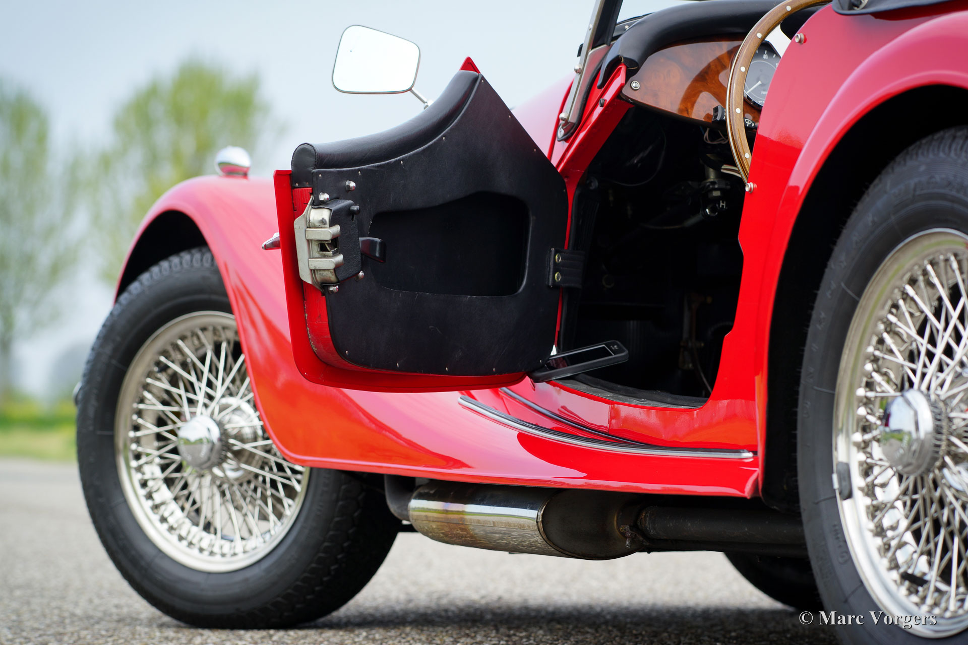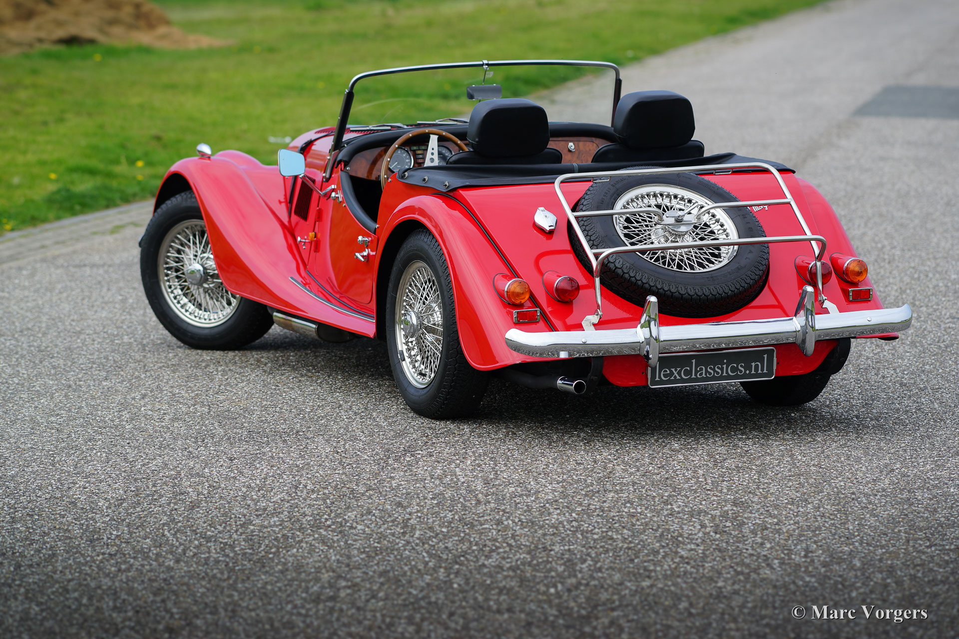 Morgan 4/4 1600, Jahr 1988. Farbe rot mit einem schwarzen Leder Interieur. Dieser wunderbare Morgan wurde in den Niederlanden neu verkauft. Der Morgan ist in einem hervorragenden Originalzustand und das Auto fuhr nur 34.764 km von neuem. Das Auto verfügt über Chrom-Draht-Räder, zwei Tür montierte Rückspiegel, ein Nuss-Armaturenbrett, schwarze Soft-Top, ‘tonneau‘ abdeckung und ein Lederband über die Motorhaube. Dies ist ein Top-Exemplar!