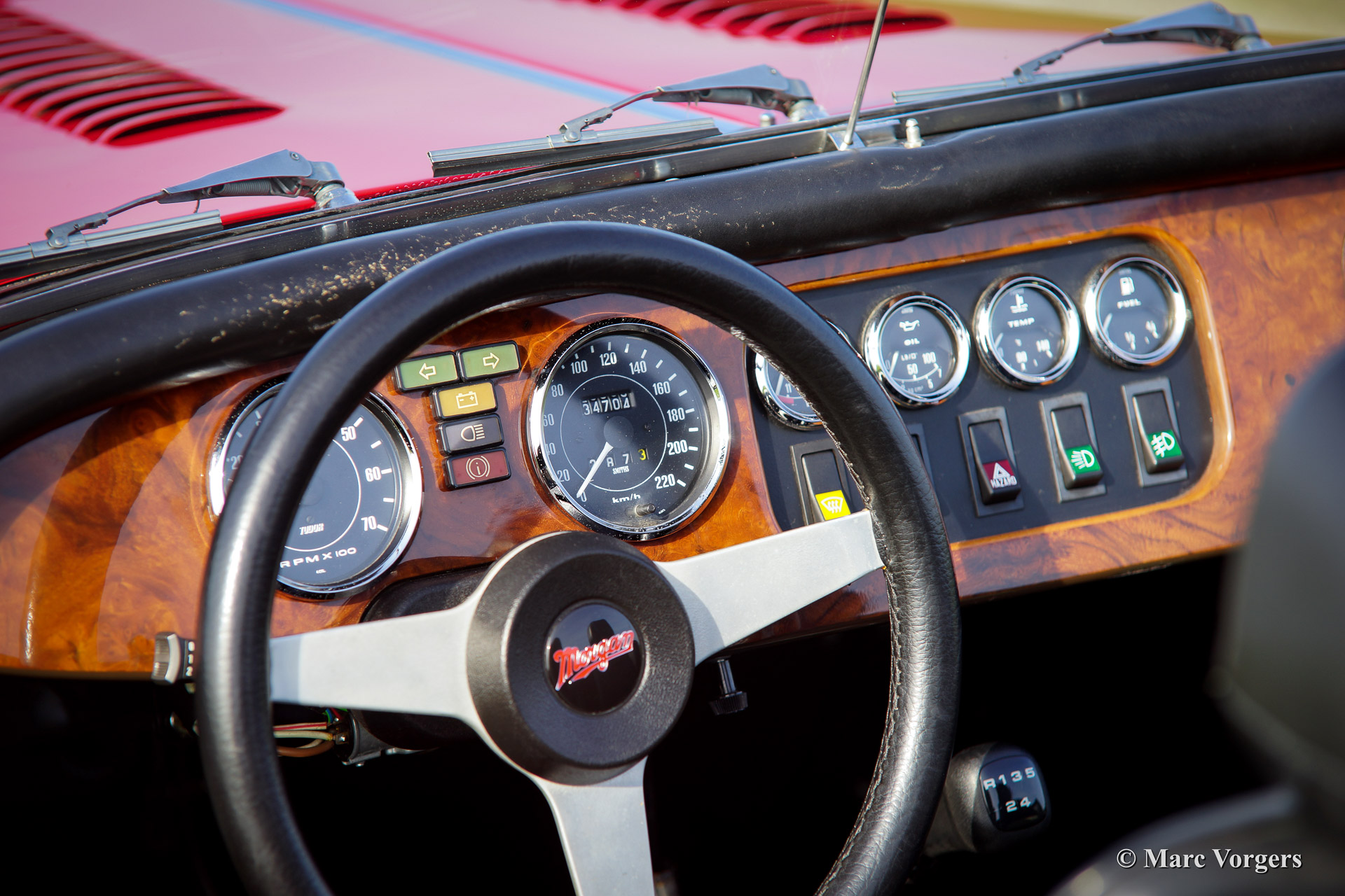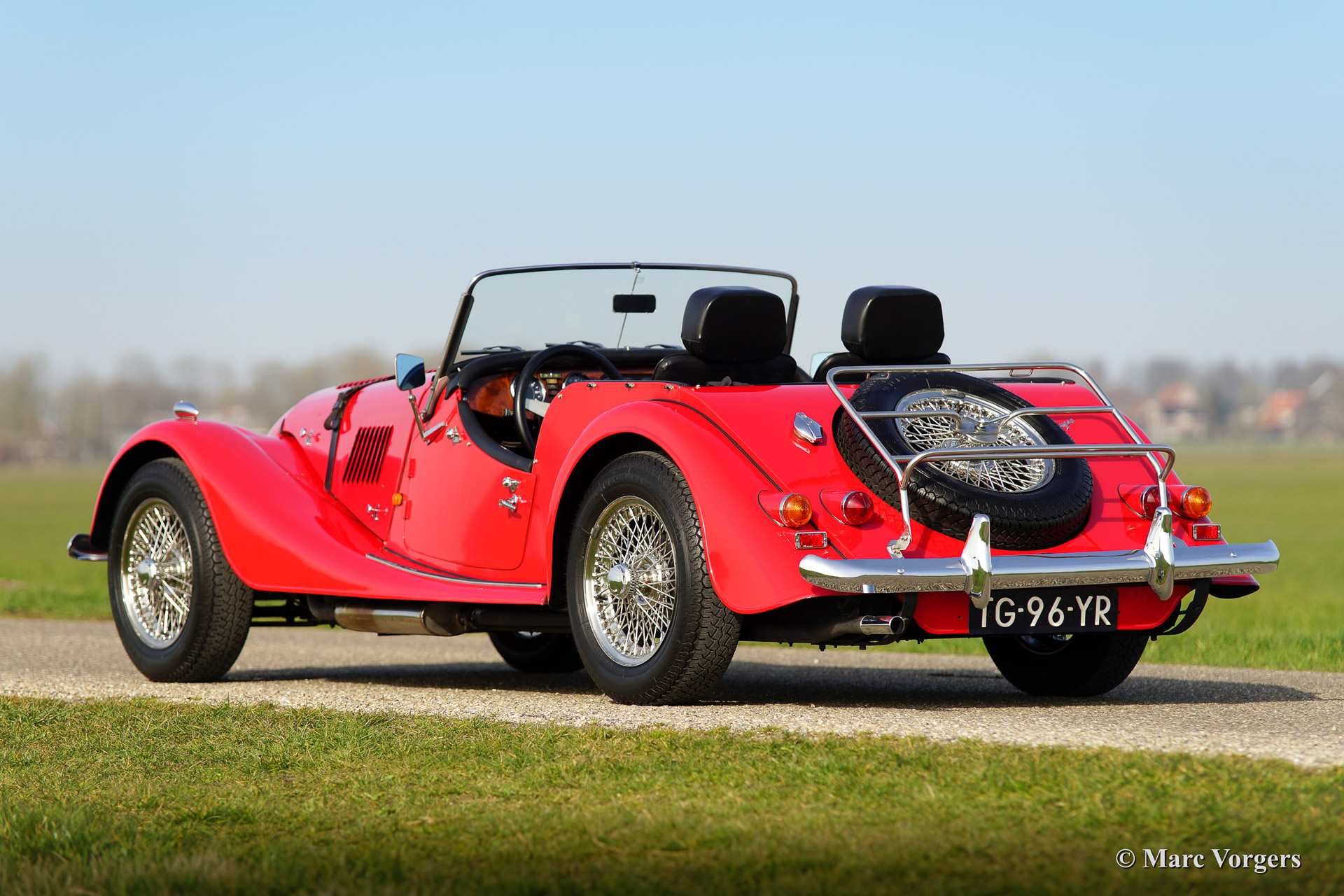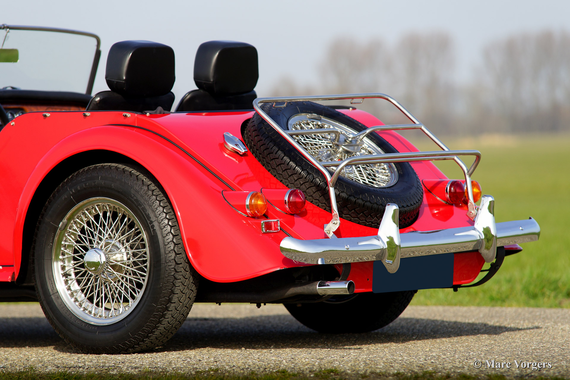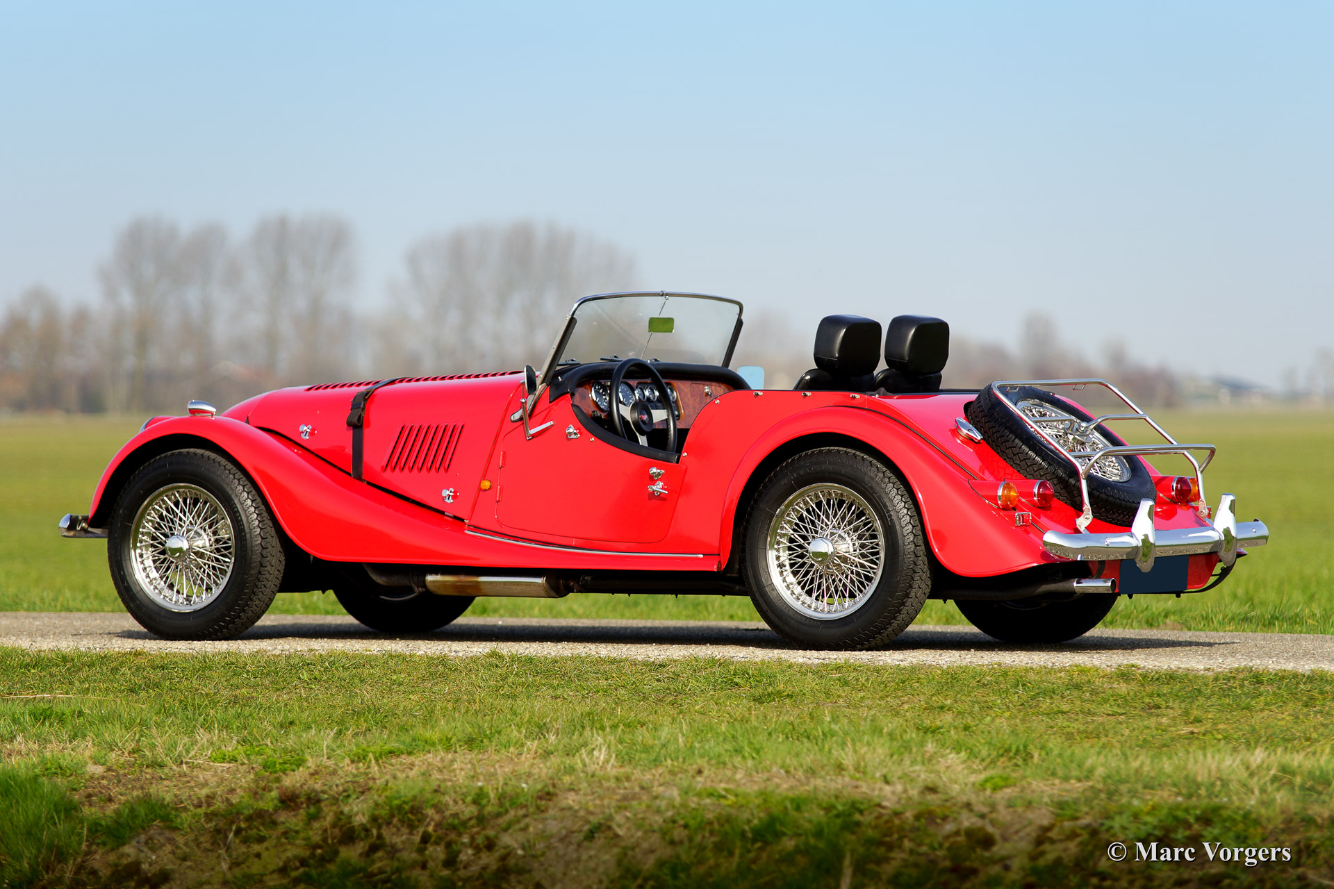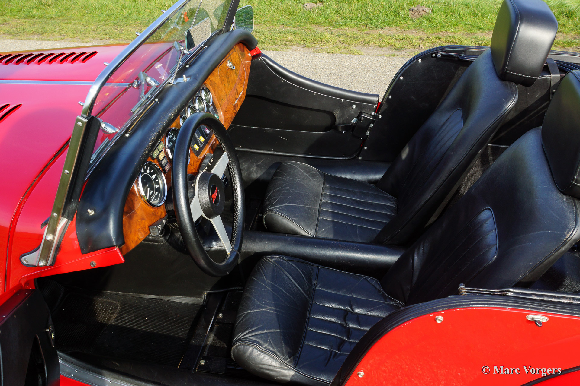 Morgan 4/4 1800, Jahr 1988. Farbe Rot mit einem schwarzen Leder-Interieur und schwarzen Teppich. Schwarzes Verdeck und Persenning (tonneau cover). Dieses fantastische Morgan 4/4 1800 hat seit 1988 nur einen Besitzer gekannt! Das Auto hat von neu nur 34.700 km gefahren und das Auto wurde liebevoll gewartet und gepflegt. Das Morgan ist in einem hervorragenden Zustand und das Auto fährt wie neu. Das Auto ist ausgestattet mit Chromstoßstangen, Chrom Speichen Räder, eine hölzerne Armaturenbrett, Aluminium Seitenfenster, einer Chrom ‚badge bar‘ und ein Edelstahl-Gepäckträger.