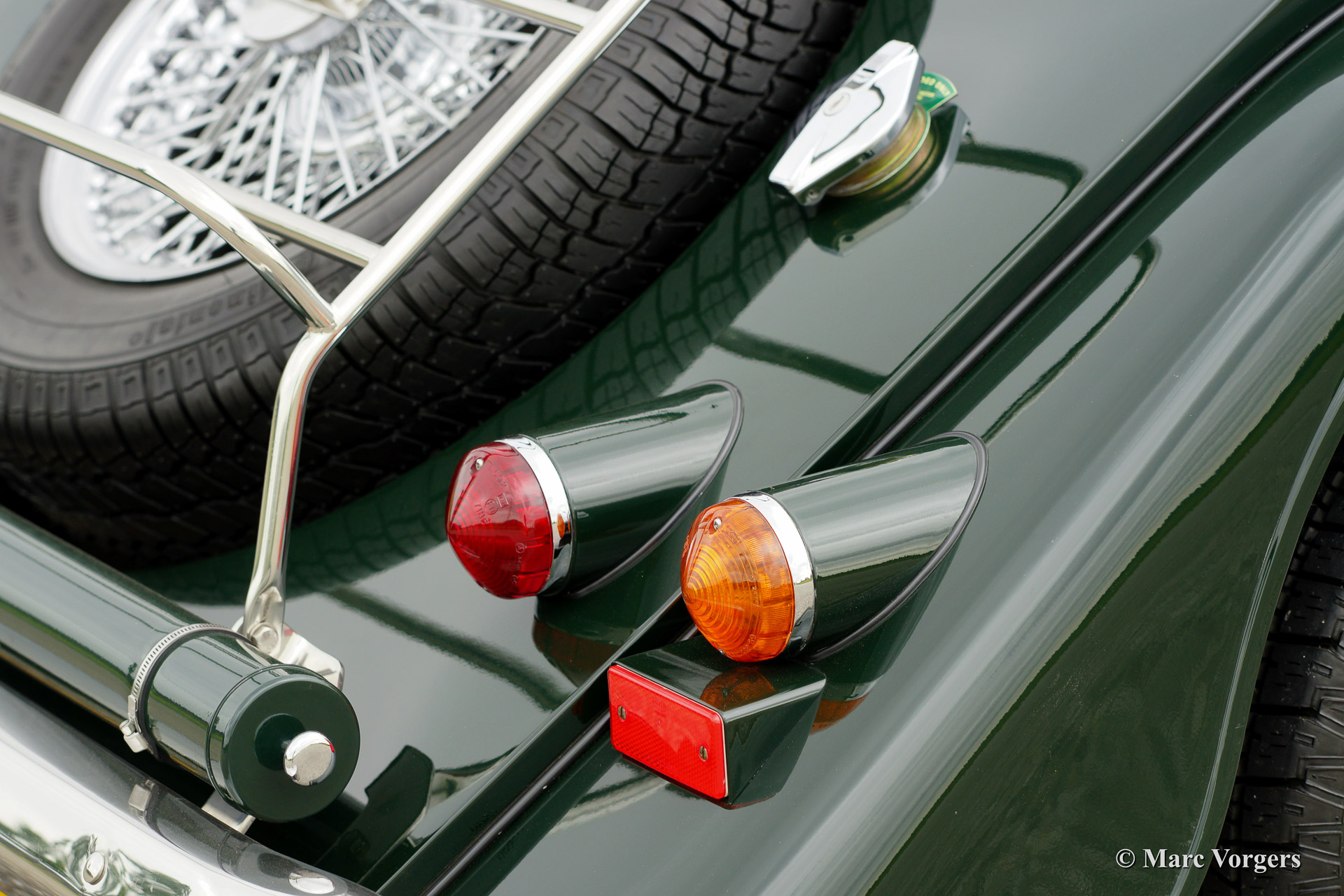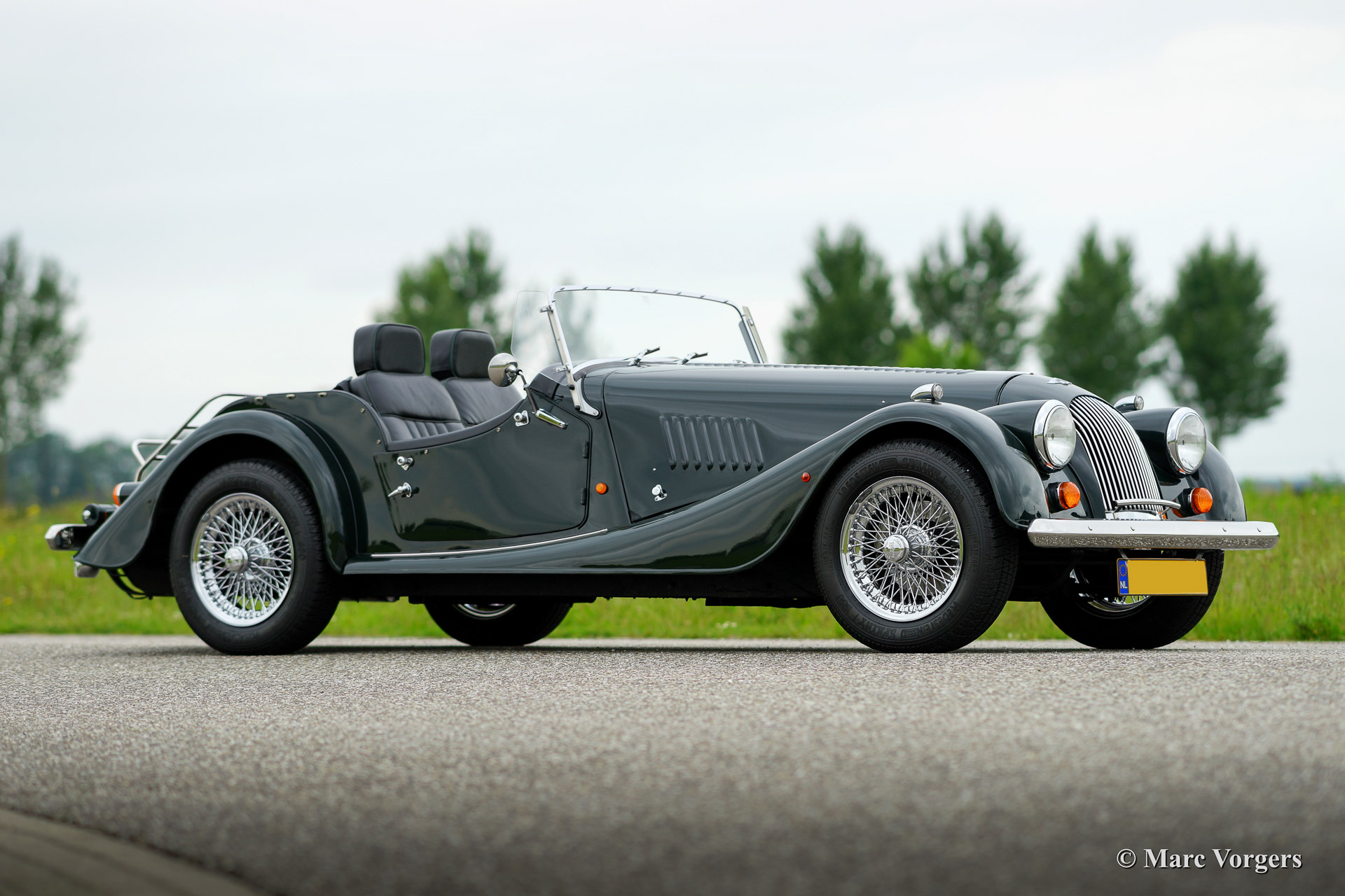 Morgan 4/4 1800, Jahr 1998. Farbe dunkel British Racing Green mit schwarzer Lederausstattung. Schwarzes Vinyl-Verdeck und Persenning (tonneau cover). Diese feine Morgan 4/4 wurde von der niederländischen Morgan Vertreter (NIMAG) neu geliefert. Von Tag eins hat das Auto 44,177 Kilometer gefahren. Das Auto ist in einem hervorragenden Zustand, wie neu! Das Serviceheft ist vorhanden und die (Service) Geschichte ist vollständig bekannt. Dieser Morgan fahrt perfekt! Das Auto ist ausgestattet mit Chrom Speichen Räder, ein Chrom-Gepäckträger, Chromstoßstangen, eine hölzerne Armaturenbrett, ein ‚badge bar‘ und ein spezielles Regenschirm aufbewahrungs-‚rohr‘ über der hinteren Stoßstange!