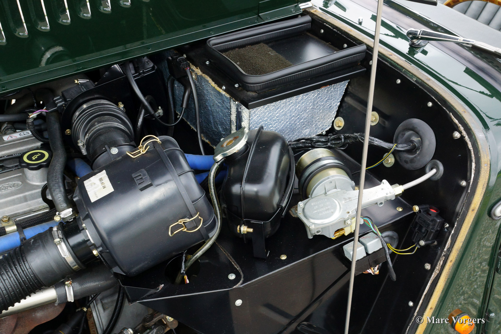 The Morgan 4/4 was built for over 50 years. The first model, introduced in the year 1936 was the 4/4 with flat radiator which was built until the year 1951. After a four year break (only the Morgan plus 4 was built those years) the Morgan 4/4 was going to be rebuild. The car did not change a lot (conservative as they are at the Morgan company), only the shape of the radiator changed from flat to cowled. Morgan never built their own engine, the early flat radiator cars were powered by Standard or Ford engines. The cowled radiator models were powered by Ford engines. The Ford engine used was known as the "Kent" engine and was also used in Fords Cortina model. Morgan 4/4 1600 cars were powered by the 1599 cc. Ford Kent engine which had a standard capacity of 98 bhp. giving the light car (two seater 660 kg./ four seater 785 kg.) sporty performance. The cars were fitted with a four speed manual gearbox. The modern Morgan 4/4 models are powered by a Ford Zetec 16V engine. These cars feature petrol injection and a five speed manual gearbox. The Morgan 4/4 is a very special car to drive because it has it's own strong character. It cannot be compared with any other roadster or convertible.