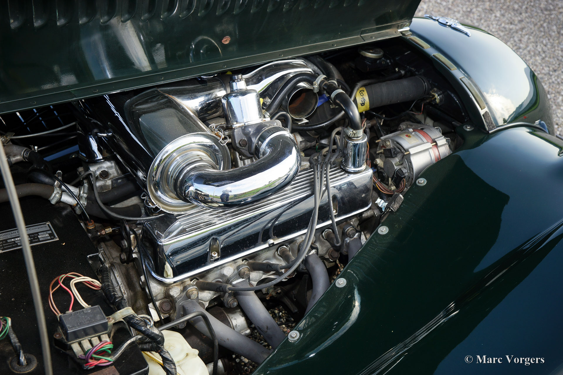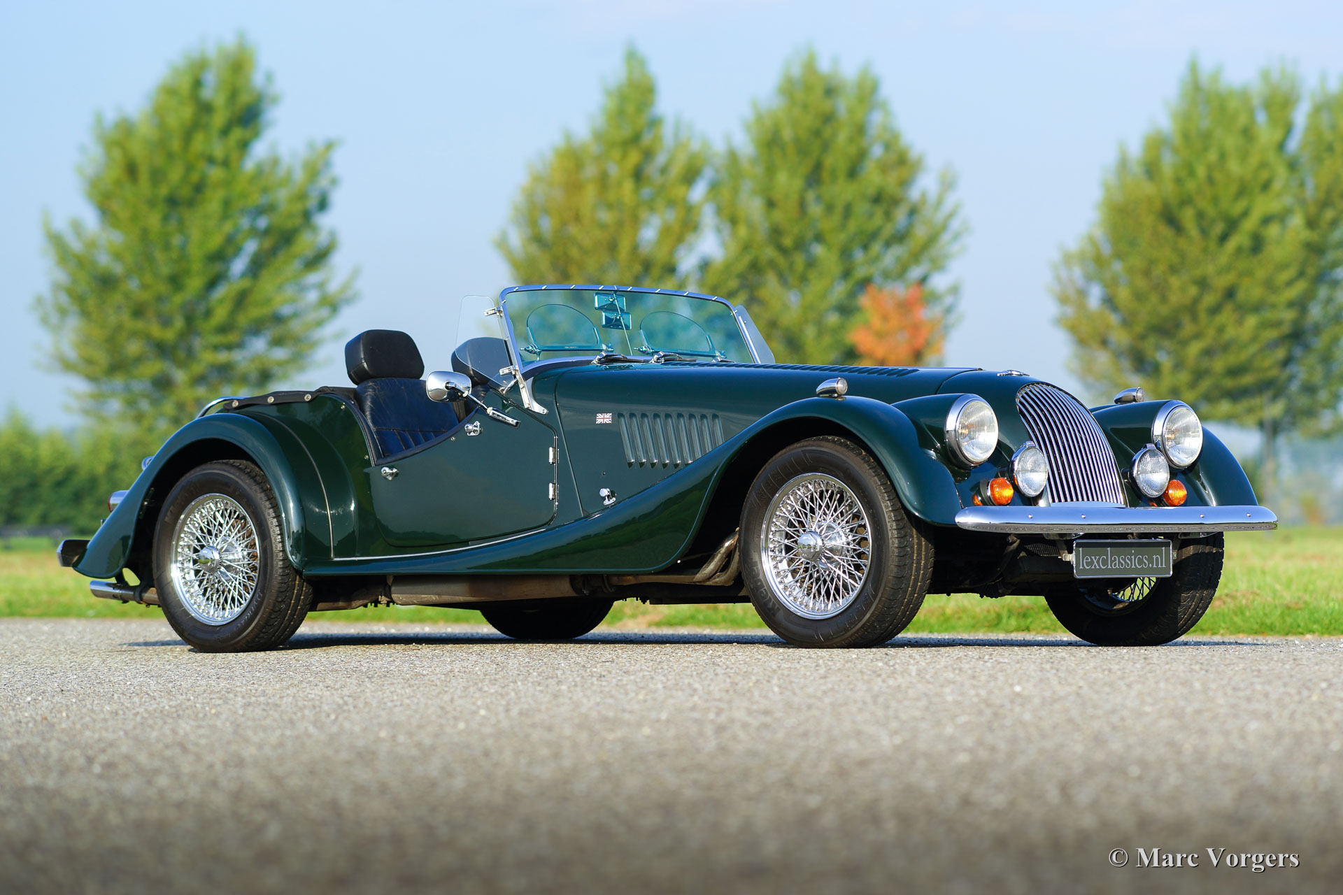 Morgan +8, Jahr 1981. Farbe British Racing Green mit schwarzem Leder Interieur. Dieser fantastische Morgan +8 wurde in den Niederlanden neu verkauft. Das Auto kommt von einem niederländischen Besitzer, der das Auto seit vielen Jahren geschätzt hat. Die Morgan ist perfekt gewartet und gepflegt, das Auto ist in einem sehr gute bis hervorragender Zustand mit einem guten Innenraum mit lnormale Gebrauchsspuren. Diese Morgan +8 ist ein begehrtes frühes Vergaser-Modell mit dem 3,5-Liter-Rover-V8-Motor. Das Fahrerlebnis der Morgan +8 ist einzigartig; das Auto fühlt und fährt wie ein großes ‘Go-Kart‘; sportlich und gesegnet mit enormer Beschleunigungskraft. Die ‘Sound-Track‘ des Motors ist prächtig; die mächtigen Impulse verschmelzen sich allen anderen Eindrücken der Geschwindigkeit. Auf der anderen Seite kann der Morgan +8 ruhig und bequem über lange Distanzen mit dem klangvollen V8-Rumpeln im Hintergrund gefahren werden. Diese feine Morgan verfügt über ein Nussbaum-Armaturenbrett, ein Chrom-Gepäck-Träger, Seiten-Fenster, ein MotoLita-Lenkrad, ein Mohair-Persenning, 12V-Steckdose, Brooklands-Rennschirme, eine Abzeichen leiste (badge-bar) mit zusätzlichen Scheinwerfern, Sicherheitsgurte, Kopfstütze und ein Edelstahl-Auspuff. Dies ist ein fantastisches Morgan +8!