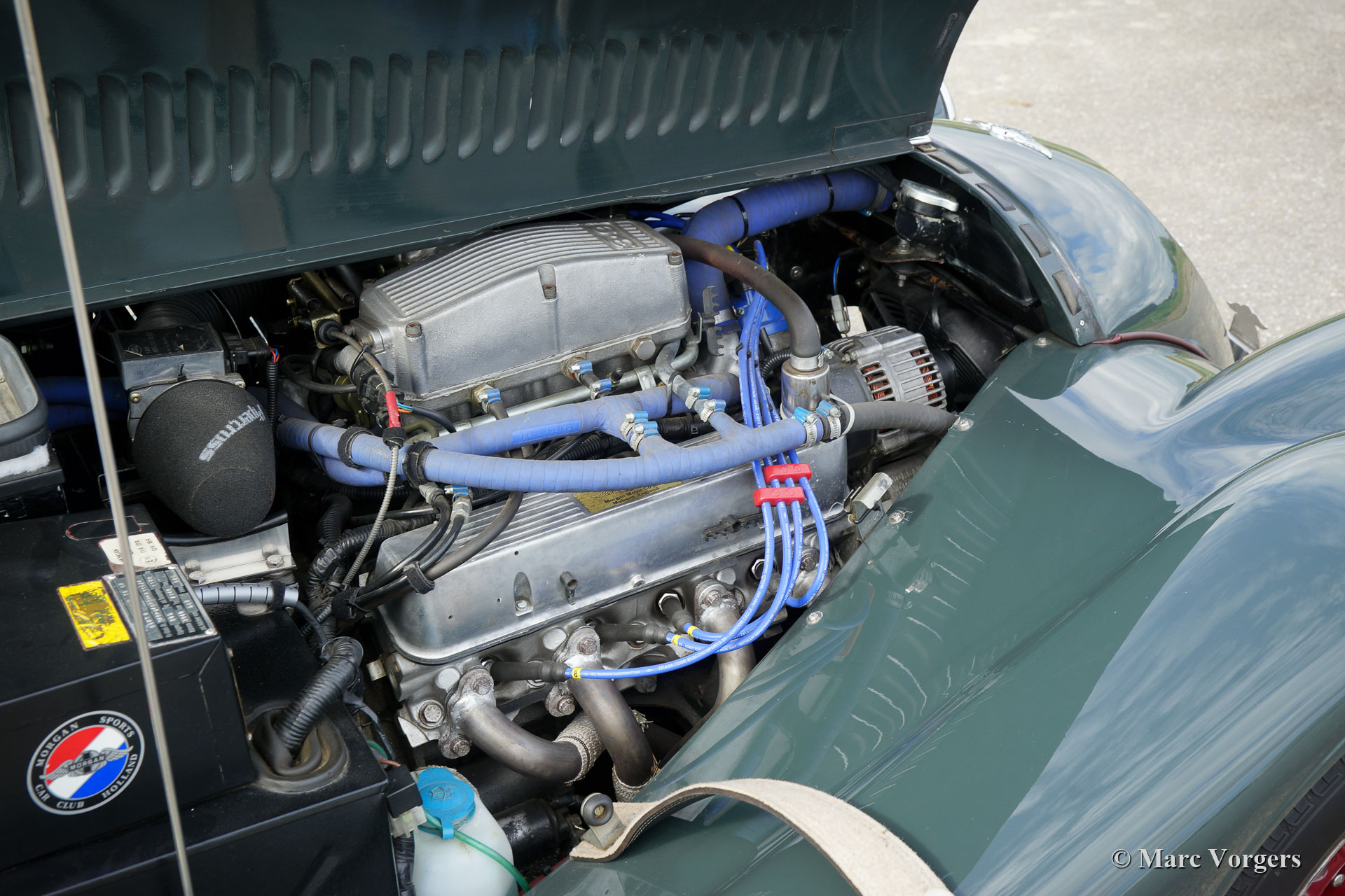 Morgan +8, Jahr 1997. Farbe dunkelgrau kombiniert mit einer dunkelroten Lederausstattung und dunkelroter Wetterausrüstung (Verdeck, Persenning, Reserveradabdeckung). Dieser prächtige Morgan +8 wurde neu nach Deutschland verkauft. Das Auto wurde im Jahr 2003 in die Niederlande importiert. Der Morgan kennt seitdem einen niederländischen Besitzer, und das Auto ist 80.000 Kilometer von neu gefahren. Dieser beeindruckende Morgan +8 befindet sich in einem ausgezeichneten Originalzustand mit nur geringen Gebrauchsspuren. Die (Service-) Geschichte ist sehr gut dokumentiert. Dieser begehrenswerte Morgan +8 verfügt über den bekannten 3,9-Liter-V8-Motor von Rover mit Benzineinspritzung und einem manuell betätigten 5-Gang-Getriebe. Mit 180 PS und einem Gewicht von etwas mehr als 1000 Kilogramm bietet der Morgan +8 die richtigen Zutaten für ein spektakuläres Fahrerlebnis! Die prächtige Auspuffnote macht süchtig! Dieser wunderschöne Morgan +8 ist mit vielen speziellen Optionen ausgestattet, wie z. B. einer Persenning, einer Gepäckablage, einer Librands-Abgasanlage, einer Panhard-Stange (zusätzliche Stange zur Lokalisierung der Hinterachse), Koni-Stoßdämpfern, Kühlergrillgitter, einem Kühler mit hoher Kapazität, einem Ledergürtel über der Motorhaube, verschiedene Edelstahlbefestigungen, Lenkschloss und verchromte Rücklichtgehäuse. Darüber hinaus ist das Auto mit wunderschönen originalen 15-Zoll-Leichtmetallrädern ausgestattet, die mit 205-60 Dunlop-Reifen bestückt sind. Dies ist ein hervorragendes Beispiel für den legendären Morgan +8!