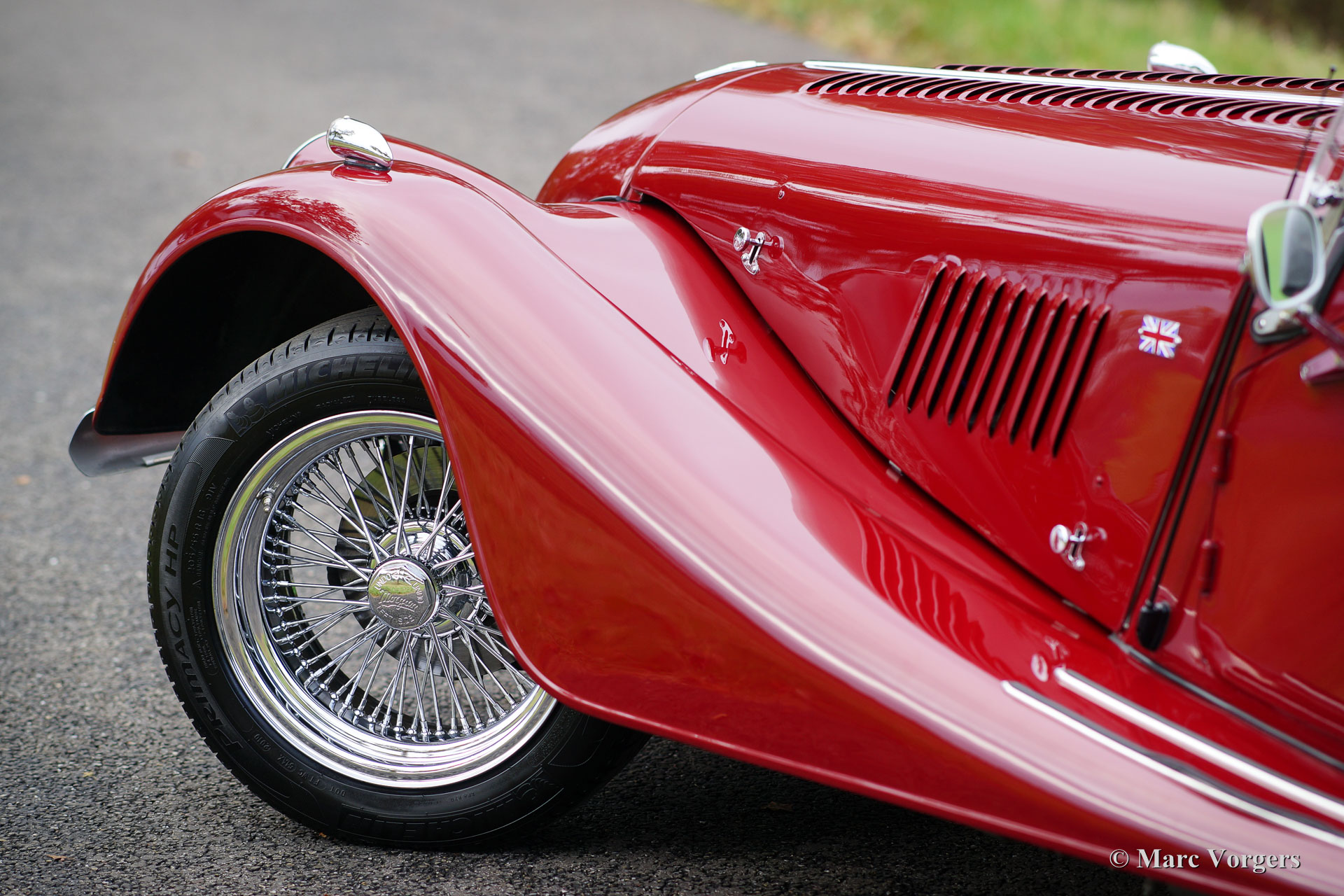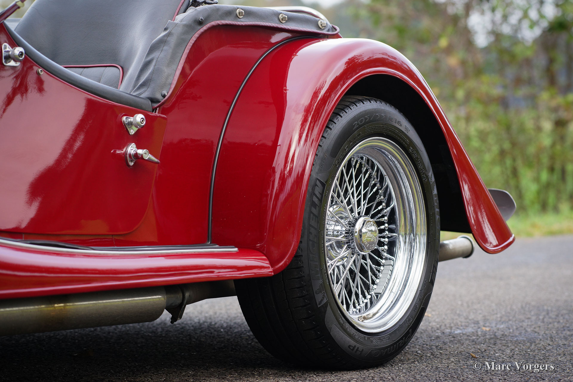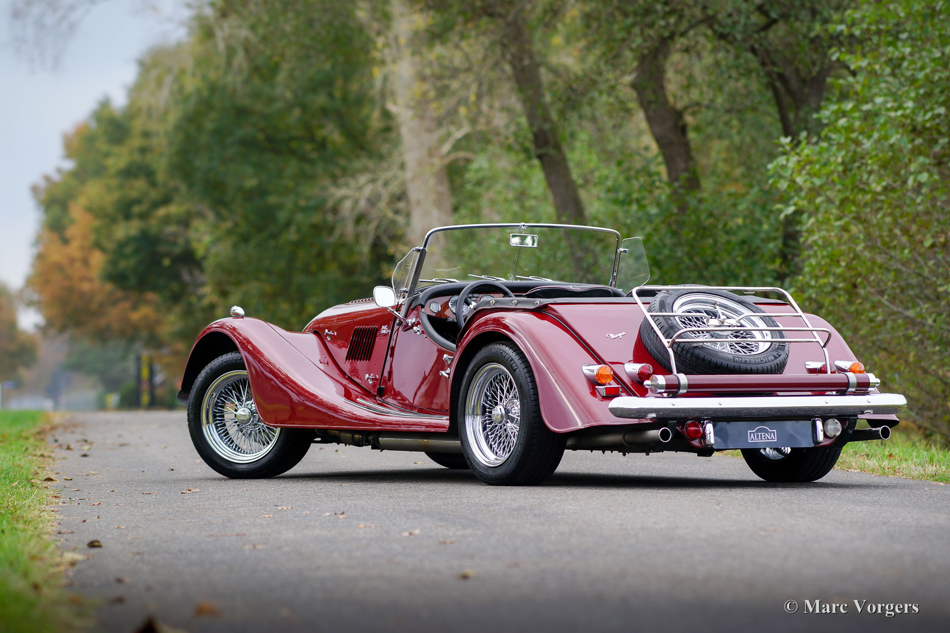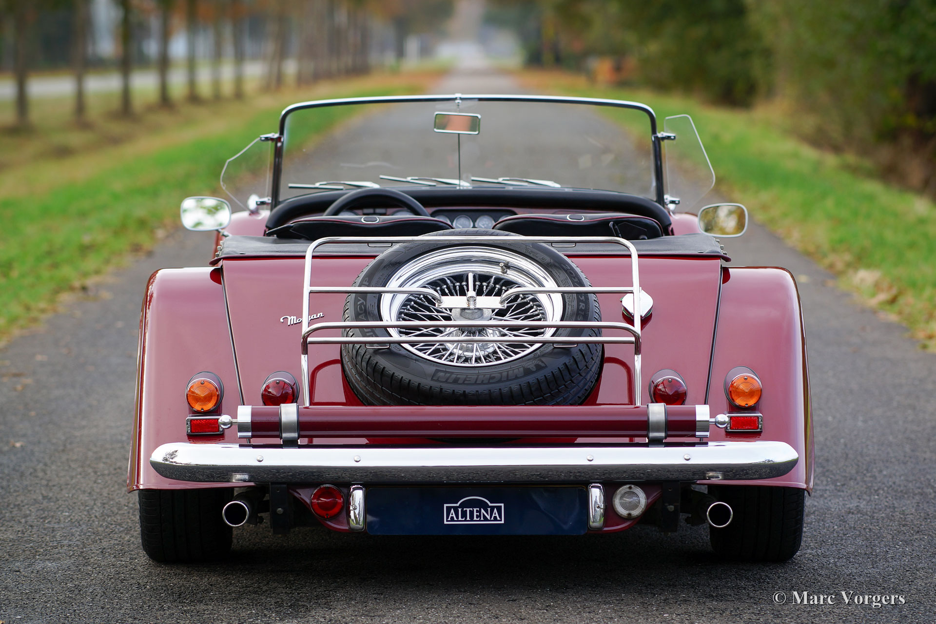 Morgan +8 'wide body', Jahr 1995. Fahrgestellnummer R1132X. Farbe dunkelrot mit einem schwarzen Lederinterieur. Dieser sehr beeindruckende Morgan +8 'wide body' ist in einem hervorragenden Zustand und das Auto fährt perfekt! Das geringe Gewicht (ca. 1000 kg) kombiniert mit dem leistungsstarken Rover V8-Motor (ca. 200 PS) ist ein großartiges Rezept für viel Fahrspaß! Diese Morgan +8 'wide body' verfügt über die originalen breiten Chrom Speichen Räder, einen Auspuffkrümmer aus rostfreiem Edelstahl, zusätzliche Lampen an der Vorderseite, eine verchromte Gepäckablage und eine spezielle Regenschirmhalterung über der hinteren Stoßstange. Die Morgan +8 'wide body' ist ein seltenes Auto, knapp über 350 Exemplare wurden gebaut. Ein Morgan ist nicht nur ein klassisches Auto oder ein moderner Klassiker; Morgan ist eine Lebensart!