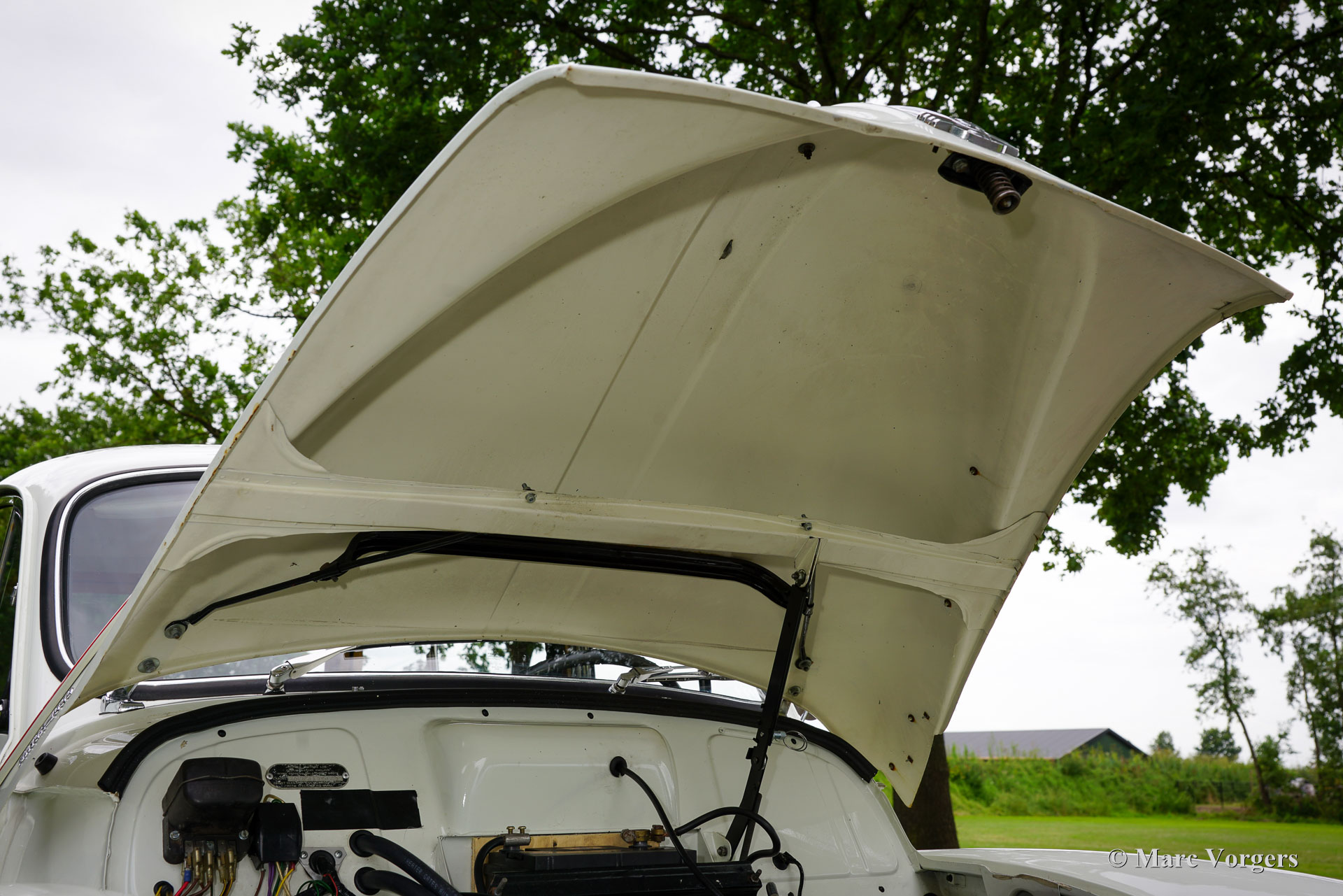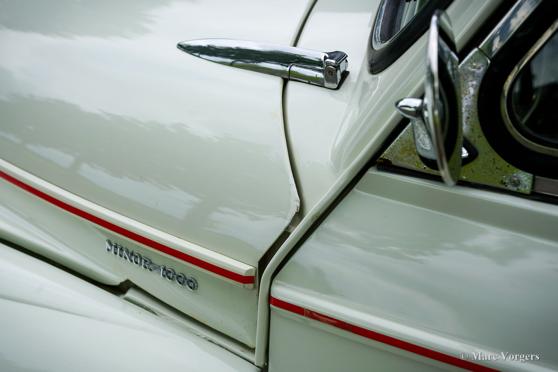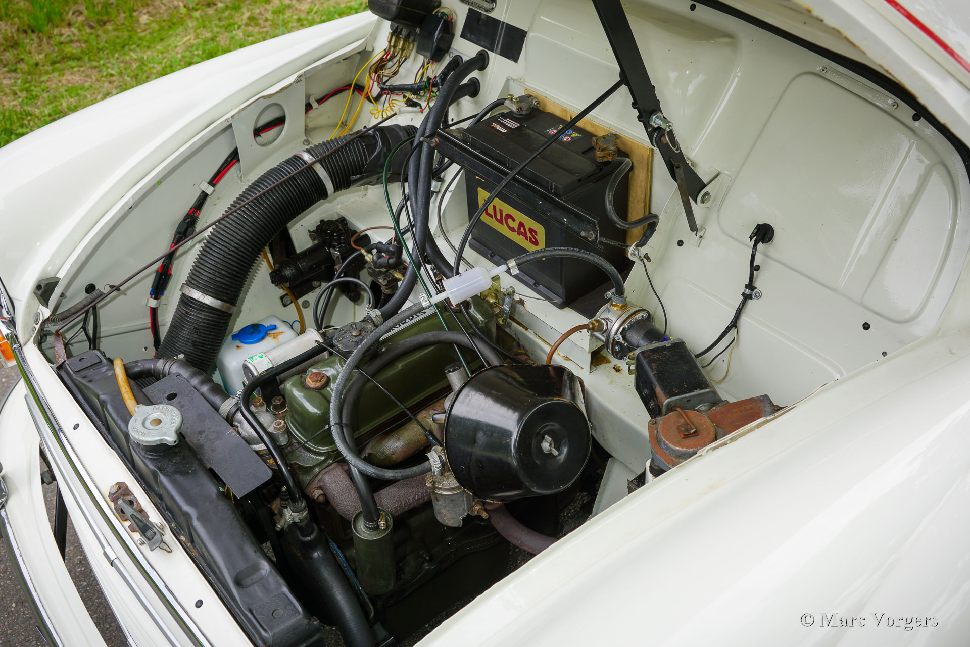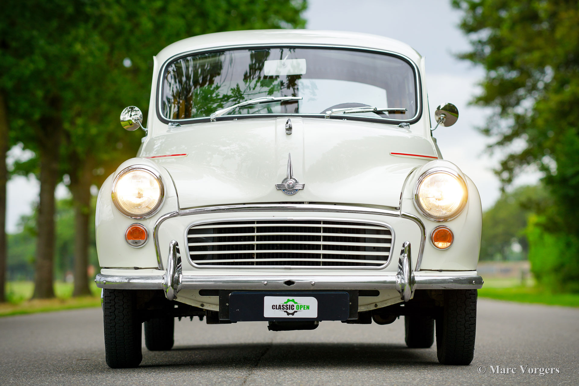Morris Minor Traveller, Jahr 1971. Farbe Weiß kombiniert mit einer blauen Kunstlederausstattung. Ein roter Nadelstreifen ist ein schönes Detail auf dem weißen Lack. Dieser entzückende Morris Minor 1000 Traveller stammt aus dem letzten Produktionsjahr. Dieser Morris Minor wurde umfassend restauriert und ist in einem sehr guten Zustand! Die Karosserie ist perfekt, ebenso die Holzstruktur, die bei der Restaurierung teilweise erneuert wurde. Die originale Innenausstattung wurde übernommen und ist in einem schönen Zustand, der Teppich wurde erneuert. Der Motorraum ist sauber und zeigt alle originalen Werksdetails. Das Auto wurde sehr gut gewartet und wird künftigen Besitzern und Zuschauern viel Freude und Spaß bereiten! Der 1098-cm³-Vierzylindermotor läuft hervorragend und leistet 50 PS, was für eine schnelle Fortbewegung im modernen Verkehr ausreicht. Zukünftige Besitzer müssen damit rechnen, viele Daumen nach oben und begeisterte Bemerkungen zu bekommen, wo und wann immer sie diesen charakteristischen britischen Klassiker parken!