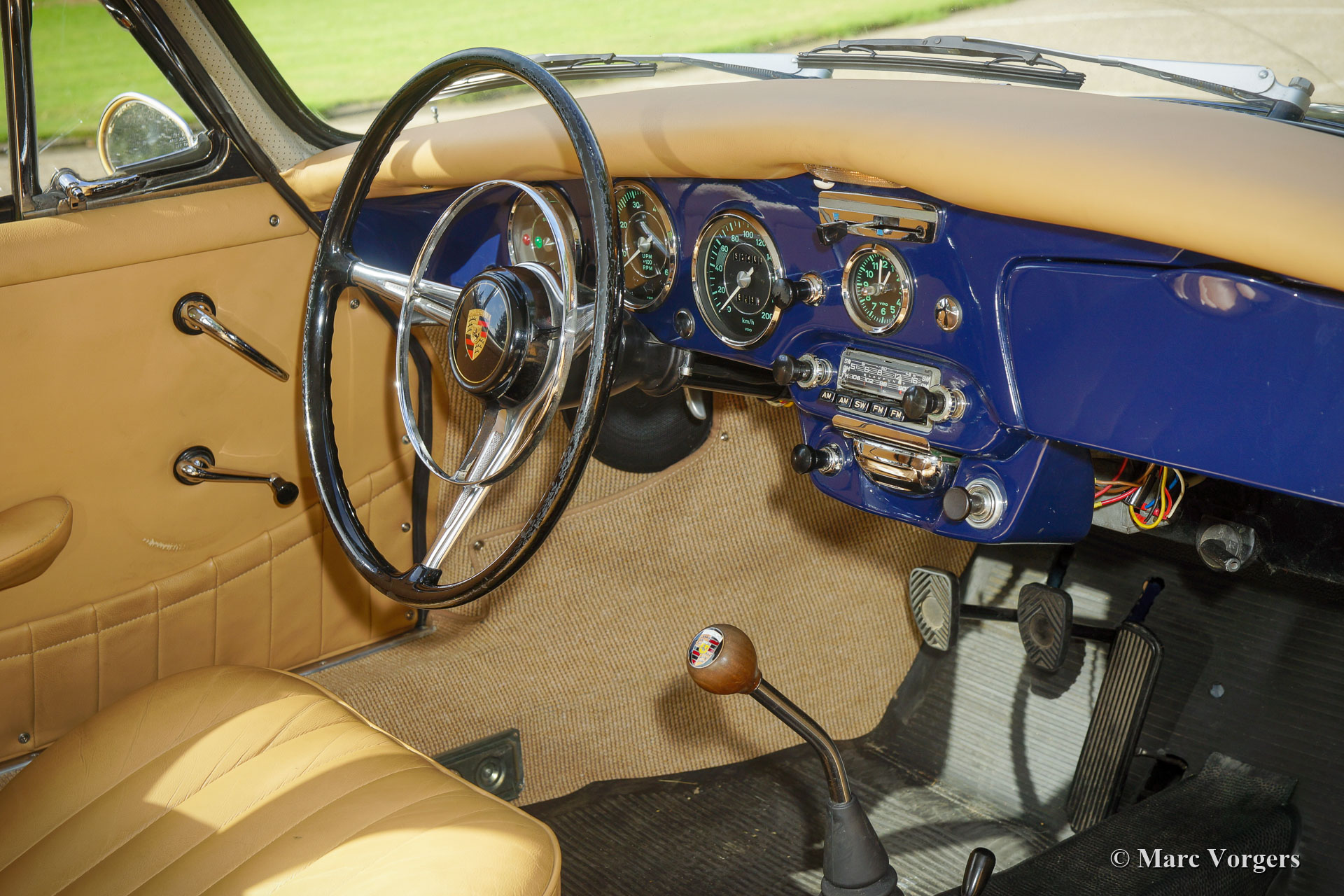 Porsche 356 SC, Baujahr 1964. Erstzulassung 1965. Farbe dunkelblau kombiniert mit einem beigefarbener Lederausstattung. Dieser fabelhafte Porsche 356 SC wurde in den USA neu verkauft, 1994 wurde das Automobil in die Niederlande importiert. In den Jahren 1998 - 2008 wurde der Porsche umfangreich restauriert. Das Auto wurde komplett ausgebaut und die Karosserie restauriert. Die mechanischen Teile wurden zerlegt und überholt. Das Auto wurde mit vielen neuen Teilen aufgebaut. Das Auto wird mit einer Dokumentdatei geliefert, die die Restaurierungsrechnungen enthält. Dieser feine Porsche 356 SC befindet sich in ausgezeichnetem Zustand und weist nur leichte Gebrauchsspuren auf. Das Auto fährt perfekt!