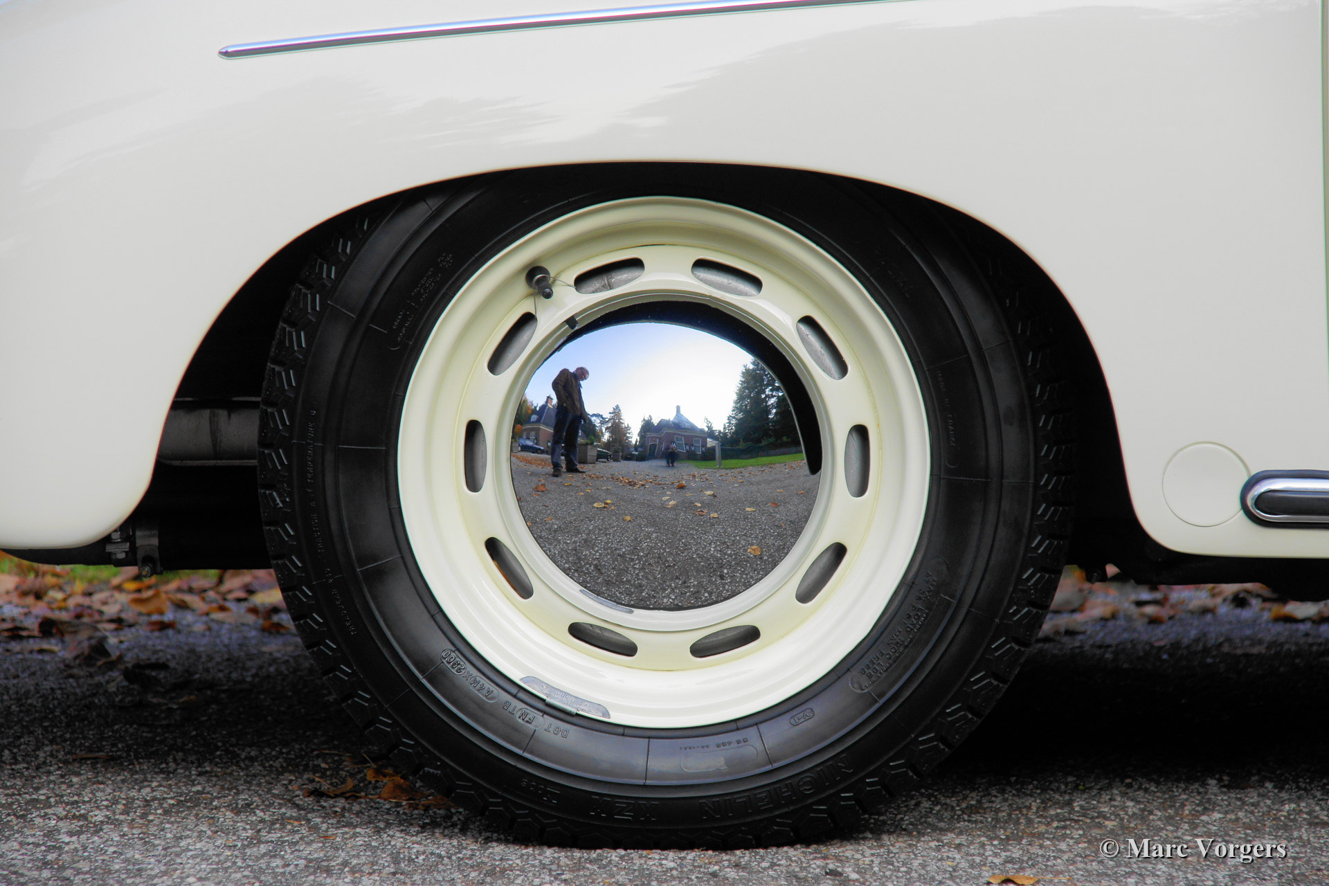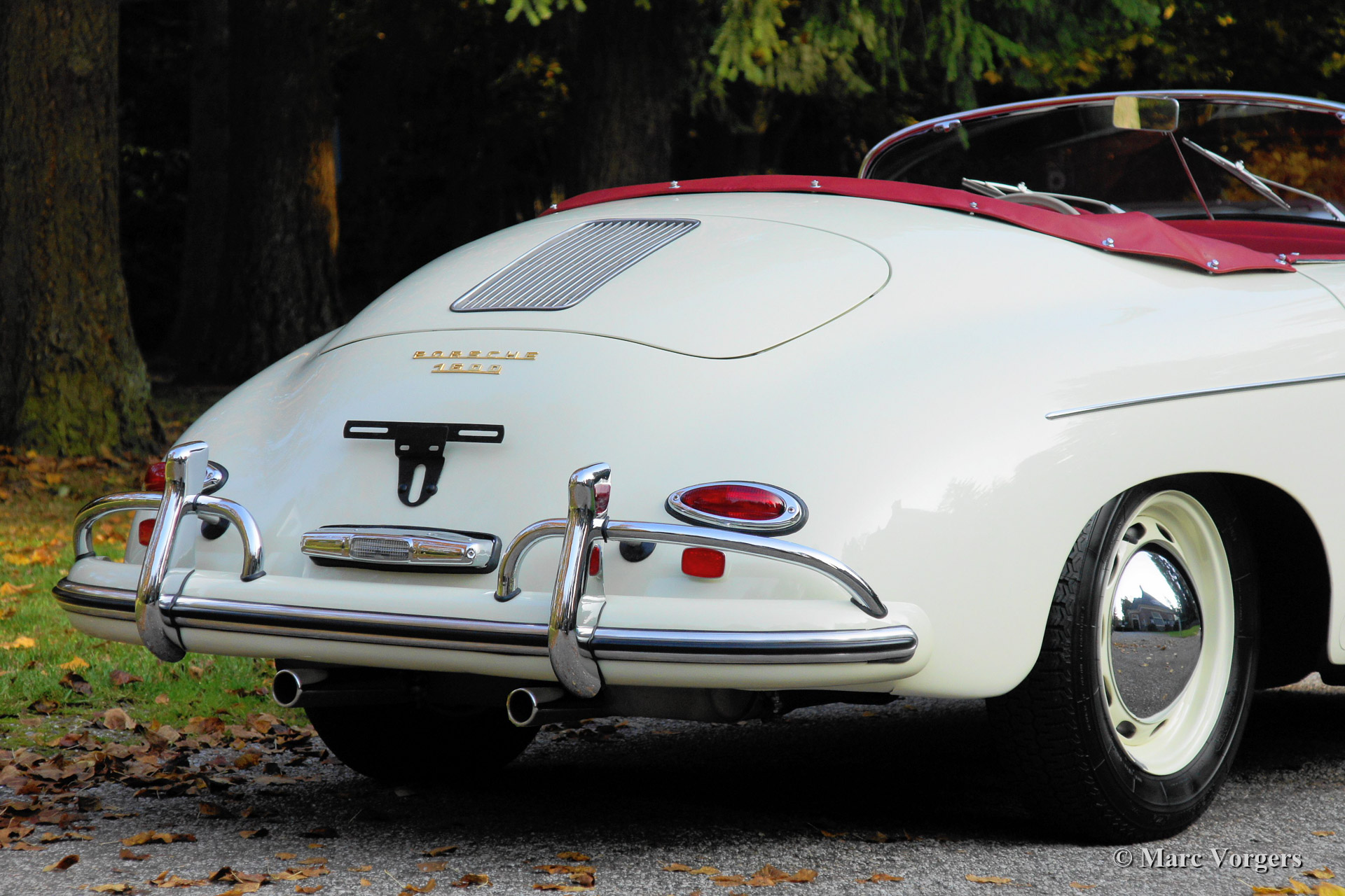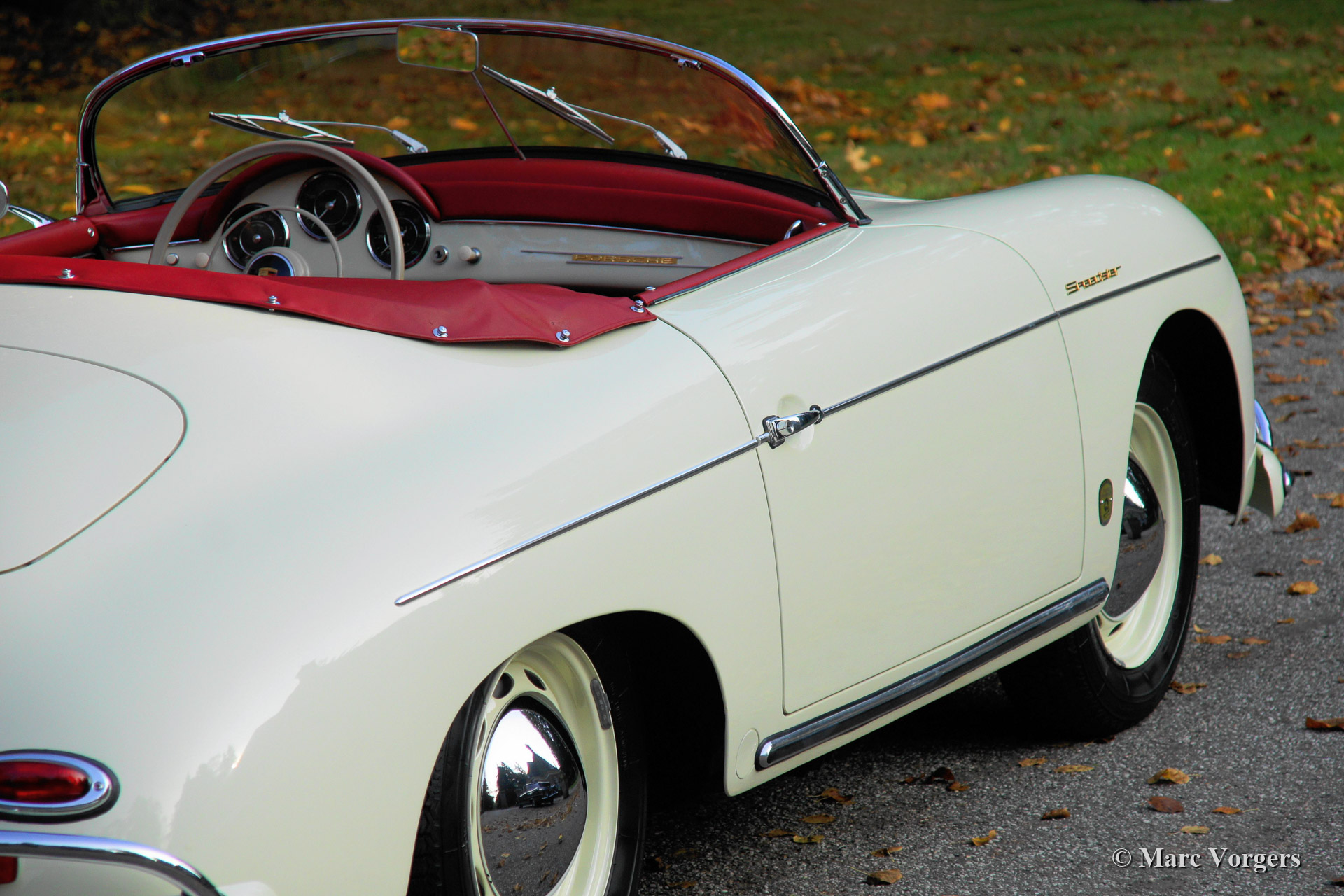 Porsche 356A Speedster 1600 T1, year 1957. Colour Ivory white with a red leather interior and a beige soft top. This fantastic Porsche Speedster was fully and perfectly restored. This Porsche Speedster features the optional 'comfort seats' which are also to be found in the Porsche 356 cabriolet.