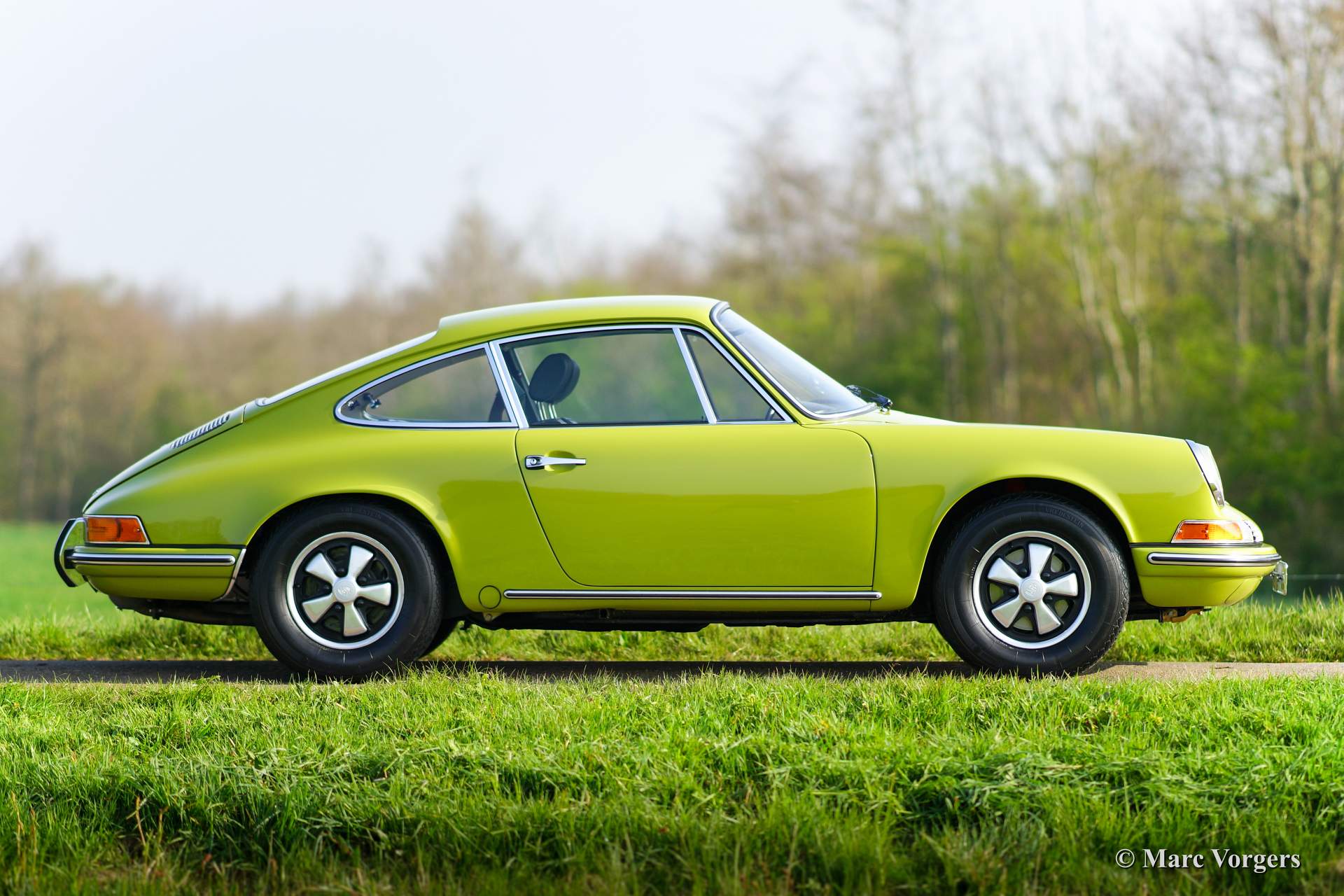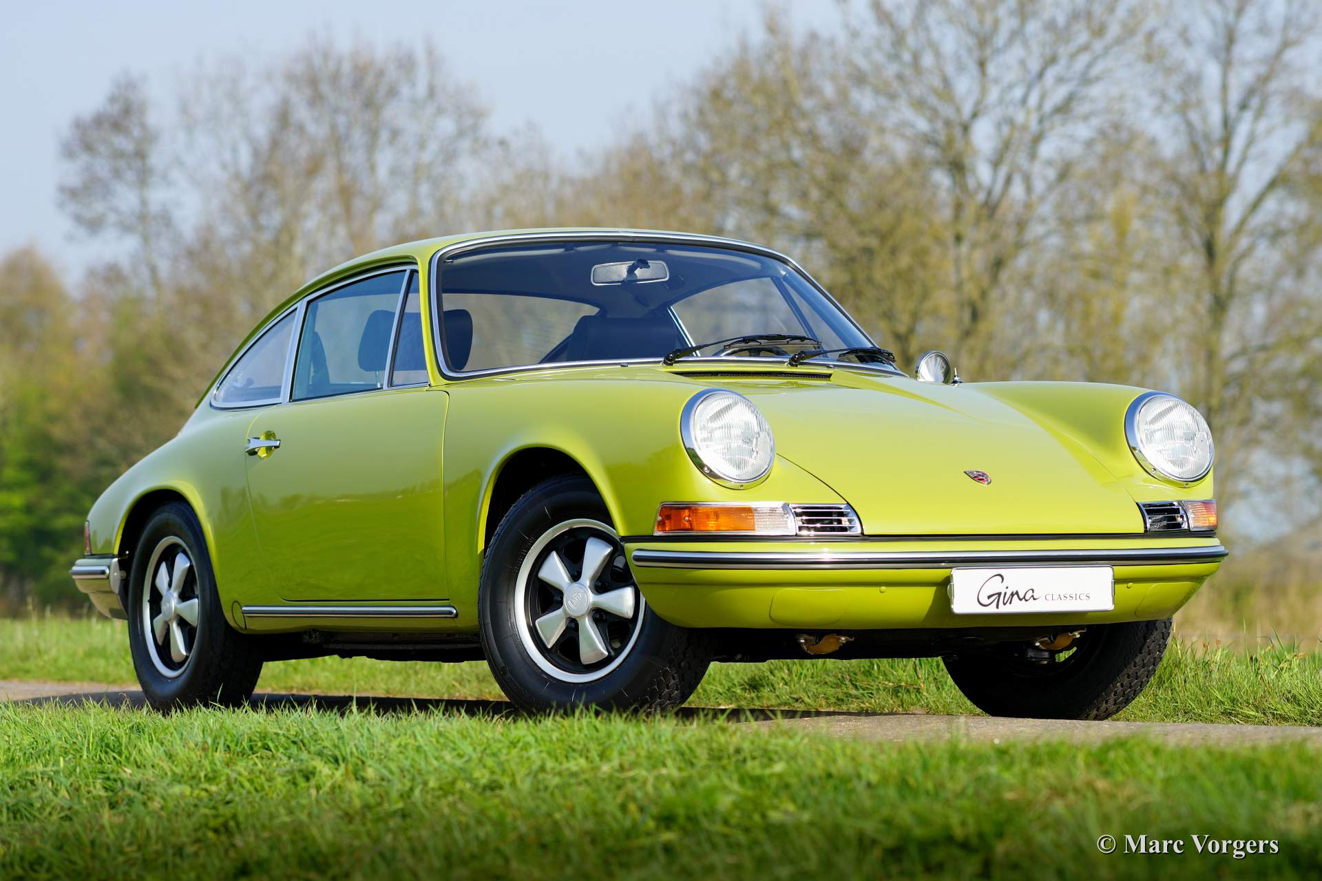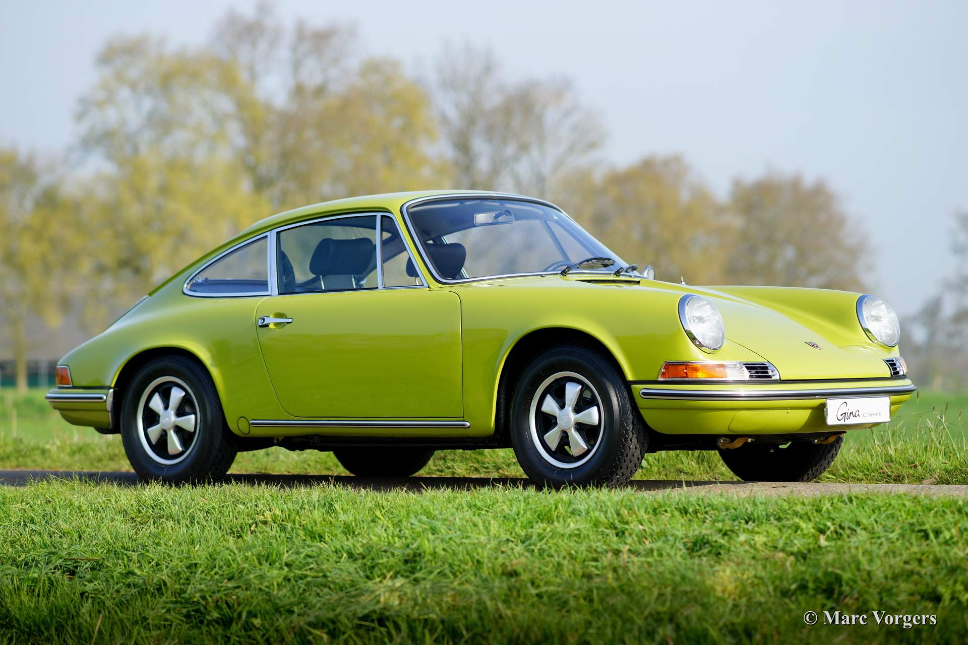 Porsche 911 2.0 T, Jahr 1969. Farbe Goldgrün, Farb-Kode 6828, mit einer schwarzen Kunstlederinnenausstattung.