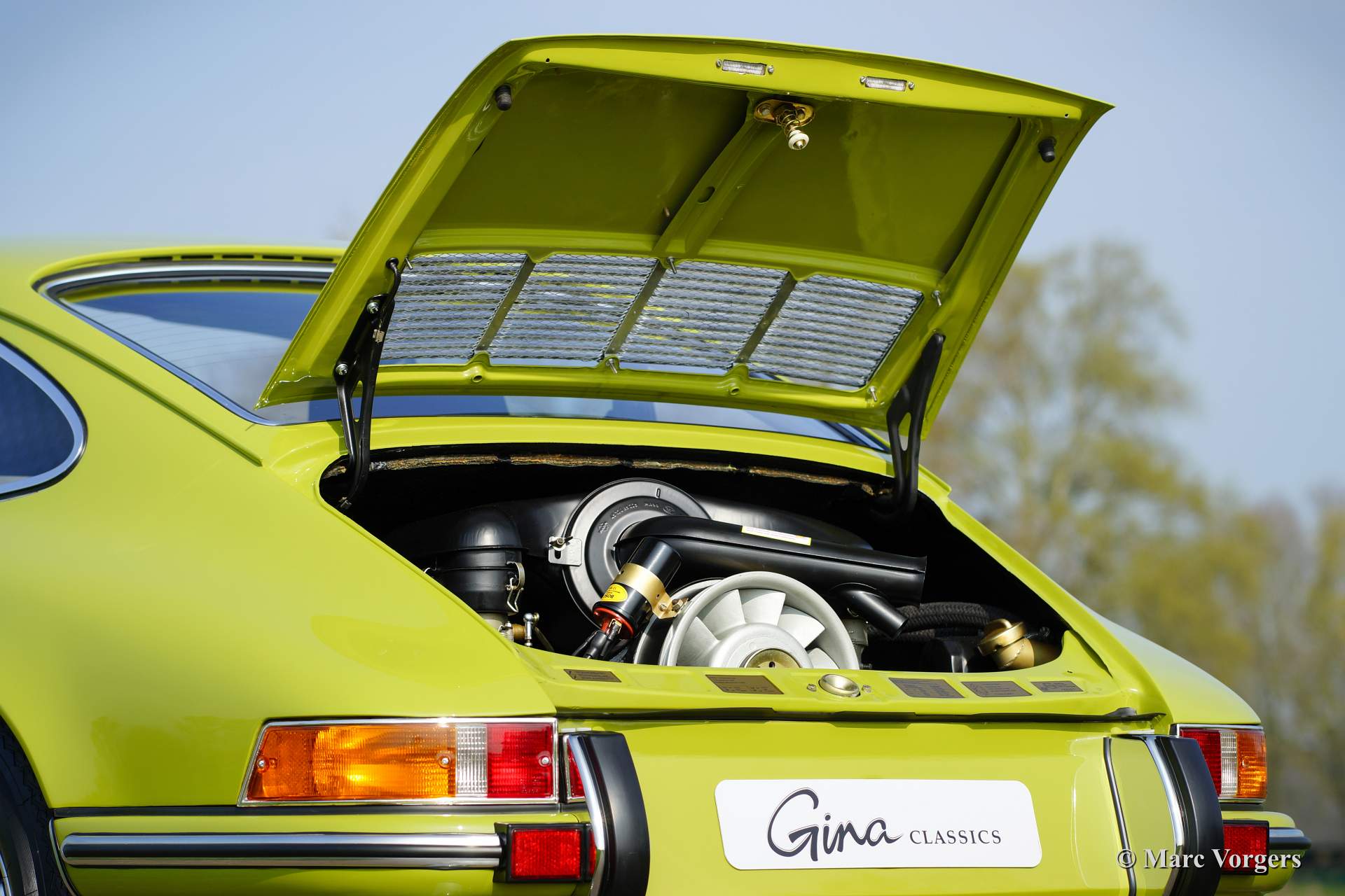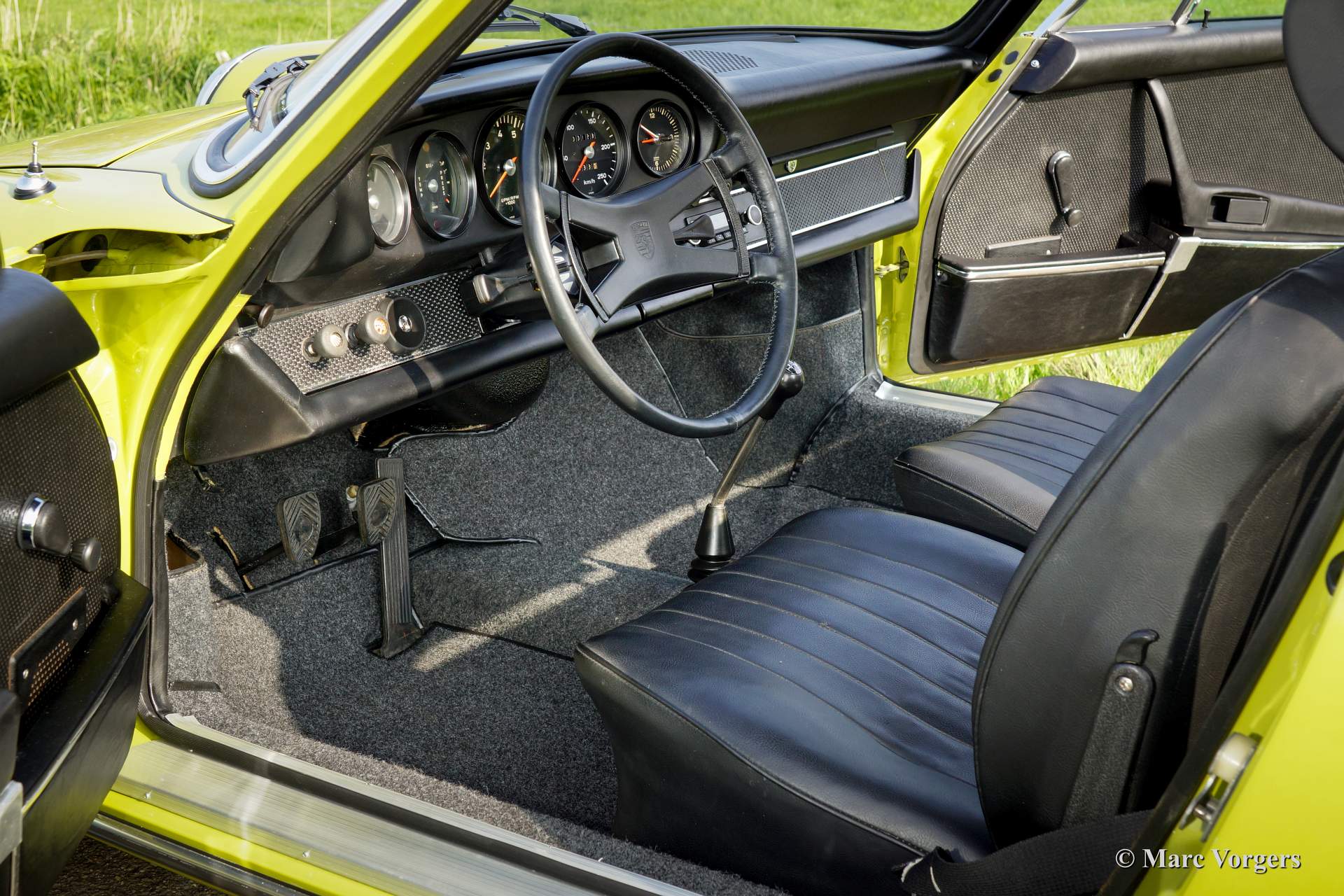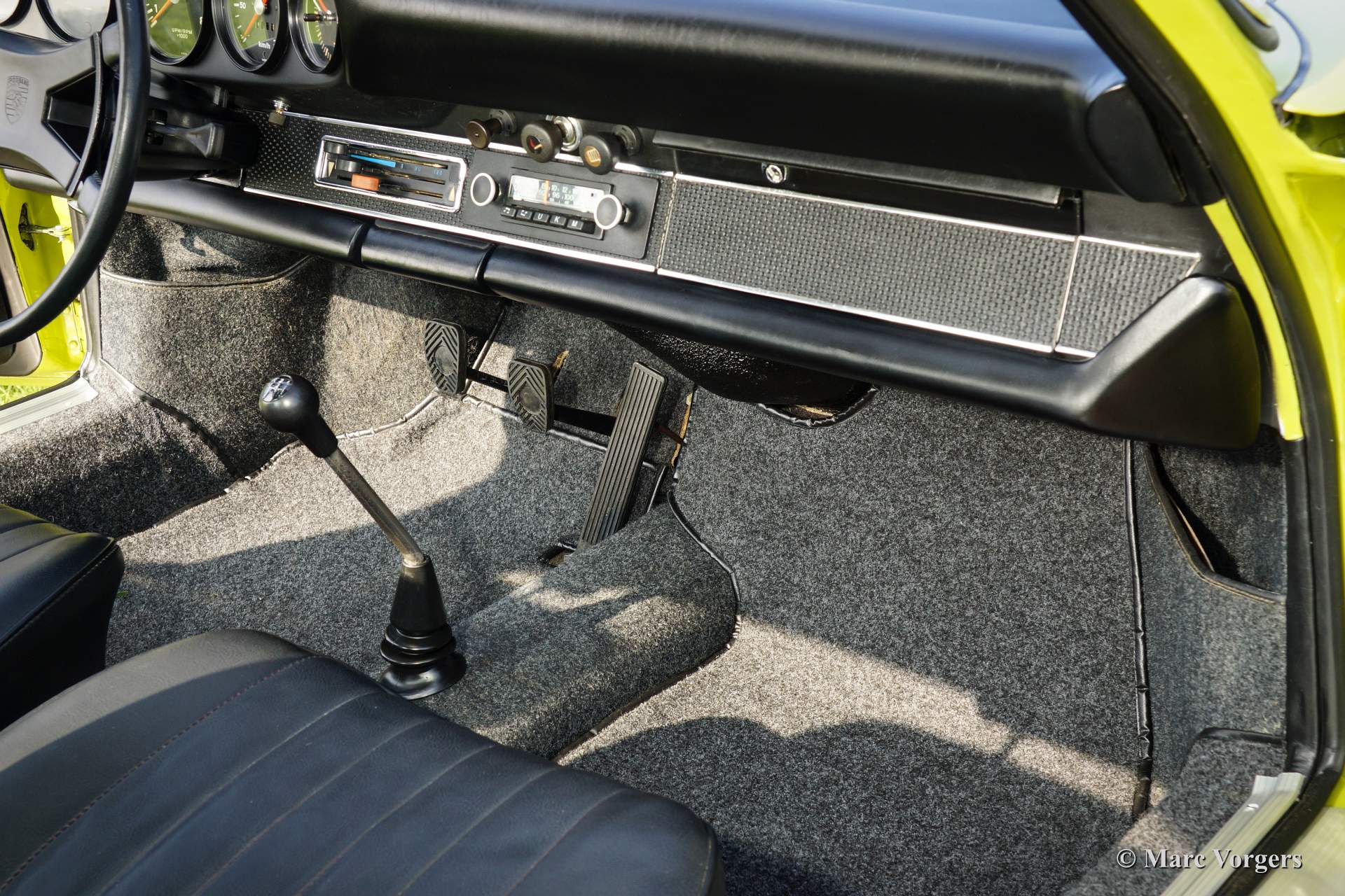 Porsche 911 2.0 T, Jahr 1969. Farbe Goldgrün, Farb-Kode 6828, mit einer schwarzen Kunstlederinnenausstattung.