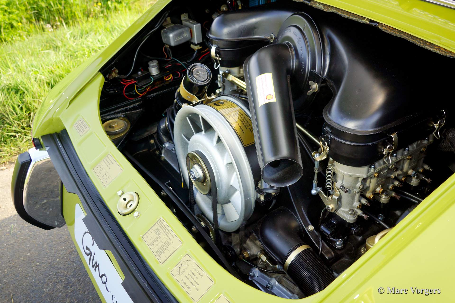 The Porsche 911 was designed with a steel unitary bodywork construction in which the engine was located behind the rear axle. The 911 engine is a air-cooled six cylinder "boxer" engine. The suspension of the Porsche 911 was independent from the start as was a five speed gearbox with floor shift.