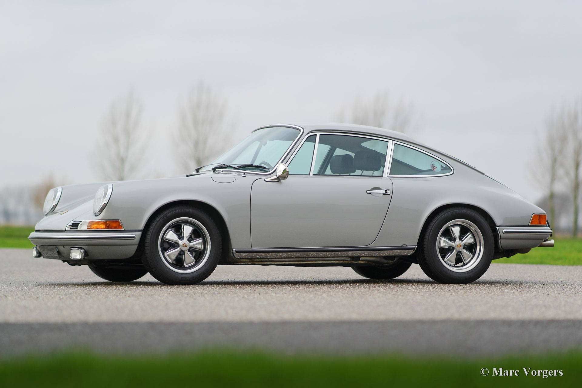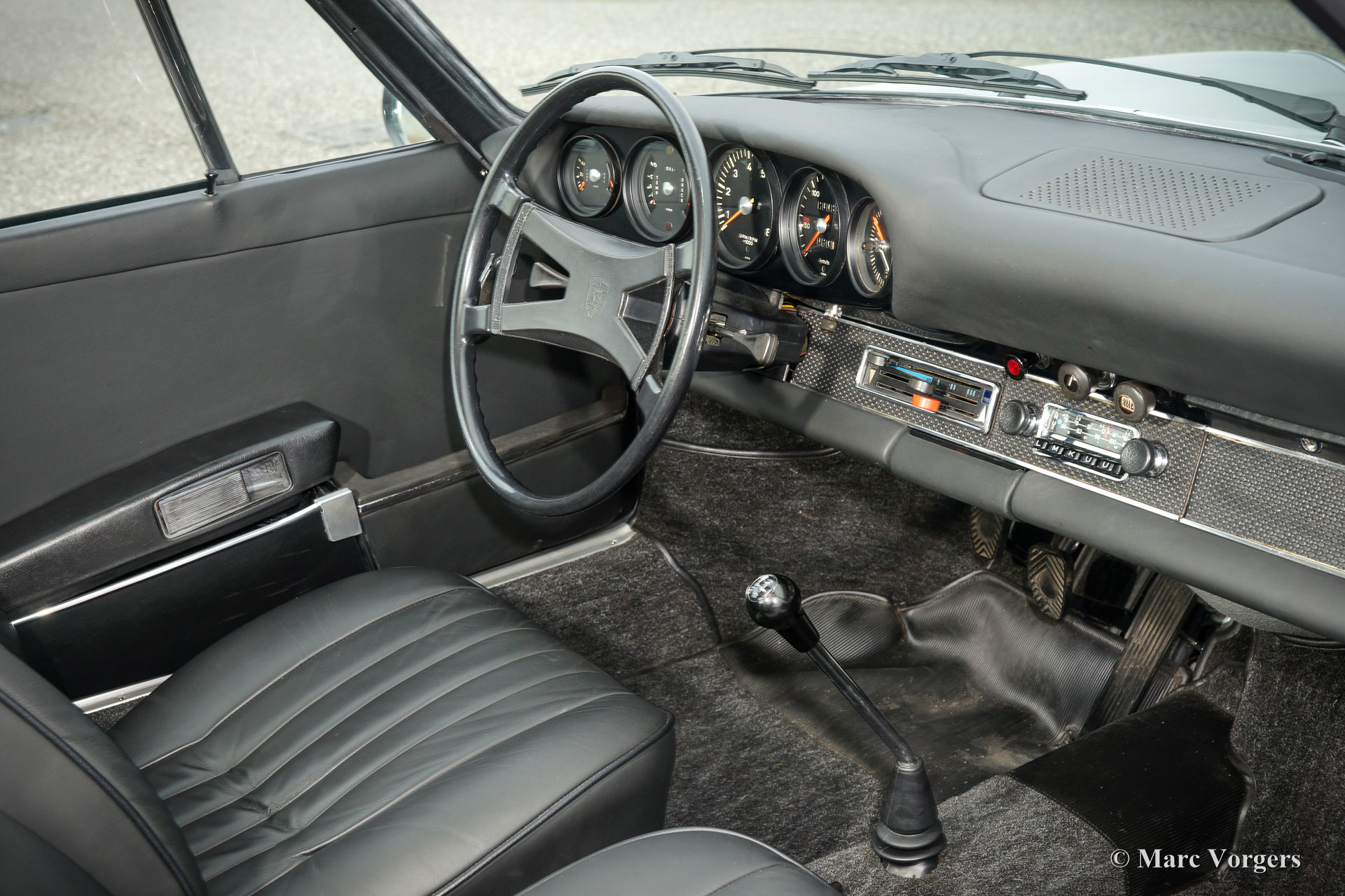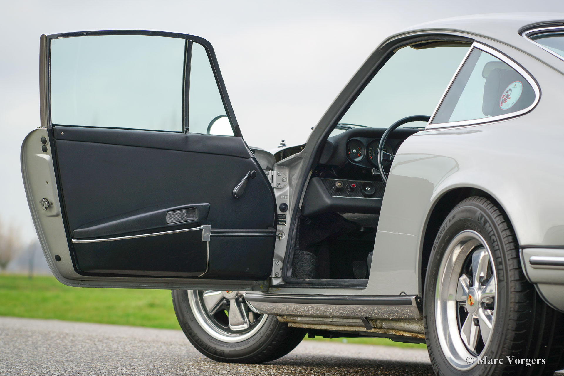 Porsche 911 2.2T, Jahr 1969. Farbe Silber Metallic mit einer schwarzen Lederausstattung. Dieses großartige Porsche 911 Coupé wurde in der Vergangenheit umfangreich restauriert. Das Auto ist in sehr gutem bis hervorragendem Zustand und das Auto fährt fantastisch! Dieser Porsche 911 verfügt über Fuchs-Räder, ein 5-Gang-Schaltgetriebe, Kopfstützen an beiden Sitze und Radio + Antenne.