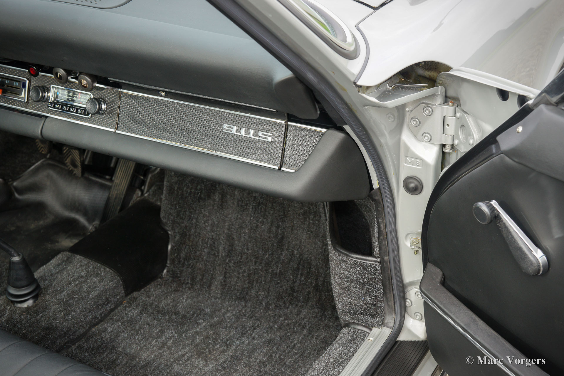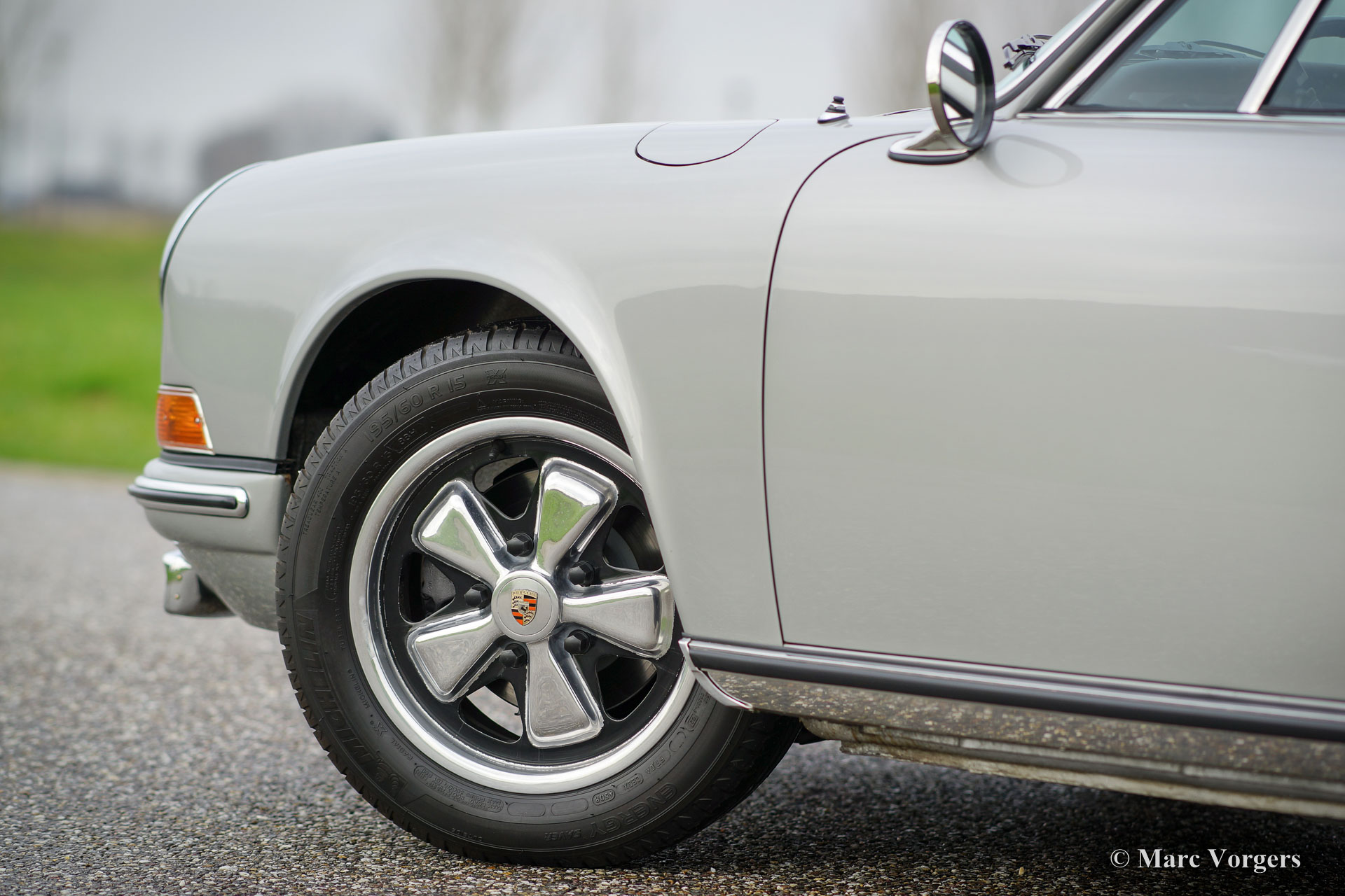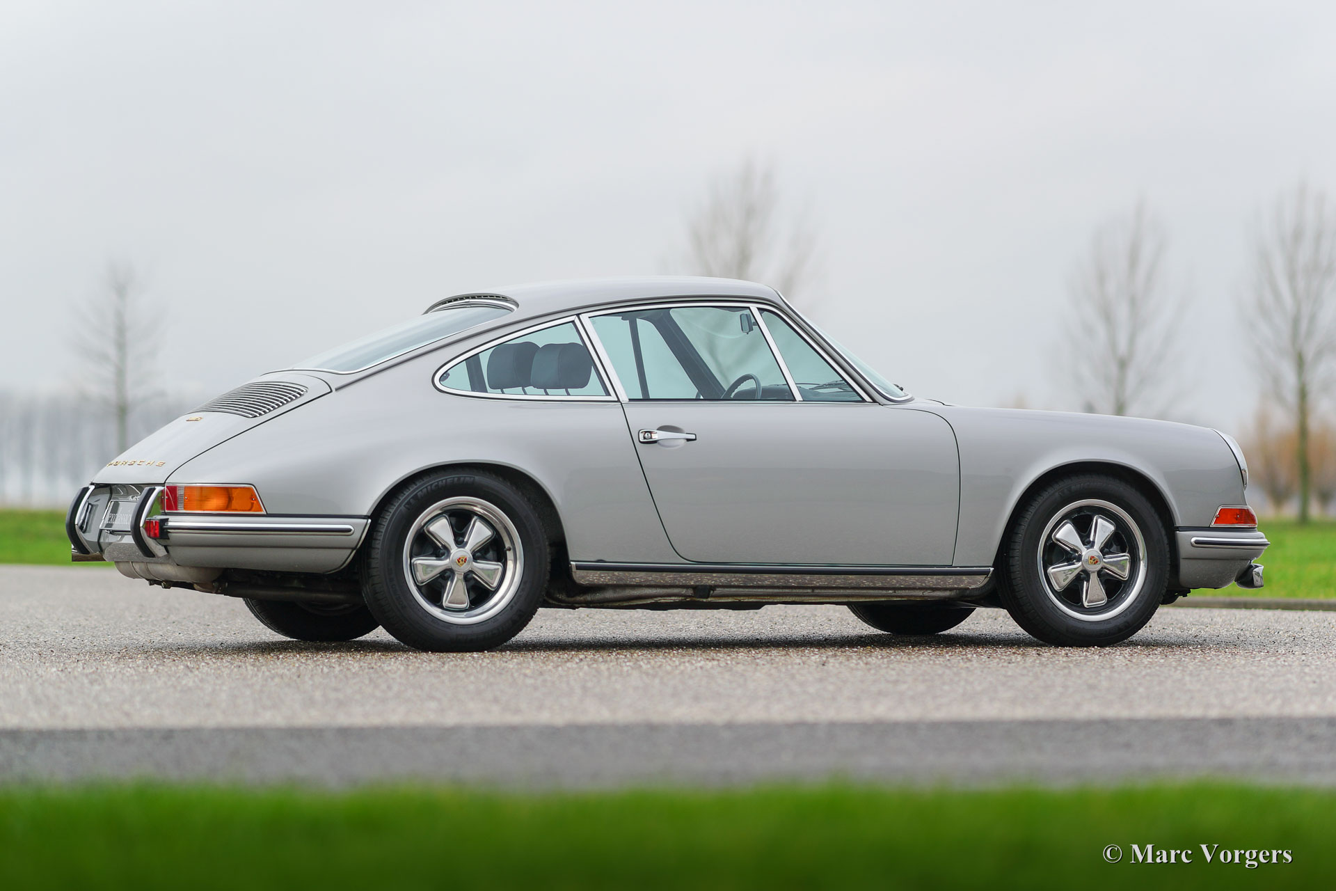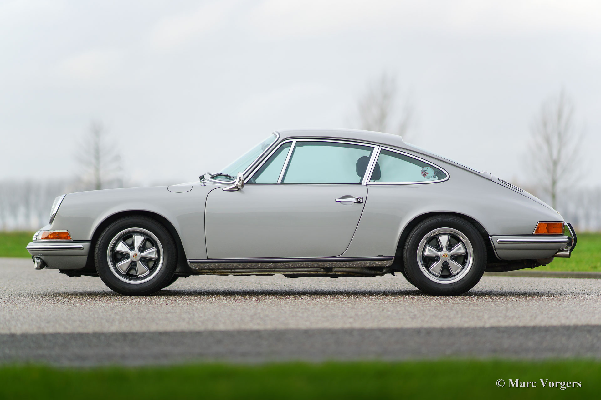 Porsche 911 2.2T, Jahr 1969. Farbe Silber Metallic mit einer schwarzen Lederausstattung. Dieses großartige Porsche 911 Coupé wurde in der Vergangenheit umfangreich restauriert. Das Auto ist in sehr gutem bis hervorragendem Zustand und das Auto fährt fantastisch! Dieser Porsche 911 verfügt über Fuchs-Räder, ein 5-Gang-Schaltgetriebe, Kopfstützen an beiden Sitze und Radio + Antenne.
