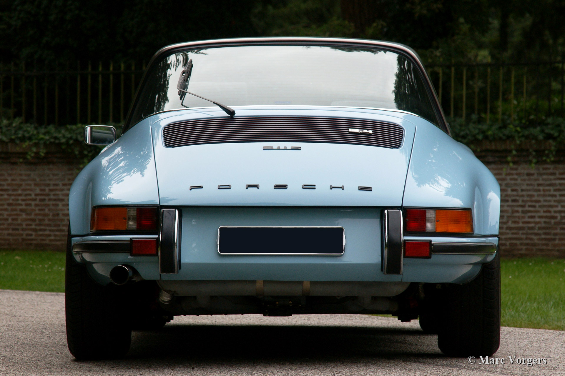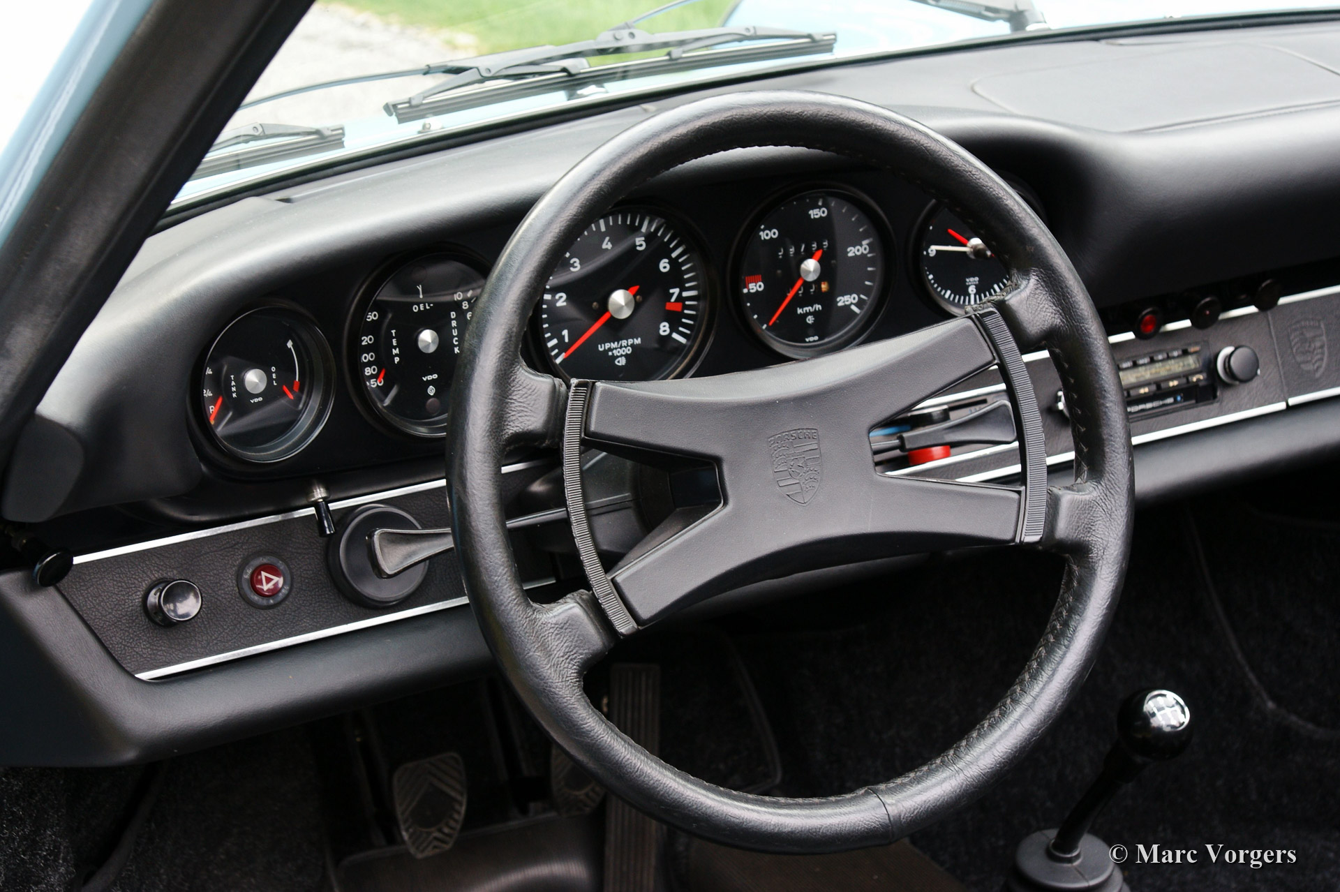 Porsche 911 2.4 S Targa, year 1973. Colour 'Gulf blue' (optional original colour, number 328) with a black leather interior. This is one of the three Porsche 911 2.4 S Targa models which were sold new in The Netherlands. A 911 2.4 S Targa from the 1973 F series is rare, only 925 cars have been built.