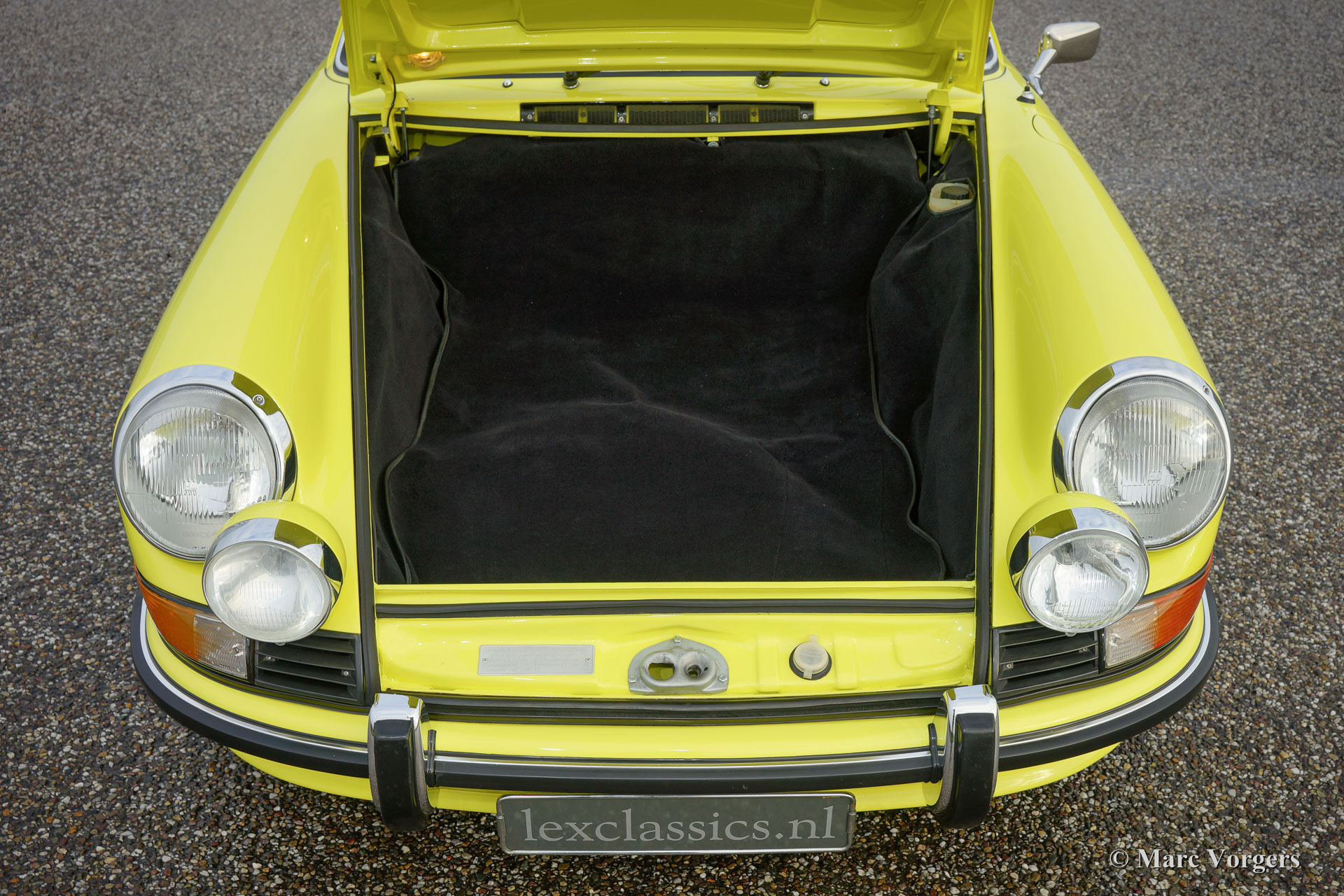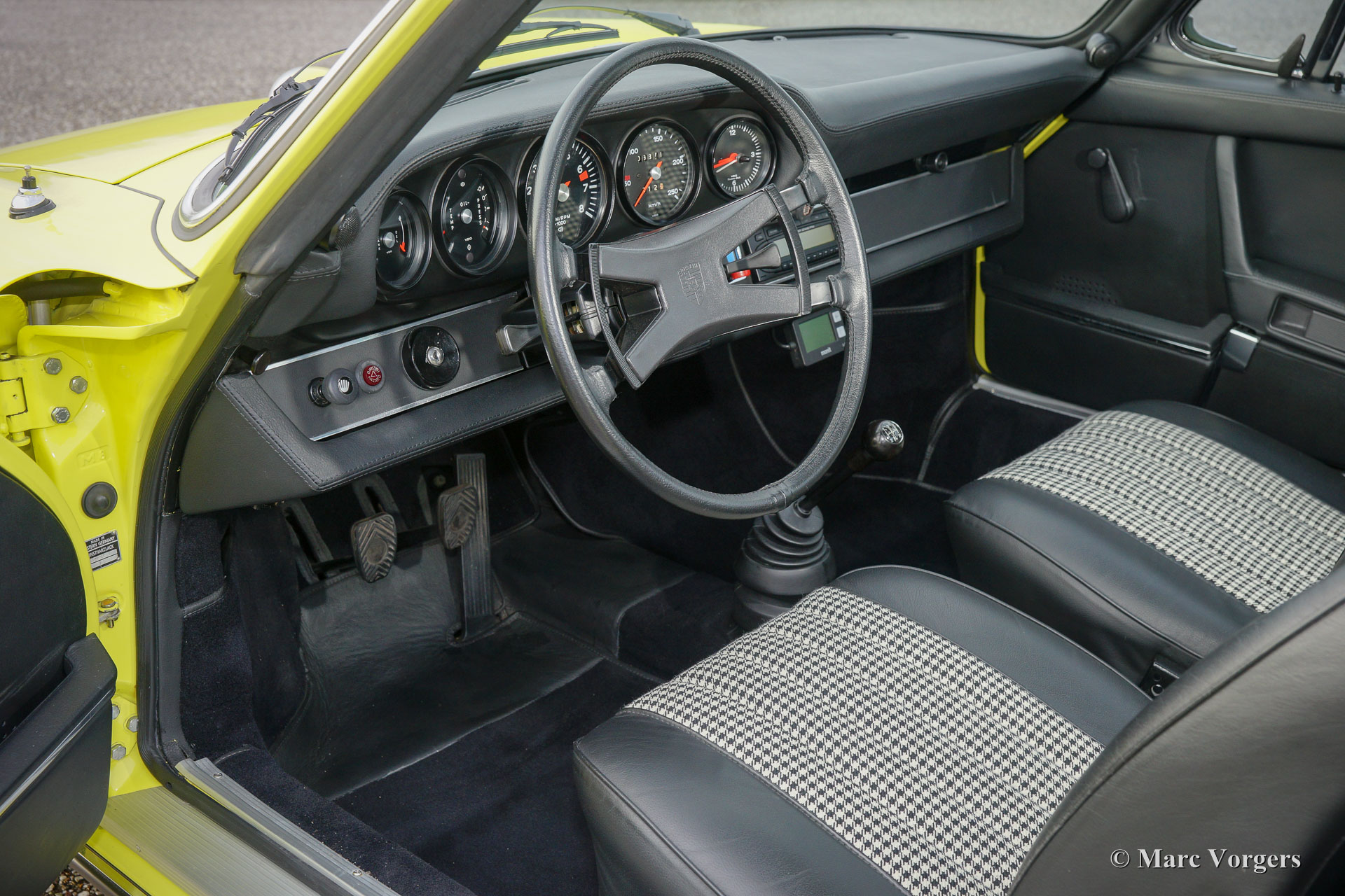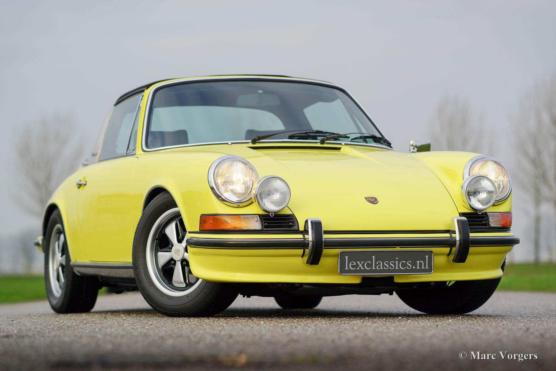 Porsche 911 2.4 T Targa, Jahr 1973. Chassis Nummer 9113111XXX. Farbe gelb (Hell Gelb) mit einem schwarzen Halblederausstattung. Dieses großartige Porsche 2.4 T Targa wurde in den Niederlanden ausgiebig restauriert und revidiert nach sehr hohem Niveau. Das Auto ist in einem hervorragenden TOP-Zustand, concours! Seit der Wiederherstellung hat das Auto 9872 Kilometer gefahren. Diese sehr feinen 911 T Targa wurde neu verkauft in den USA, im Jahr 2001 wurde das Auto in die Niederlande importiert. Im Jahr 2008 wurde das Auto restaurieret nach Top-Zustand. Diese 911 Targa verfügt über perfekte Panel fit der Blechteile, hervorragende Lackierarbeit und Interieur in neu-zustand! Eine umfangreiche Fotoreportage der Wiederherstellung ist vorhanden. Der Motor und das Getriebe haben ‘matching numbers‘, ein Porsche 'Geburtsurkunde‘ ist beantragt worden beim Werk. Das Auto ist mit den folgenden Optionen ausgestattet: Fuchs Räder, Nebelscheinwerfer vorne, Radio und Alcantara Dachverkleidung im Innenraum Futter: Ein Top-Exemplar!