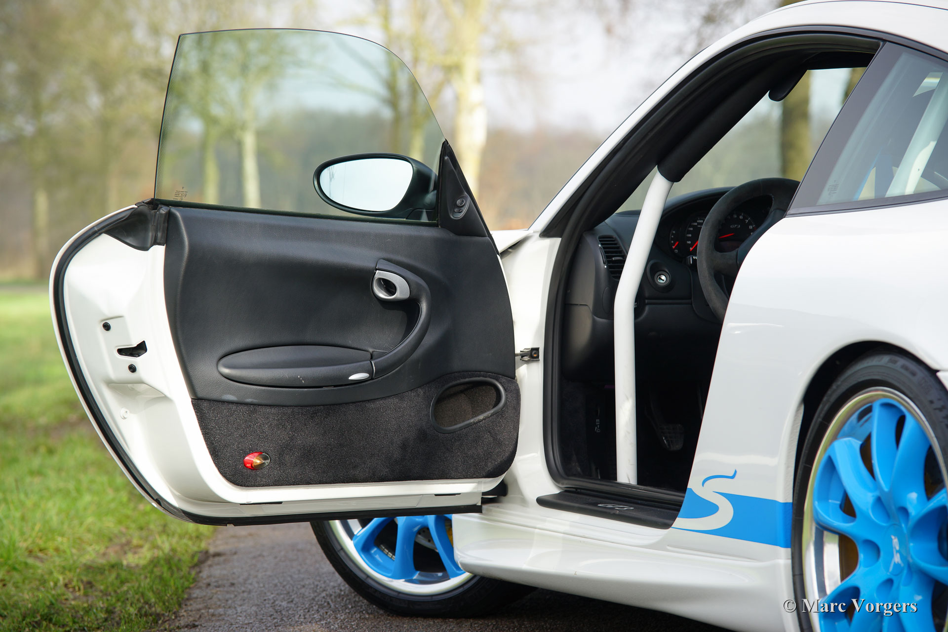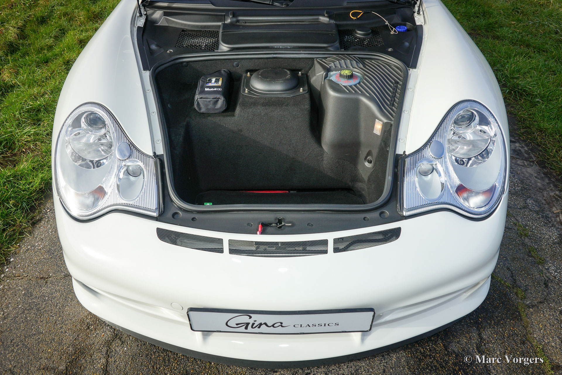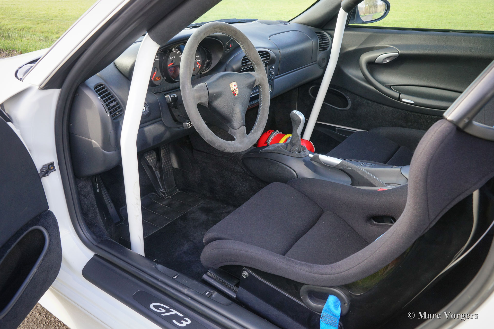 Porsche 911 (996) GT3 RS, Jahr November 2004. Farbe Carrera weiß (code LB9A) mit einem anthrazit / schwarz Interieur, schwarzen Teppich und schwarzen Dach Himmel.