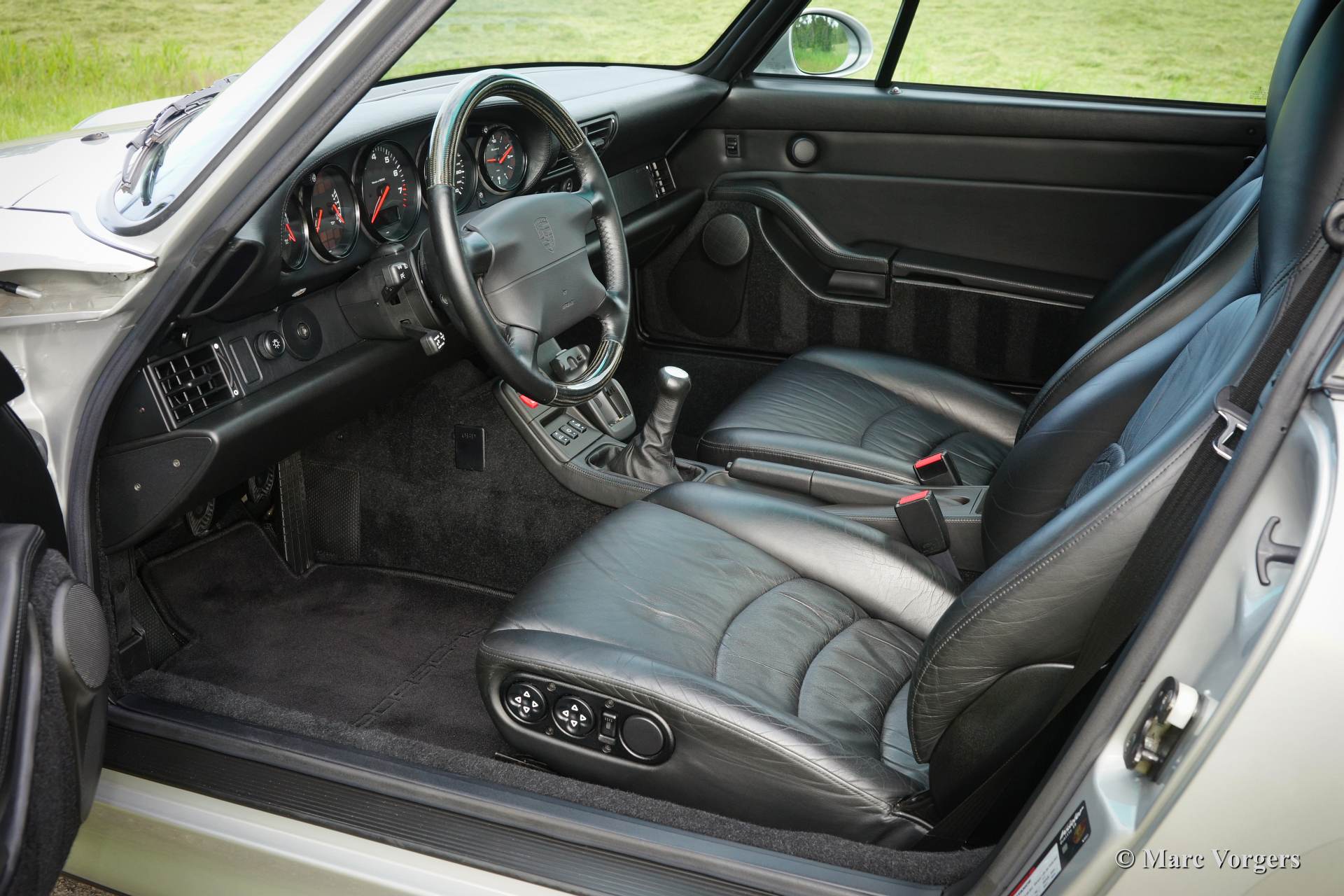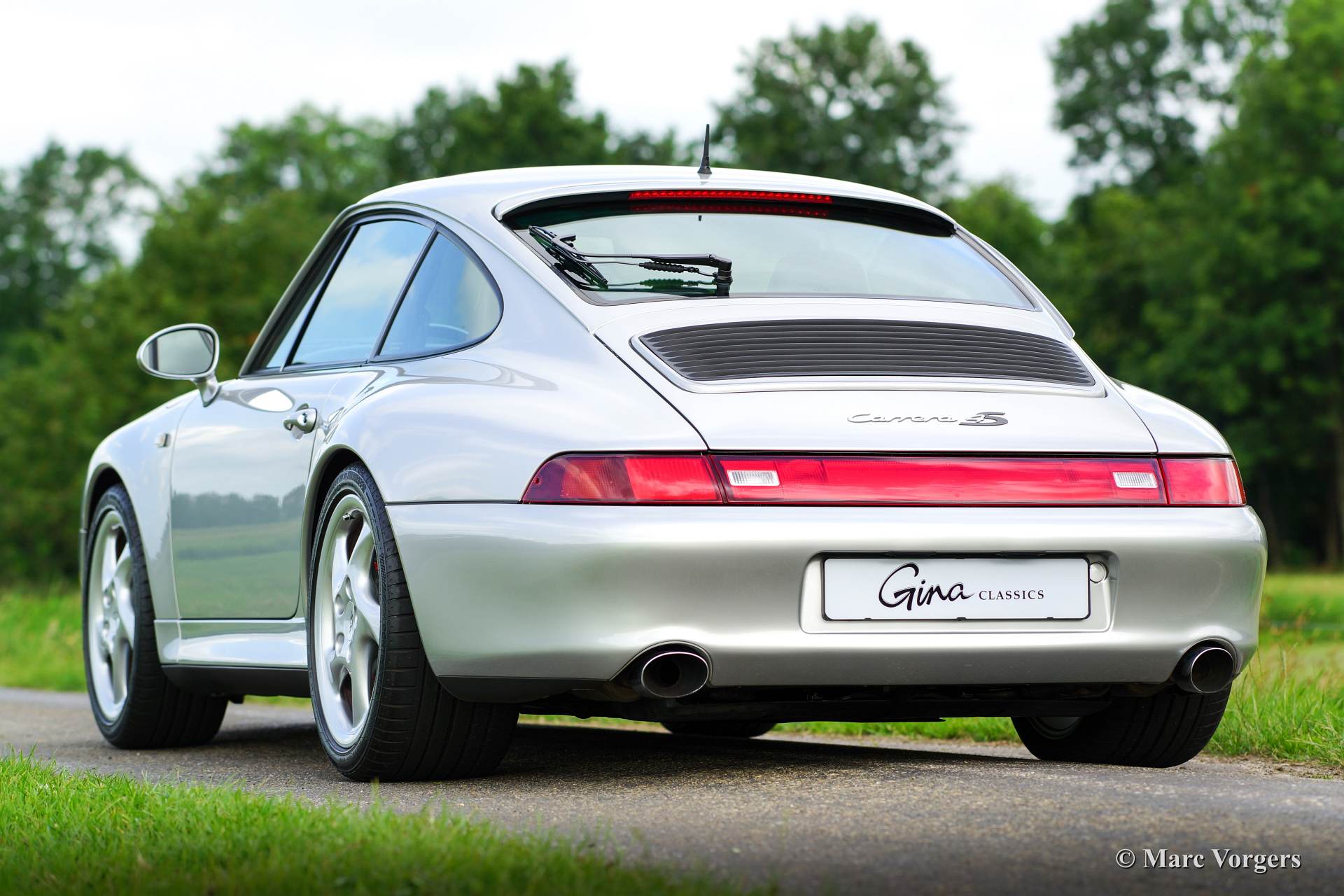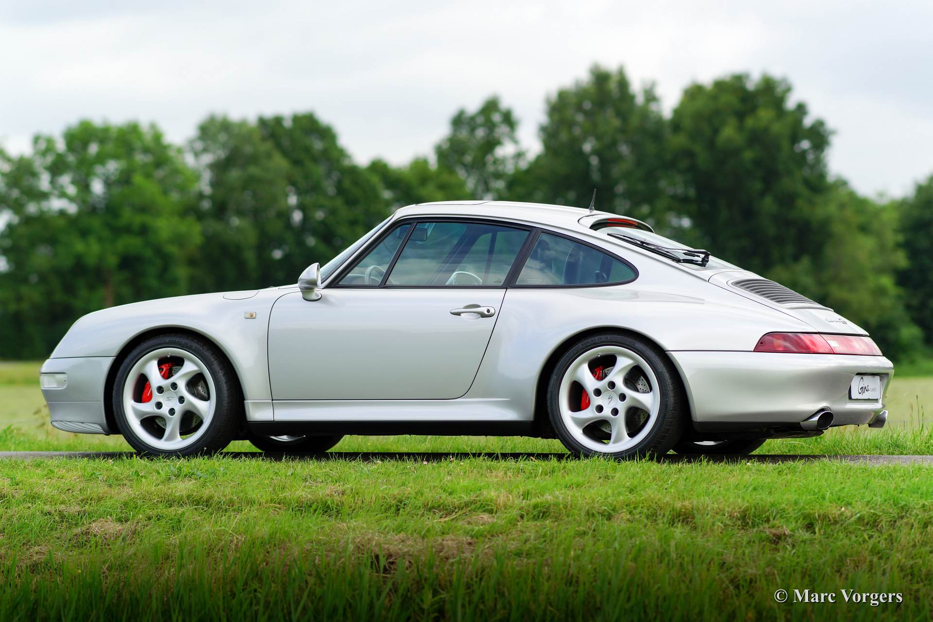 Porsche 911 993 Carrera 4S, Jahr September 1996. Farbe Arktis Silber metallic mit schwarzer Raff-Lederausstattung.