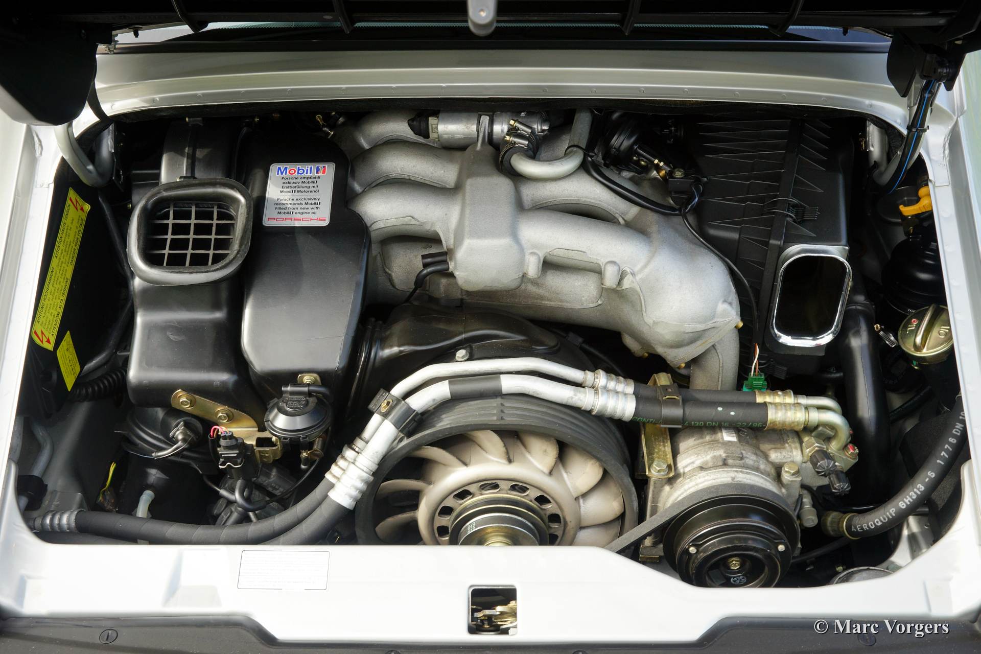 The air-cooled Porsche 911 six cylinder boxer engine would evaluate enormous through the 35 years of production; it grew from 2 liter capacity up to 3.6 liter... The six cylinder boxer engine is still built but was converted to liquid cooling to keep up with sound- and emission control standards. The liquid cooled six cylinder boxer engine was presented in the 911/996 model which was introduced in the year 1998.