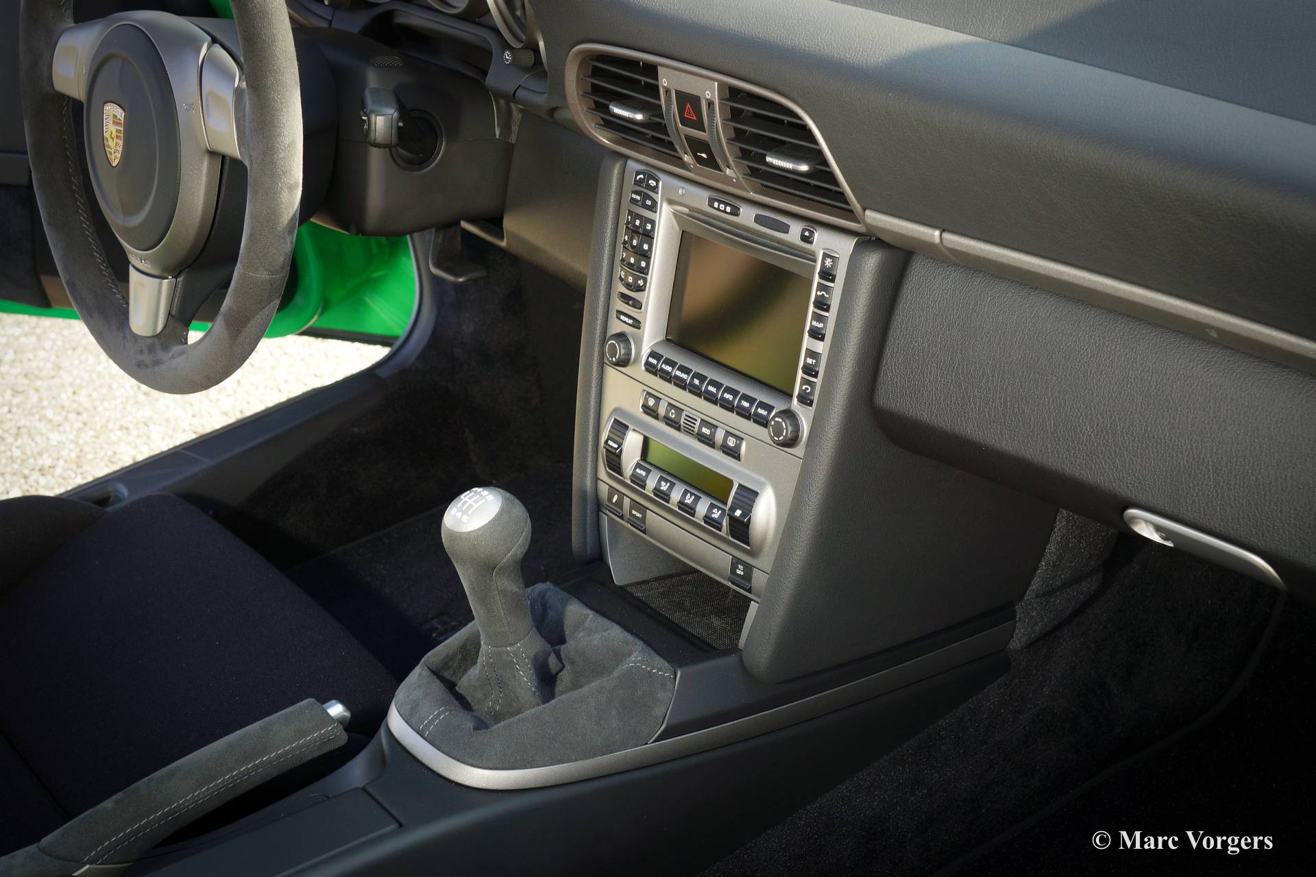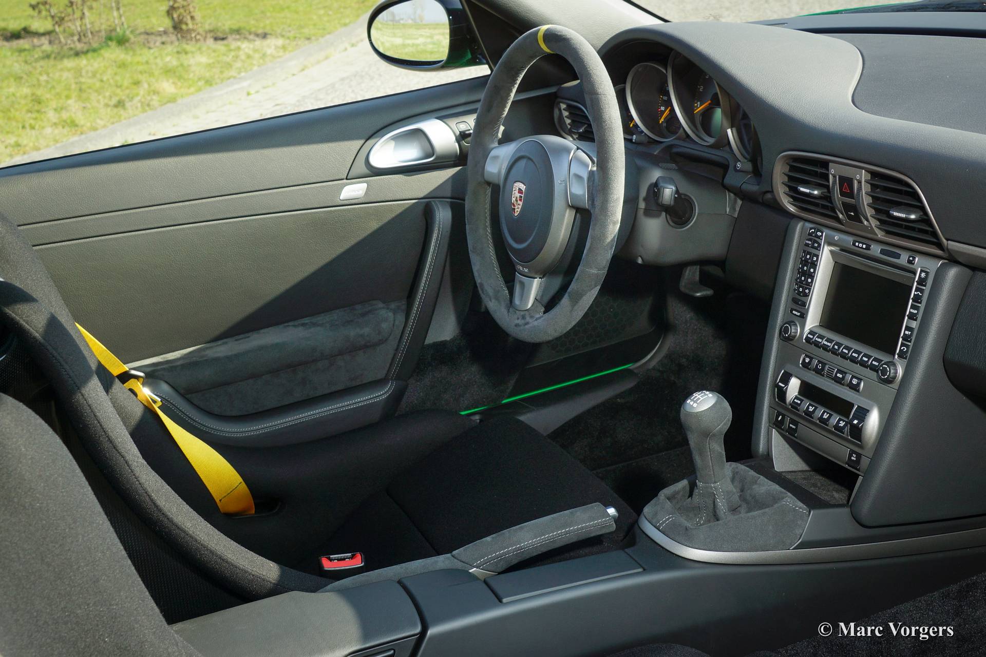 Porsche 911 GT3 RS, Jahr 2007. Farbe Grün mit schwarzen GT3 Schriftzug und einem schwarzen Innenraum. Nur 1909 Porsche 911 Autos dieses Typs wurden gebaut. Das Farbschema ist selten, 87 GT3 RS Autos wurden in dieser Farbe ausgeliefert.