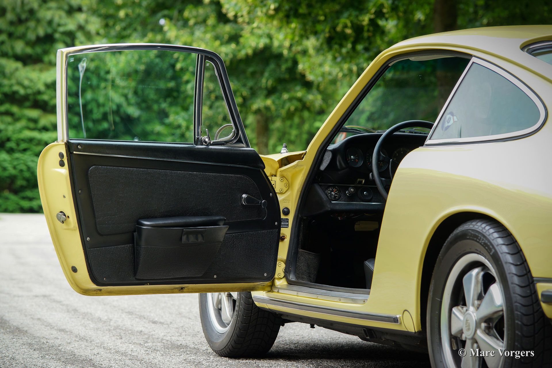 Porsche 911 L, Jahr 1967, Erstzulassung 1968. Fahrgestell-Nummer 1180 5XXX, Motornummer: 328 0XXX, matching numbers. Farbe "Champagne" gelb mit schwarzem Kunstleder innen und dunkelgrauen Teppich. Türverkleidungen und Inneneinrichtung Details mit "Elefantenhaut" Textur Vinyl, einzigartig für dieses 1968 Modell. Dieser 911 L ist eine seltene 'kurzem Radstand' Modell aus der Serie "A", die hergestellt wurde von August 1967 bis Juli 1968. Diese wunderschöne Porsche 911 L ist in hervorragender Originalzustand! Das Auto wurde nie restauriert, nur punktuell gewartet und perfekt gepflegt. Im Jahr 2002 wurde der glatten und schönen original Karosserie professionell perfekte neue Farbe gegeben. Der 911 wurde neu in den USA verkauft, wo das Auto seit fast 50 Jahren nur einer Besitzer kannte! Diese feine 911 L kommt mit dem schönsten dokumentierte Geschichte-Datei, die wir je gesehen haben. Auf allen Dokumenten ist der Name der ersten und einzigen amerikanischen Besitzer angegeben, ganz speziell. Diese seltene 'kurzem Radstand' Porsche 911 L ist ein großartiges Sammlerstück durch seine schöne Originalität und wegen der perfekten Historie-Datei. Kenner werden den Wert dieses schönen Original-Porsche zu schätzen können.
